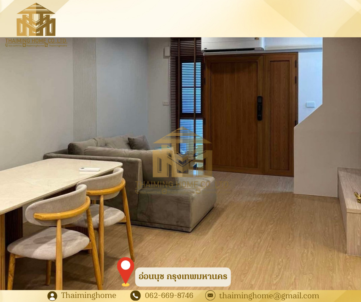 The project will sell a luxurious townhome under the Q Prime Sukhumvit 77 project with an area of 163 square meters. M. On Nut, Bangkok [TH5-350226 Treasure Code] ✅ Details • The land size is 18.1 square meters. W. • The usable area is 163 square meters. M. • Full Built-in Living Room / Kitchen / Dressing Room • It's brand-new. Owners only live for three months. • Two cars. • Swimming pool | Fitness | 24-hour security system 🚇 Nearby Locations • Multiple routes in and out: Sukhumvit 77 (On Nut Road) / Srinakarin (Sor. Srinakarin 38) / Sukhumvit 101/1 (Wachiratham Satit Road) / Sukhumvit 103 (Udom Suk Road) • Suvarnabhumi Airport • Seacon Square • Central Bangna. • Bangna of Megabangna • several nearby hospitals • a leading international school • Near BTS On Nut, BTS Bangchak (Green Line) and BTS Srinakarin 38, BTS Sirinuch (Yellow Line) • Near Rajamangala National Stadium and Unico Grande Golf Course. ☑️ Purchase/Rental Conditions • Sold for 6.69 million baht [with all the ferries] ----------------------------------------------------------------- บริษัท ไทยหมิง โฮม จำกัด Thaiming Home Co.,Ltd. 泰明房园 房产公司 ------------------------- Contact ติดต่อ : Contact number Contact : Contact number คุณหมิง(中文) Line ID: thaiminghome Line ID: @thaiminghome https://lin.ee/PkkHwYv Wechat : ThaimingHome E-mail : Contact email -----------------------------------------------