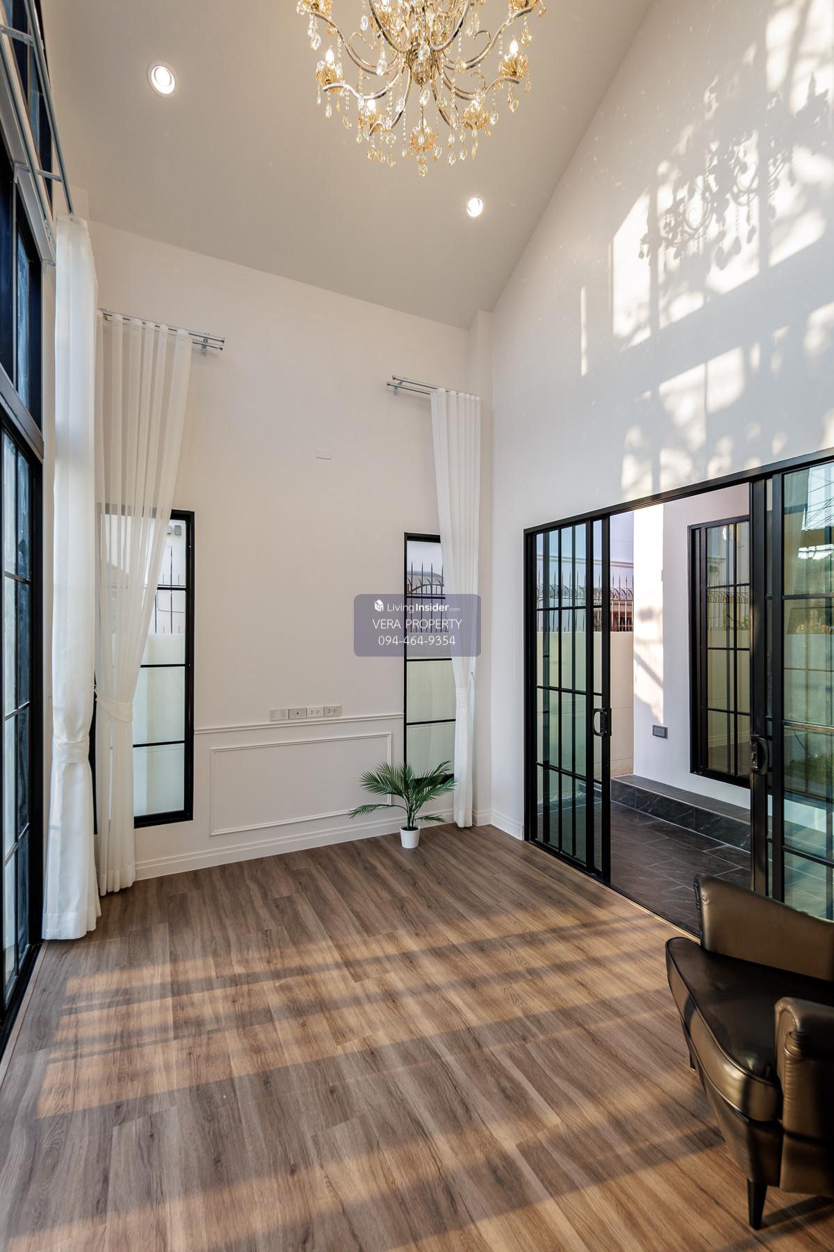"A house designed to make you fall in love... From the first step" Premium renovation work Highlighting the airiness with high ceilings (Double Volume) and the strongest brick structure. In a potential location that is the most convenient to travel to in Nonthaburi ✅ Summary information (Highlight) The most prominent feature: The tall, airy lobby, Double Volume, gives a feeling of spaciousness. Plenty of light with 3 Chandelier lamps Value: "No common fees" For life, save money and gain independence Construction work: Be confident with the structure. "Ayutthaya Brick" The whole house and grade A materials from SCG 🏠 House details Land area: 57 square wah Usable area: 175 square meters Function: 2 bedrooms / 2 bathrooms / 2 multi-purpose rooms (Can be adjusted to an additional office or bedroom) Parking space: 2 cars (indoor with complete tiling and roof) 🎁 Free gift list "full package" (Value several hundred thousand baht) Smart Living: Automatic electric gate remote control Kitchen: Luxurious stone top kitchen counter Complete with sink installed Garden: Grass to decorate a beautiful garden with "large trees to enhance prestige" Provides shade Ready to move in: whole house curtains, garage roof, washing area tiles Water System: water pump + large water tank 📍 Location and travel (Location) Located in Soi Bang Sri Muang 3 Connected to Rama 5 Road, Ratchaphruek, Nonthaburi Pier Close to Central Westgate and Central Westville, just a few minutes Good environment. Lovely neighbors, peaceful, private Contact Contact number Line : emmsinee