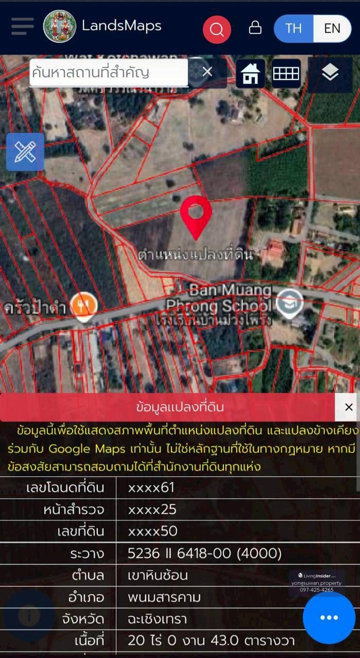 Land located in the growing EEC special economic area. Located in a community area, next to an 8 meter paved road, has electricity and tap water, but the price is less than a thousand!! It doesnt come often Khao Hin Son Subdistrict, Phanom Sarakham District, Chachoengsao Province, light yellow map, EEC area suitable for investment or future development Property details - Area 20 rai 43 sq m., next to public road on 2 sides - Front of plot next to RD road, Ban Pong Keng - Ban Ko Khanun route, approximately 60 meters wide, easy entry and exit -Front of plot southeast-has electricity and water ready -Potential location is halfway between main roads 304 and 311 Nearby places - Khao Hin Son Subdistrict Administrative Organization (Ban Muang Phrong) 2 km. - Road 304, approximately 2.5 Km - Road 331, approximately 2.7 Km -Customs Office 3 Km.- Industrial Estate 304 IP2 3.6 Km -Koh Khanun Municipality 8 Km. - Gateway City Industrial Estate 25 Km Highlights - Large plot, price per square meter less than a thousand - Nearby there are announcements for sale as high as rai, approximately 1,000,000 baht per square meter - This plot is offered for sale at only 350,000 baht per rai - considered the most outstanding price in the area at the moment - Located in a community area - The road in front of the plot is 10 meters wide and large vehicles can enter and exit - suitable for building a warehouse, distribution center - Reduce business costs, have money left over to develop other things Coordinates Map:https://maps.app.goo.gl/qd89SxF3RqhyYRc89?g_st=ac 13.729816,101.451069 Offering price 350,000 baht per rai (875 baht/square wa) Price of the entire plot 7,037,625 baht If interested, contact Contact number Khun Yong Contact number Khun Kung #Cheap land #EEC land #Khao Hin Son land #Phanom Sarakham land #Chachoengsao land #Land next to road
