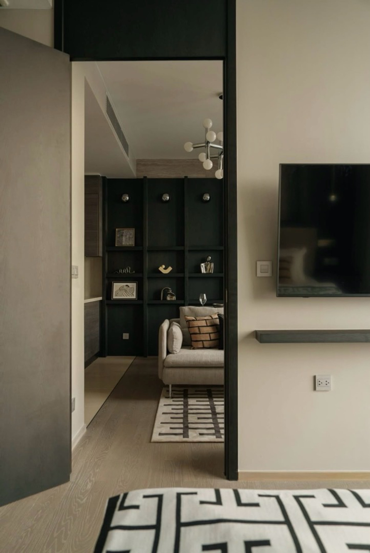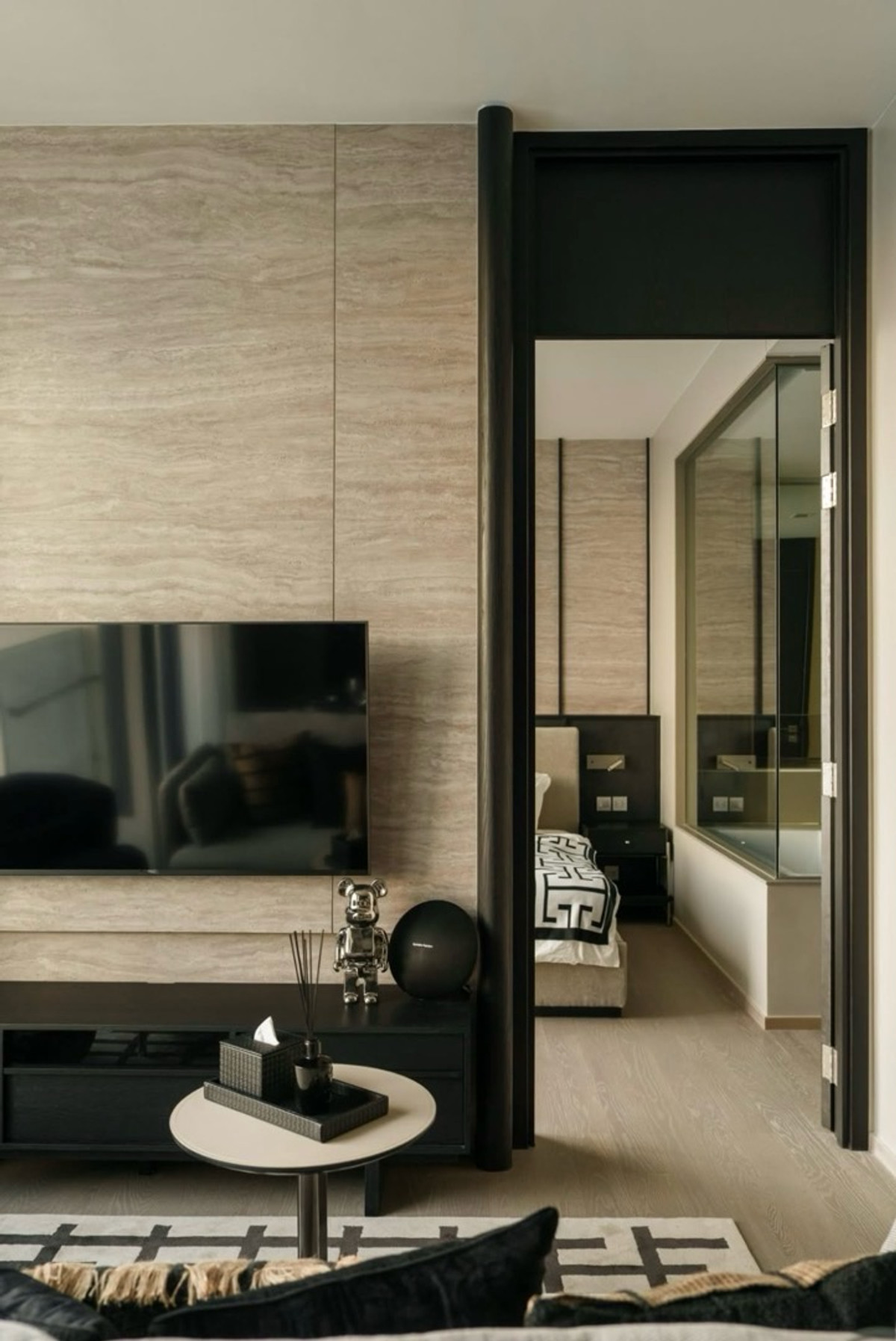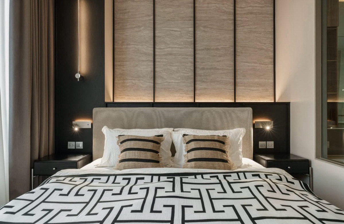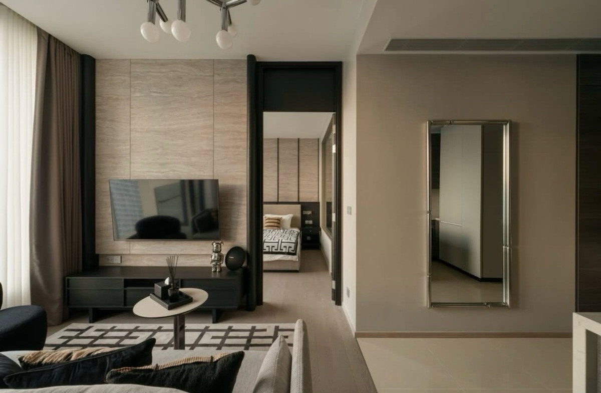 For Rent – ​​The ESSE Asoke ✨ Urban Noir | High Ceiling Unit • 1 Bed 1 Bath • 48 sq.m. | Floor 22 • High Ceiling 3.0 m. • Clear View | Single Load Corridor 📍 MRT Sukhumvit 500 m. 📍 BTS Asoke 600 m. Re