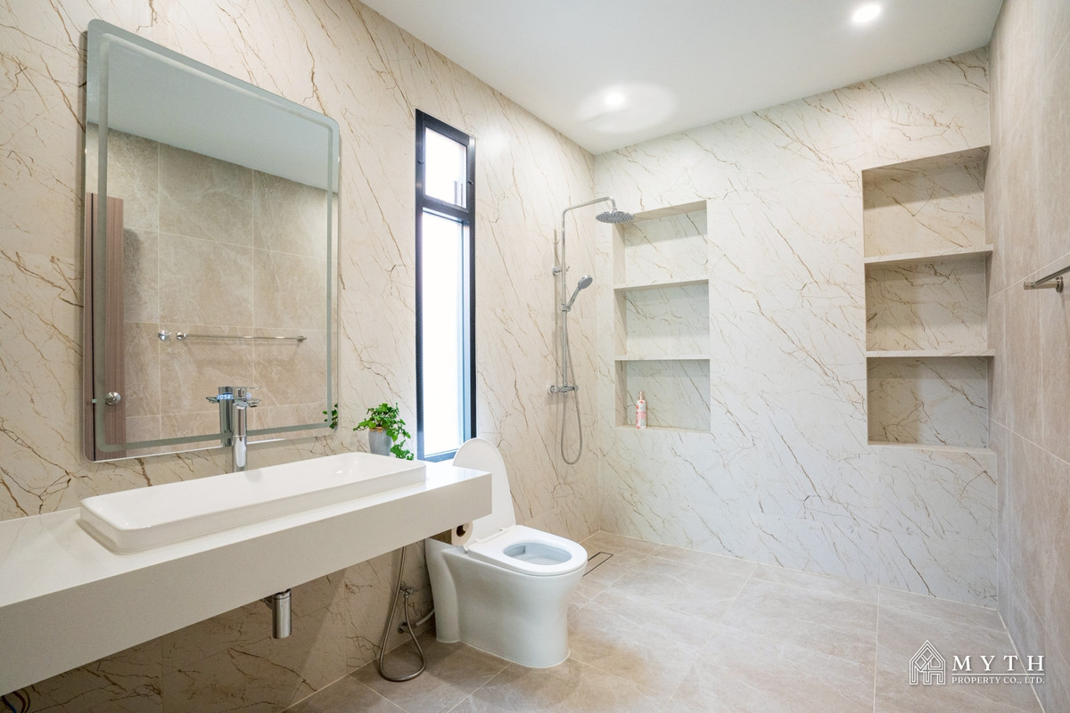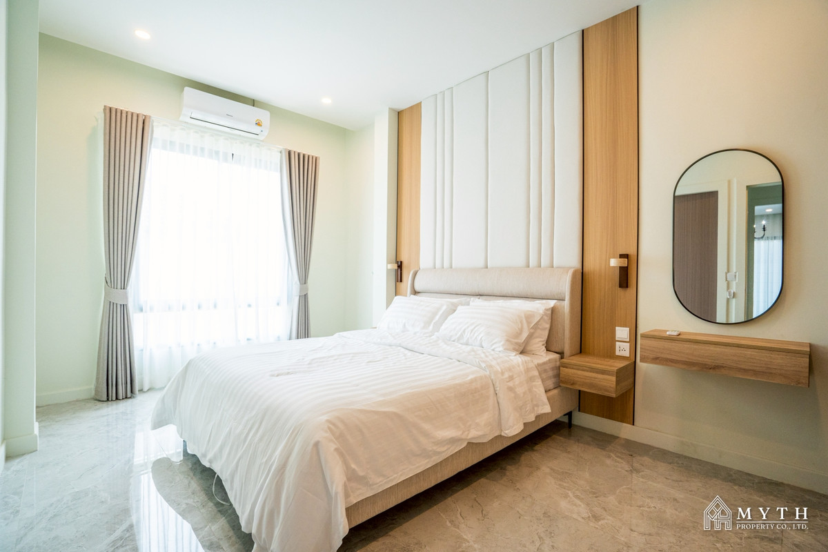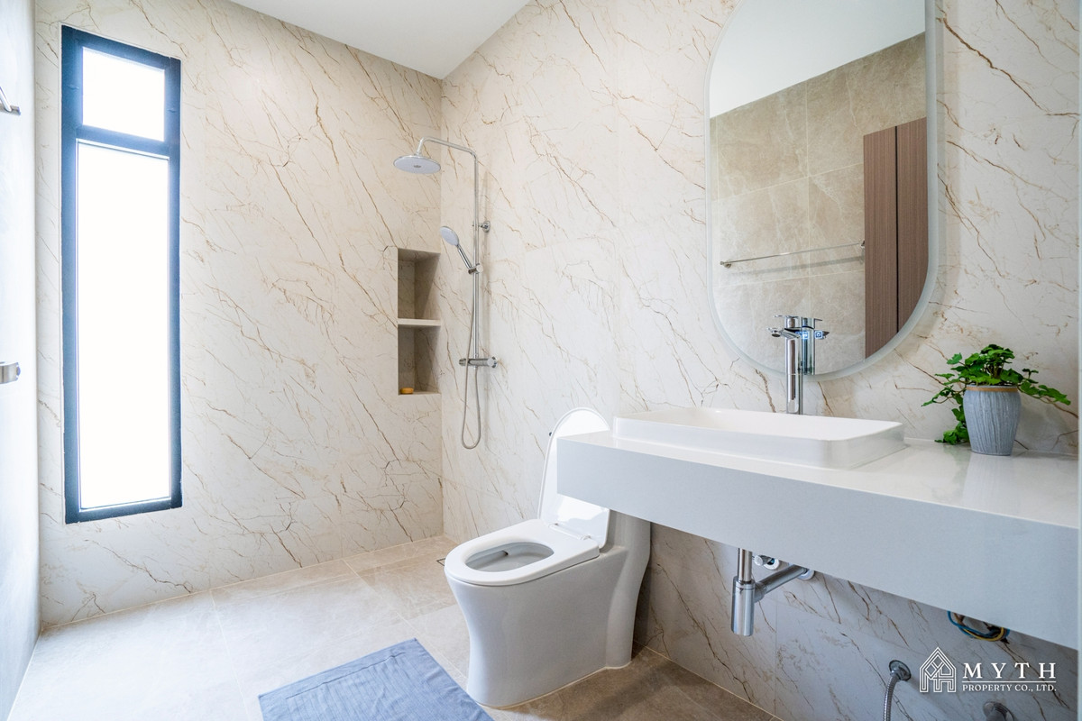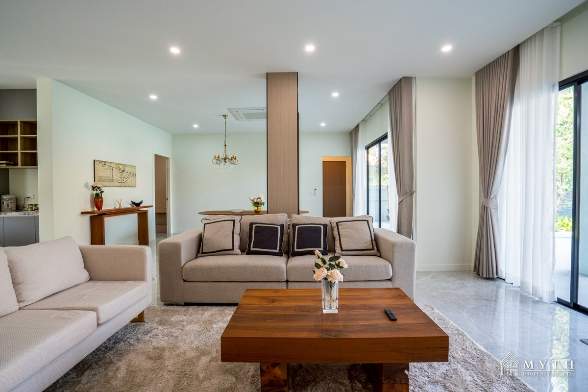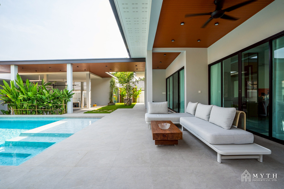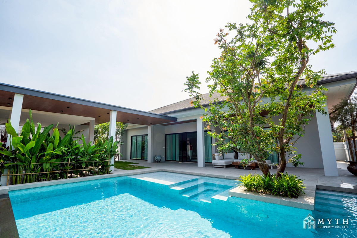 Private pool villa set on a large land plot, offering a complete functional layout and ready to move in immediately. Beautiful built-in kitchen with a stylish island, plus a separate Thai kitchen with