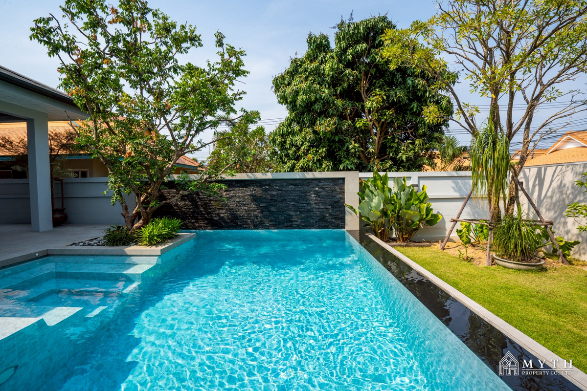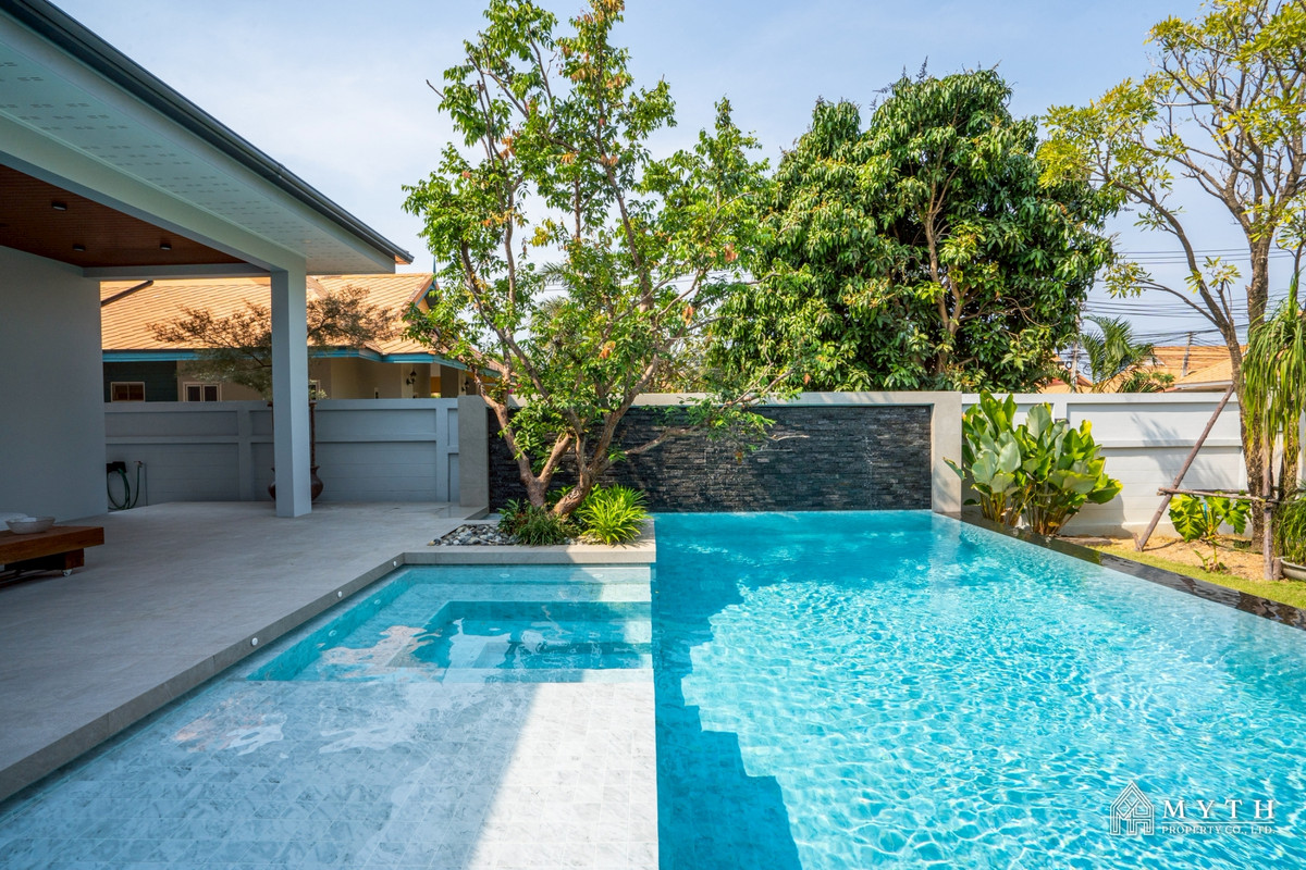 Private pool villa set on a large land plot, offering a complete functional layout and ready to move in immediately. Beautiful built-in kitchen with a stylish island, plus a separate Thai kitchen with clearly defined zones. Saltwater swimming pool with a private jacuzzi, perfect for elevating every relaxing moment. Located in a quality development in a prime location with convenient access. - 3 Bedrooms 4 Bathrooms - Land Size 136.5 Sq.Wah (546 Sq.m) - 1 Living room - Full equipped built-it kitchen with island - Covered outdoor kitchen - Washroom - 2 Car parking - Private Salt water pool and jacuzzi Selling price 16,800,000 baht Company name Transfer fee 50/50