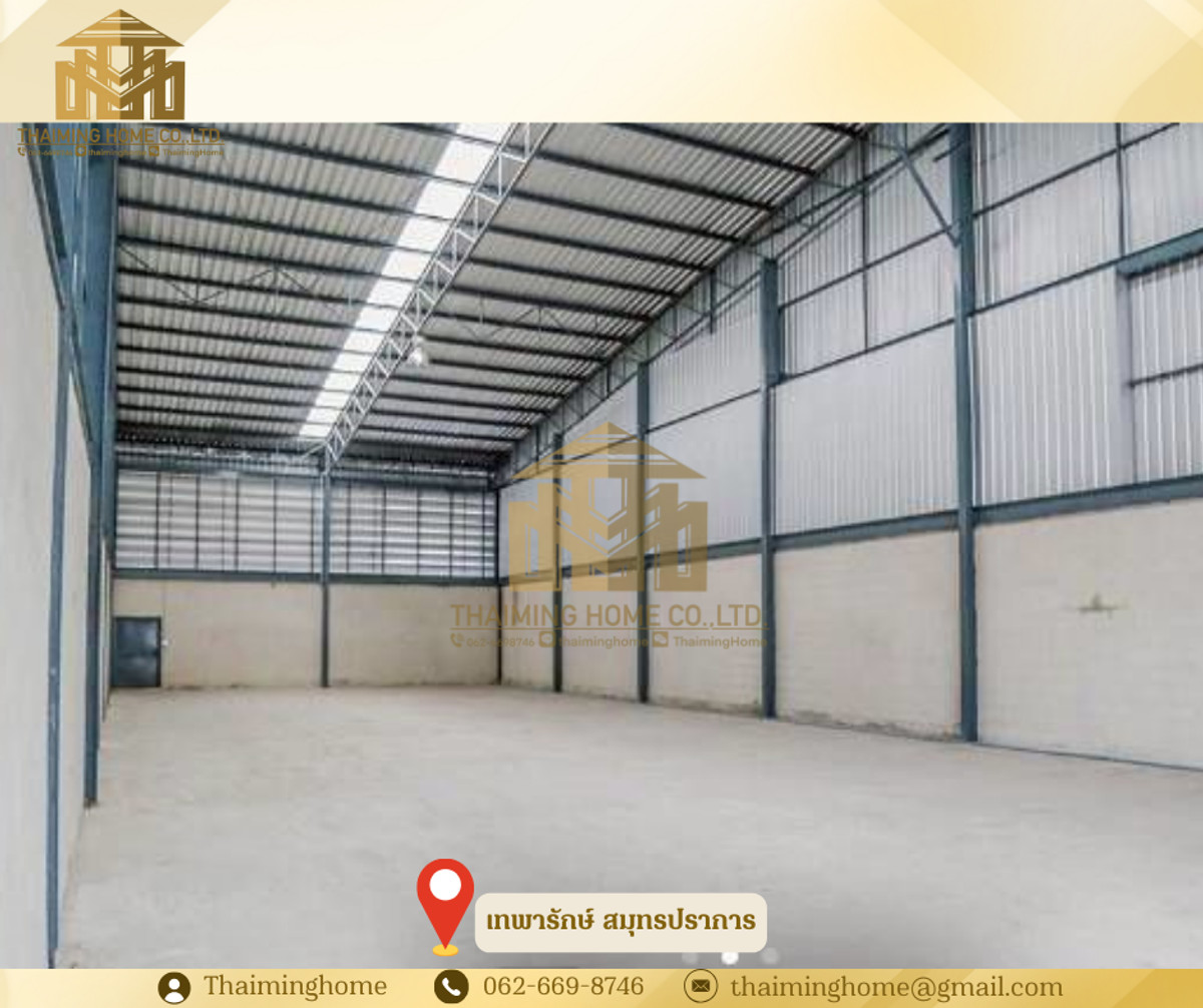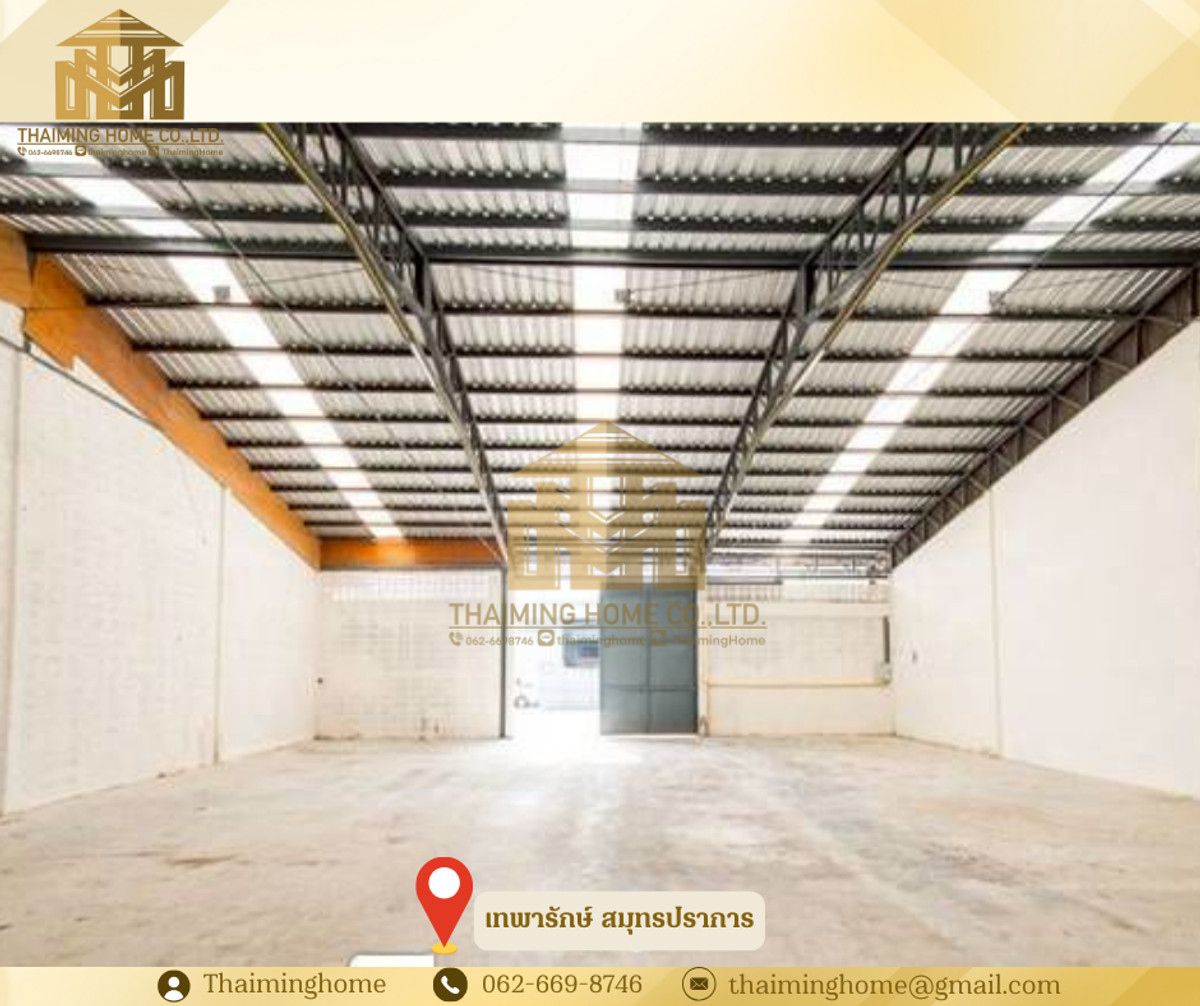 Warehouse for Rent, 584 sq.m., Thepharak, Samut Prakan (Property Code TW6-0326) Details - Warehouse area available: 390/584/600/636/832 sq.m. - 3-phase electricity - Suitable for warehousing and distribution Nearby Locations - Sinphet Hospital - Sangkasi Thepharak Market - ​​Thepharak Market - ​​Global House Thepharak Rental Conditions - 3-year lease agreement - 3-month security deposit - 1-month advance payment - Rental rate: 100 THB/sq.m. -------------------------- บริษัท ไทยหมิง โฮม จำกัด Thaiming Home Co.,Ltd. 泰明房园 房产公司 ----------------------- Contact ติดต่อ : Contact number Contact : Contact number คุณหมิง(中文) Line ID: thaiminghome Line ID: @thaiminghome https://lin.ee/PkkHwYv Wechat : ThaimingHome E-mail : Contact email -----------------------