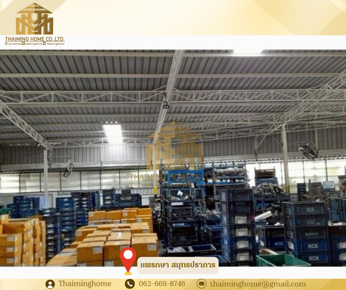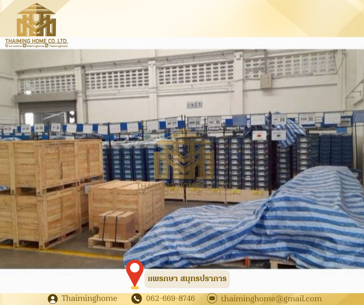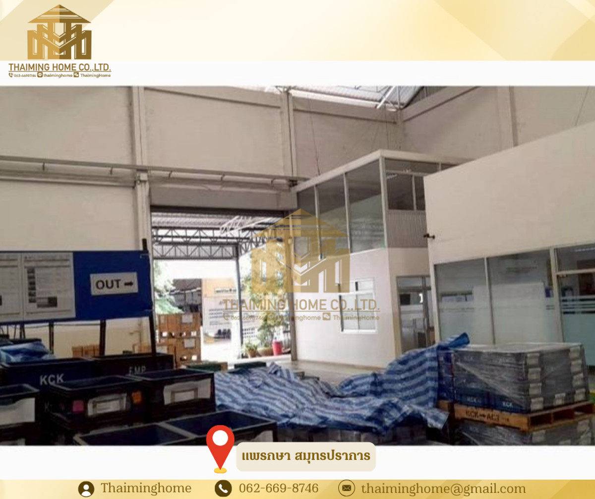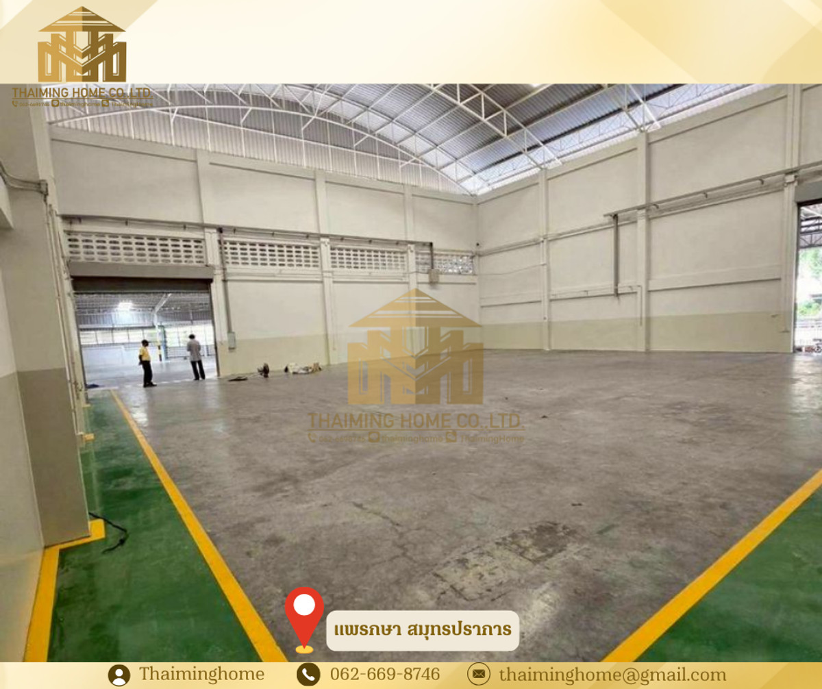 Warehouse/Factory for Rent, 1,368 sq.m., Phraeksa, Samut Prakan (Property Code TW4-1560226) Details - Total usable area: 1,368 sq.m. - Warehouse usable area: 800 sq.m. - Surrounding area: 568 sq.m. - Purple zone, eligible for Factory Permit (Rong.4) - Building height: 8-12.5 meters - Office space already installed and ready for use Nearby Locations - Robinson Lifestyle Samut Prakan - Sap Phatthana Market - ​​Bang Pu Industrial Estate - Bang Pu Industrial Estate Fresh Market Rental Conditions - Minimum 3-year contract - 3-month security deposit - 1-month advance payment - Rent: 155,000 THB per month (113 THB/sq.m.) - Net rent excludes withholding tax *Common area service fee: 4 THB per sq.m.* --------------------------------- บริษัท ไทยหมิง โฮม จำกัด Thaiming Home Co.,Ltd. 泰明房园 房产公司 ----------------------- Contact ติดต่อ : Contact number Contact : Contact number คุณหมิง(中文) Line ID: thaiminghome Line ID: @thaiminghome https://lin.ee/PkkHwYv Wechat : ThaimingHome E-mail : Contact email -----------------------