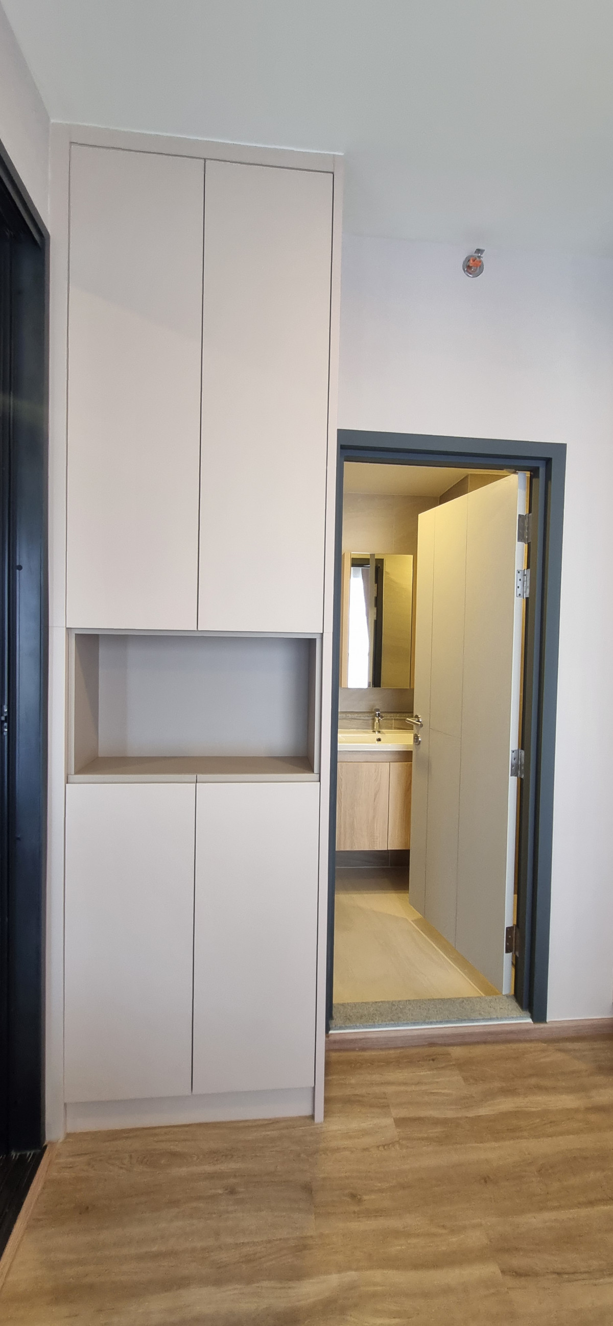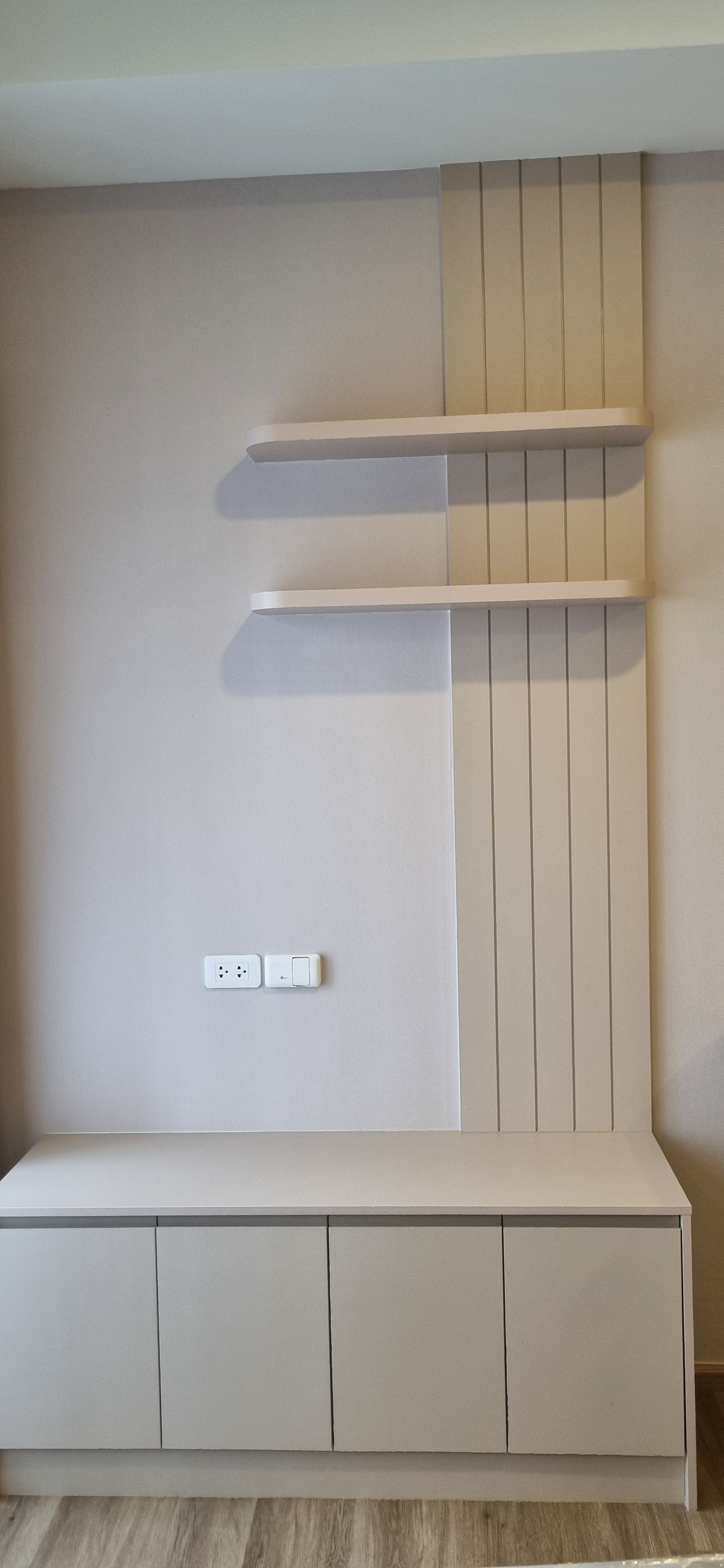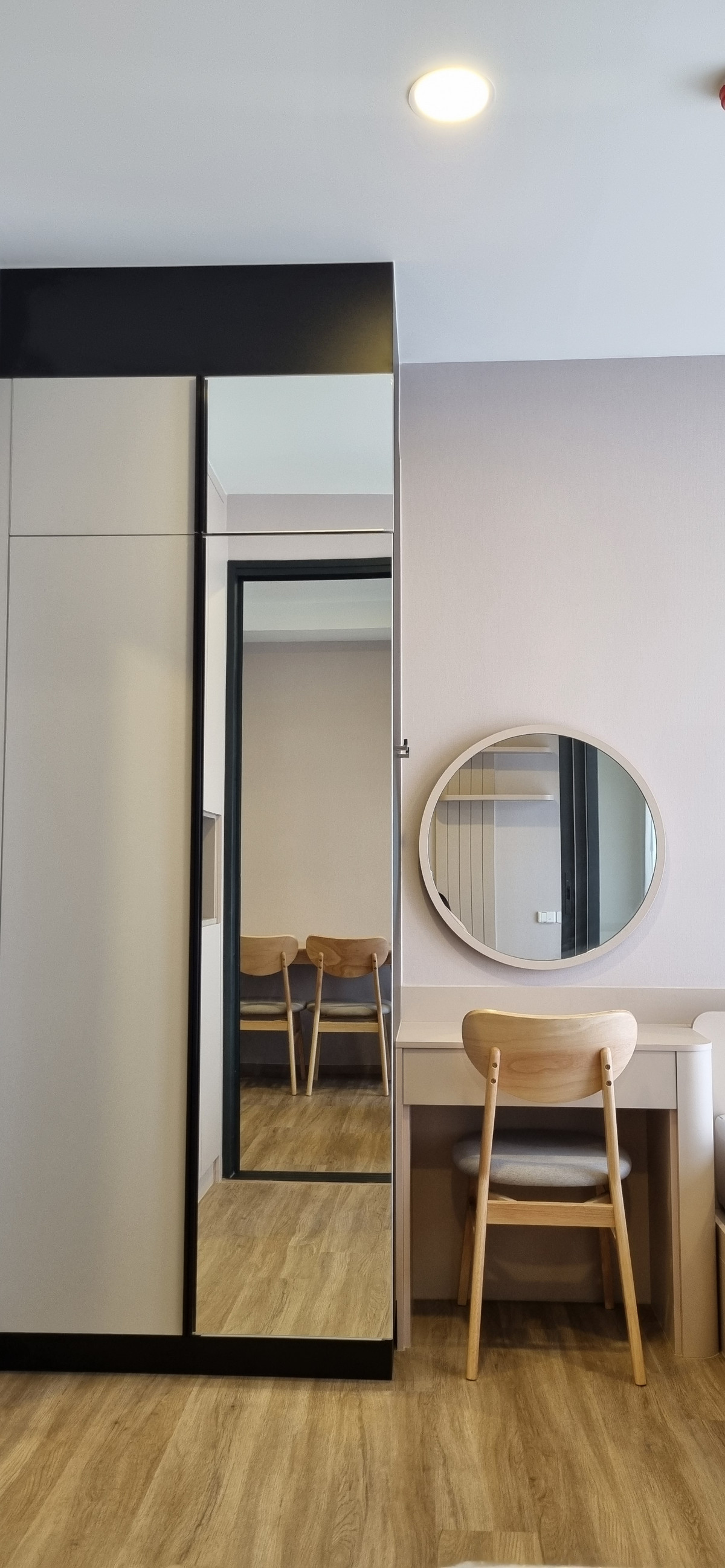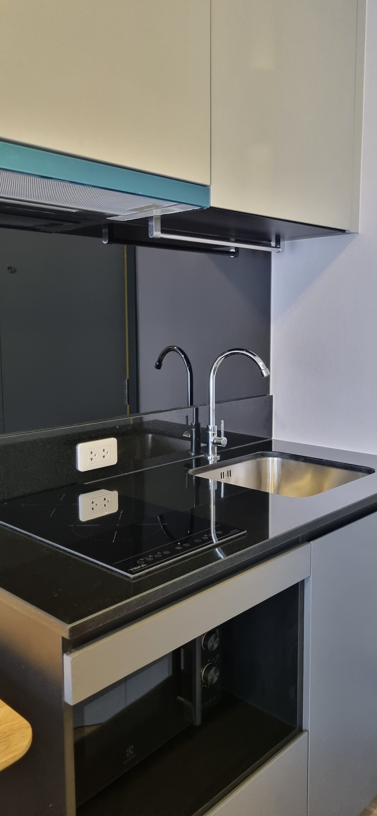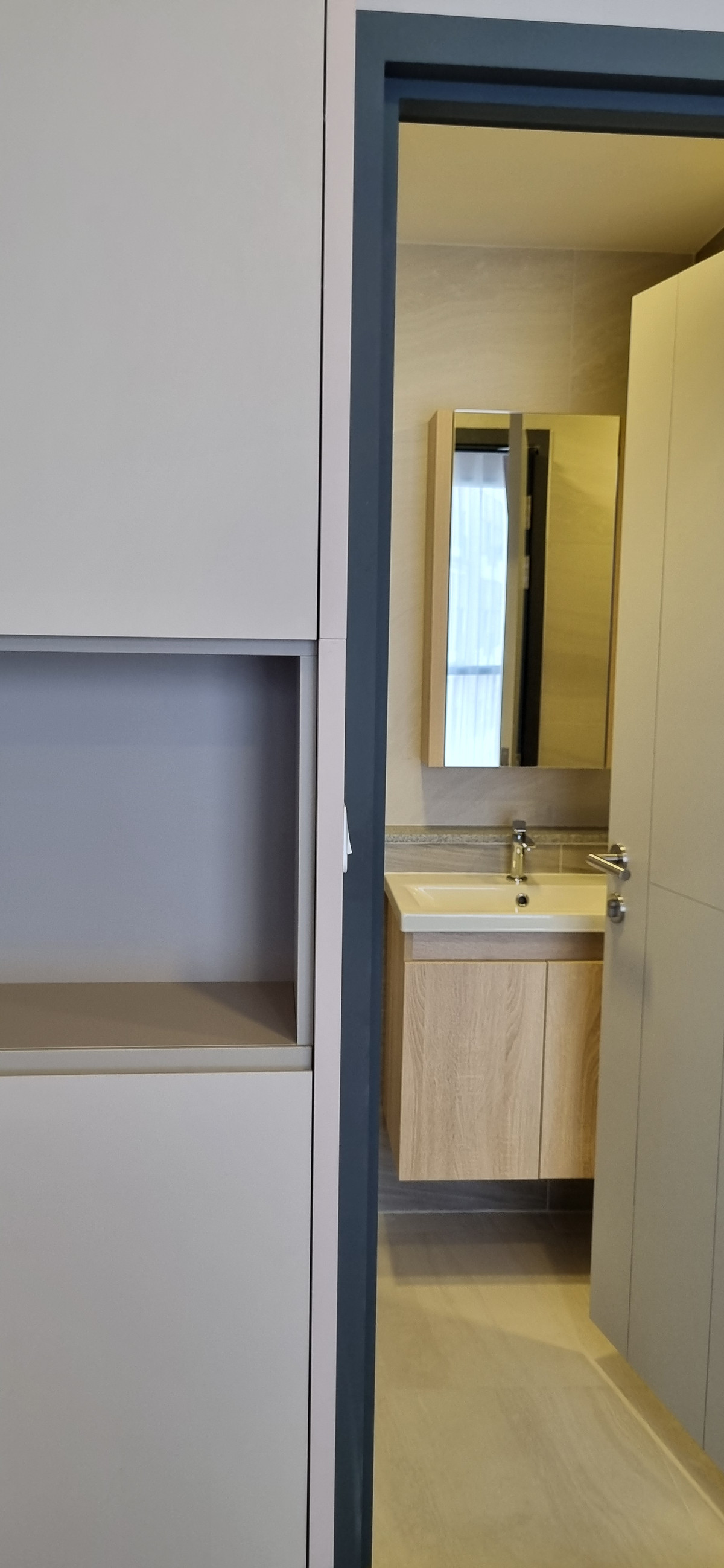 Decorated in Nordic Contemporary Living style, warm, gentle tones, beige, gray, light pink, giving a feeling of elegance, warmth, and airiness with minimalist design wooden furniture. simple lines There arent many patterns. The room receives natural light from large windows + completely blackout curtains. The atmosphere is clean New room, first hand 1 bedroom, size 26.82 square meters 1 bedroom, 1 bathroom, living room, open kitchen Built-in furniture with electrical appliances