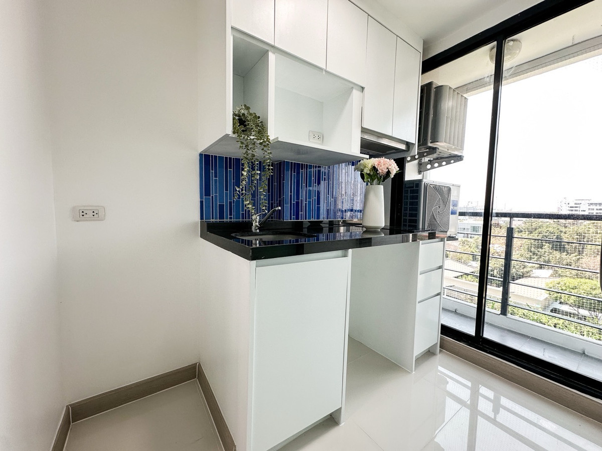 Room size 29 sq m., 7th floor, separated by 1 bedroom, 1 bathroom, fully furnished, 2 air conditioners, closed kitchen, convenient travel, near BTS Bang Chak and Punnawithi, 500 meters, near Sukhumvit Expressway.