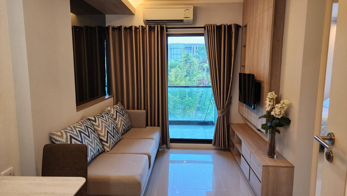 Condo for rent, Lumpini Park Beach Cha-am, size 28 square meters, furnished, ready to move in, consisting of 1 bedroom, 1 bathroom, 1 living room, wardrobe, bed, mattress, dining table, sofa, 2 air co