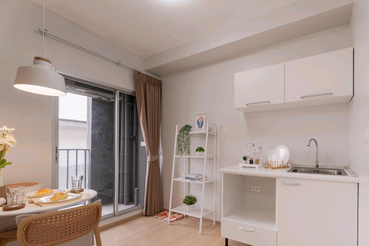 For Sale - Plum Condo Samakkhi, Near MRT Pink Line : Samakkhi Station • Studio, 1 Bathroom • Size 26.39 sqm., 4th floor, Tower A • Kitchen, Living room • Fully furnished • Swimming pool, Fitness • Nea