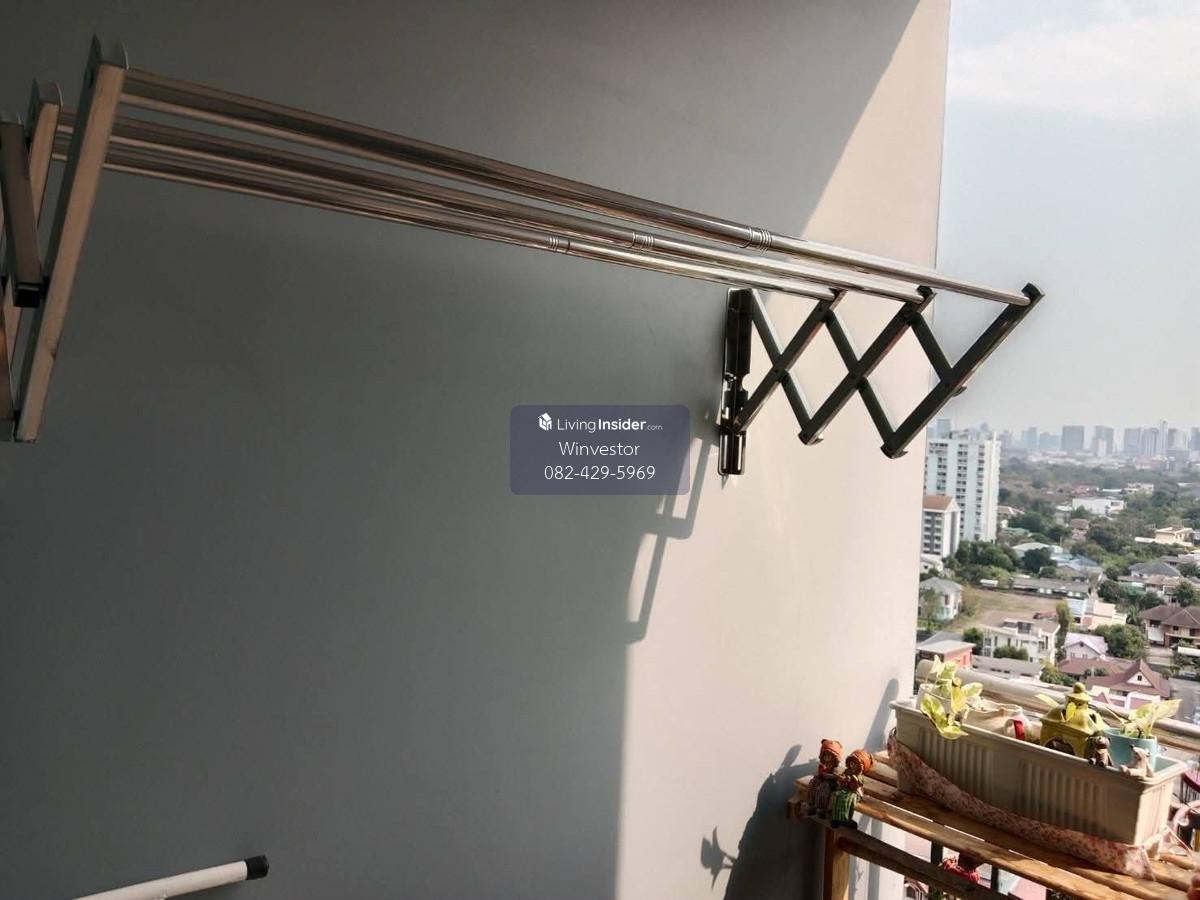 -Balcony, bedroom has a new foldable clothes drying rack. Beautiful city view