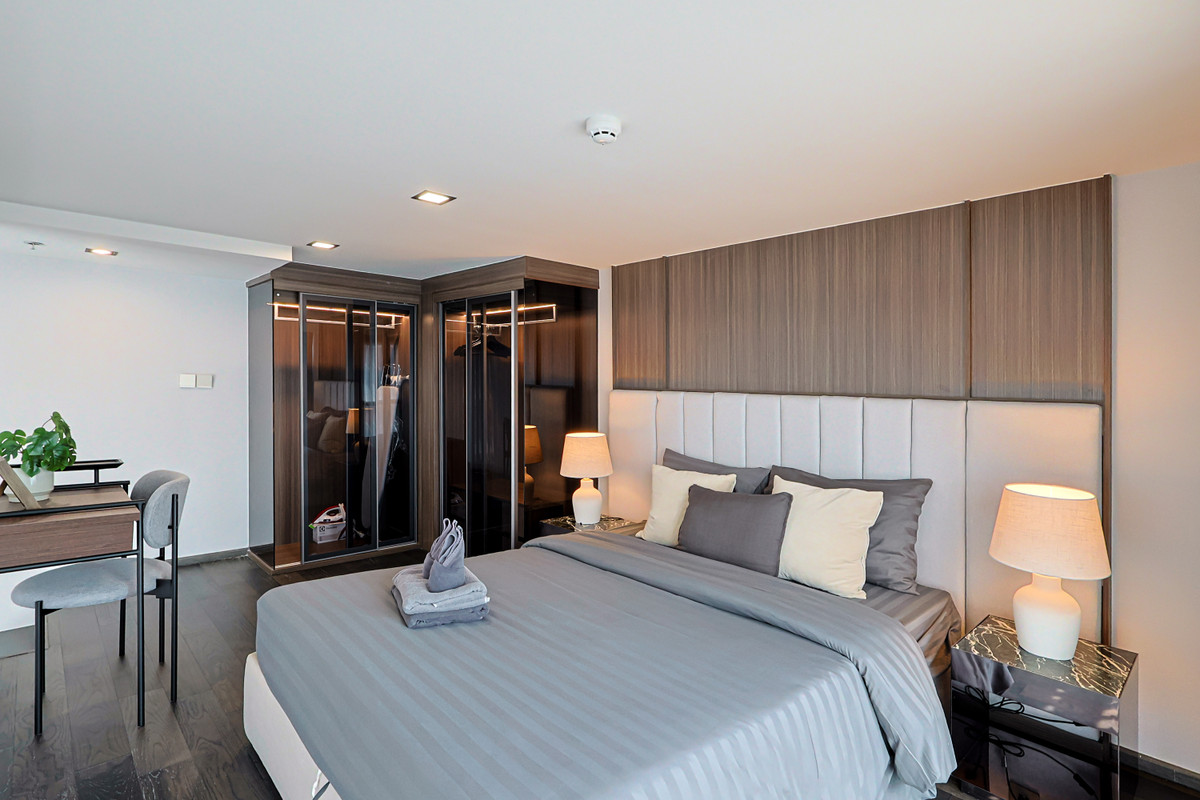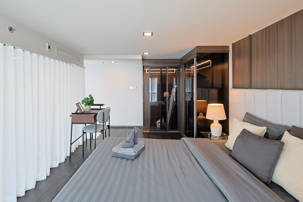 Near BTS Ratchathewi, Exit 3, about 300 meters. Near many restaurants It is a project with the most vertical green space in the Ratchathewi area / 2-story loft room Ready to move in immediately! Fully furnished 1 year contract, 2 month room deposit + 1 month advance rent Fully furnished • Digital Door Lock & Access Control Card • Complete built-in kitchen set • 40 inch LED TV • Water heater • Refrigerator • Microwave • Washing machine • 5 foot bed with good mattress • Sofa • TV shelf built in • Shoe cabinet built in • Large wardrobe built in • Double layer curtains to protect against UV Ask for more information. Or interested in making an appointment to view the room? Contact now ✅Welcome Co-Agent ✅Add line: @sm_th ✅Call Click to see the contact number for Space Management (Conner Ratchathewi) ✅Conner Ratchathewi project sales office, Khun Dear or Khun Taew.