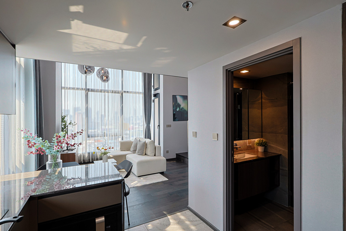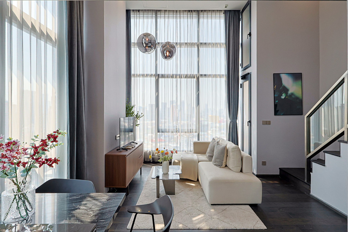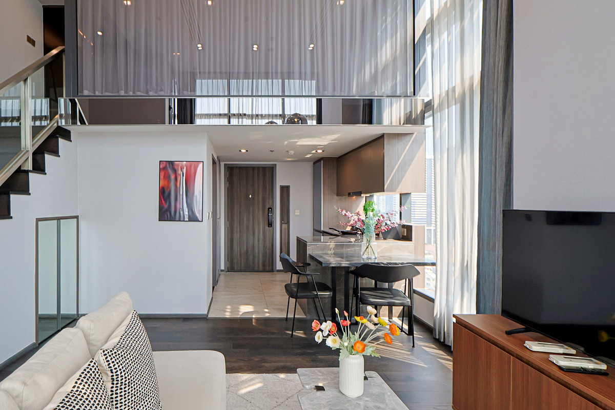 Near BTS Ratchathewi, Exit 3, about 300 meters. Near many restaurants It is a project with the most vertical green space in the Ratchathewi area / 2-story loft room Ready to move in immediately! Fully