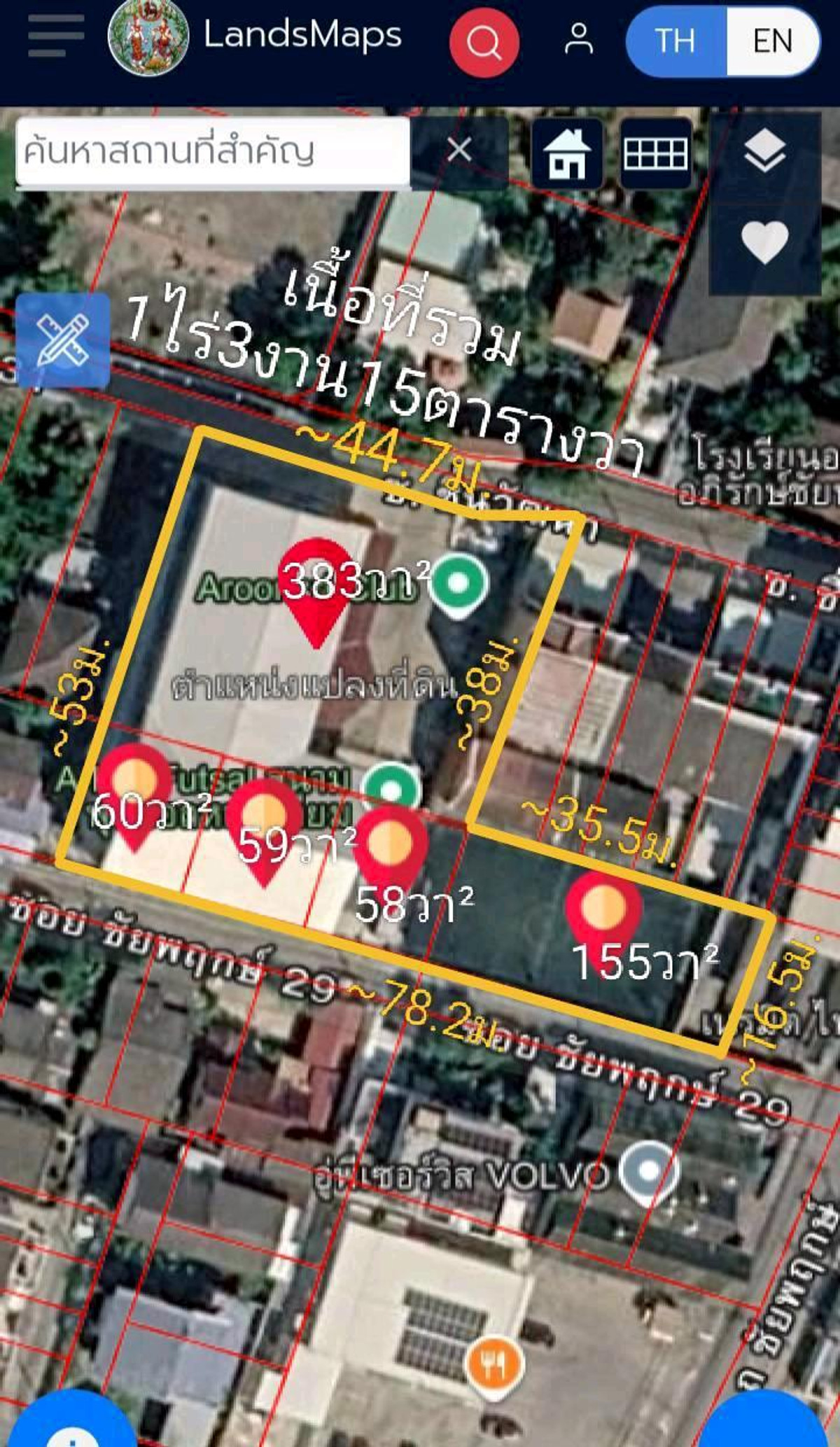 Area size 1 Rai 3 Ngan 15 Sq.wah.