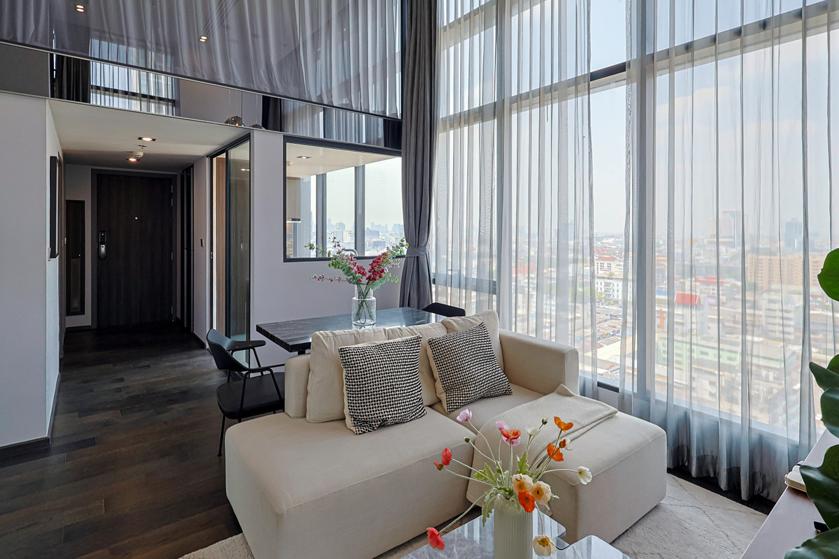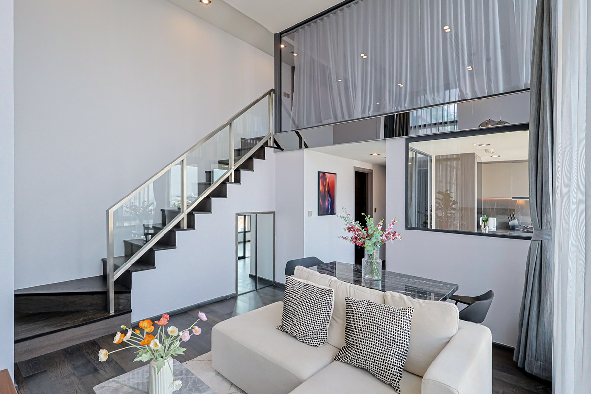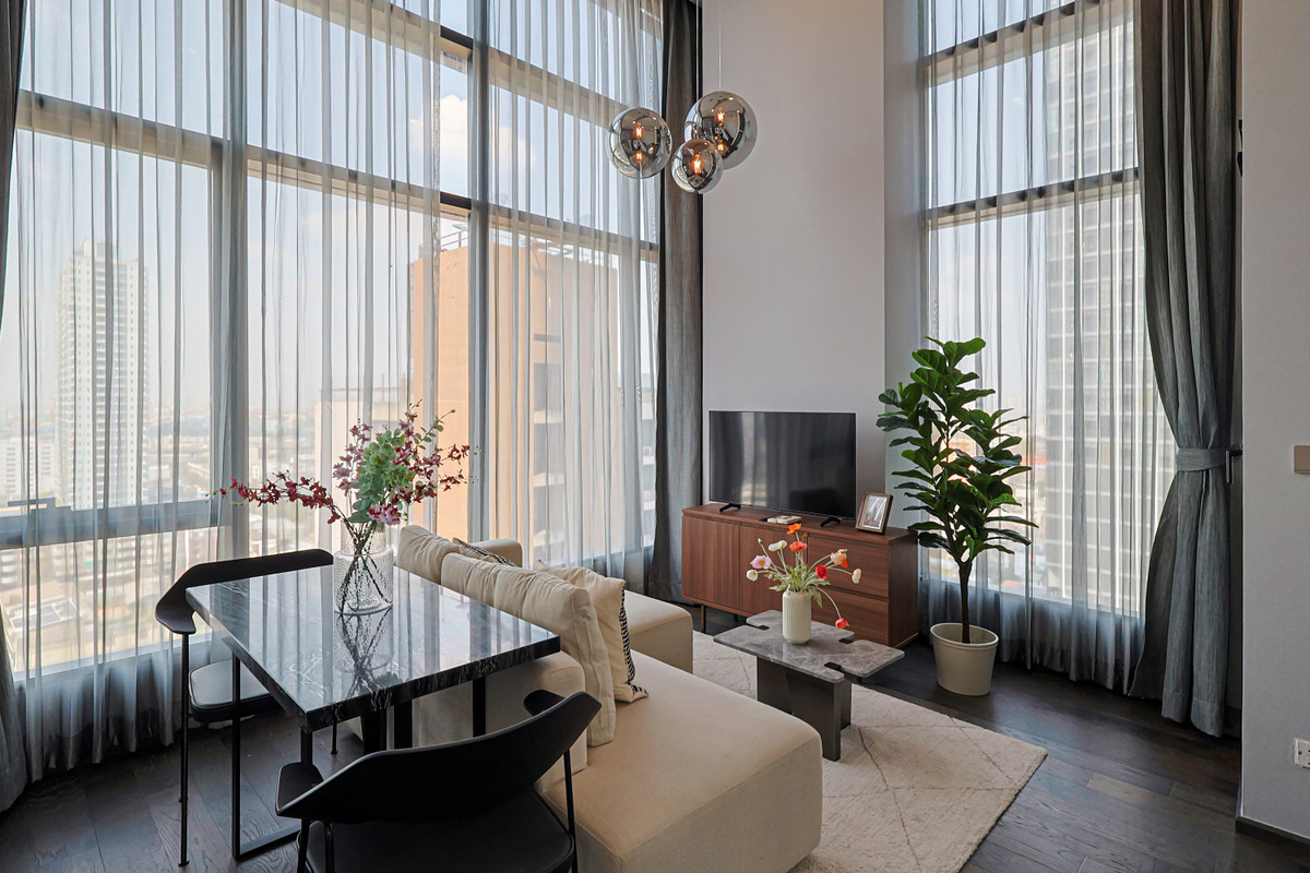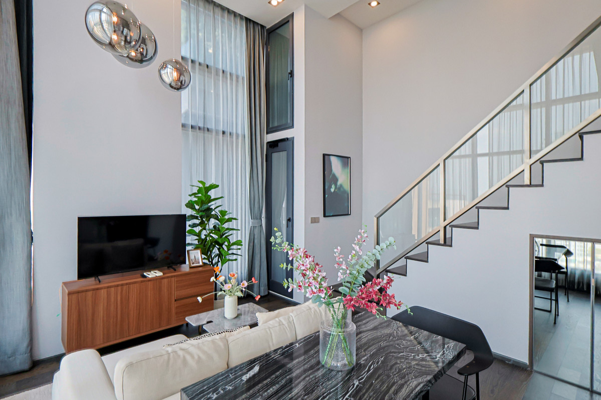 Near BTS Ratchathewi, Exit 3, about 300 meters. Near many restaurants It is a project with the most vertical green space in the Ratchathewi area / 2-story loft room Ready to move in immediately! Fully