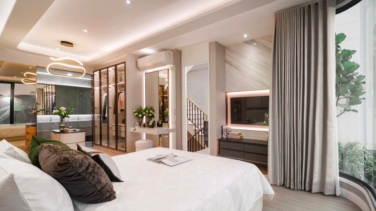 Luxurious 3-story townhome with rooftop 3 bedrooms, 4 bathrooms 2 parking spaces with clubhouse just 5 minutes to MRT Sutthisan starting at 14.9 million baht near 2 electric train lines near all 3 Central Department Stores near the expressway only 34 units with 24-hour security system