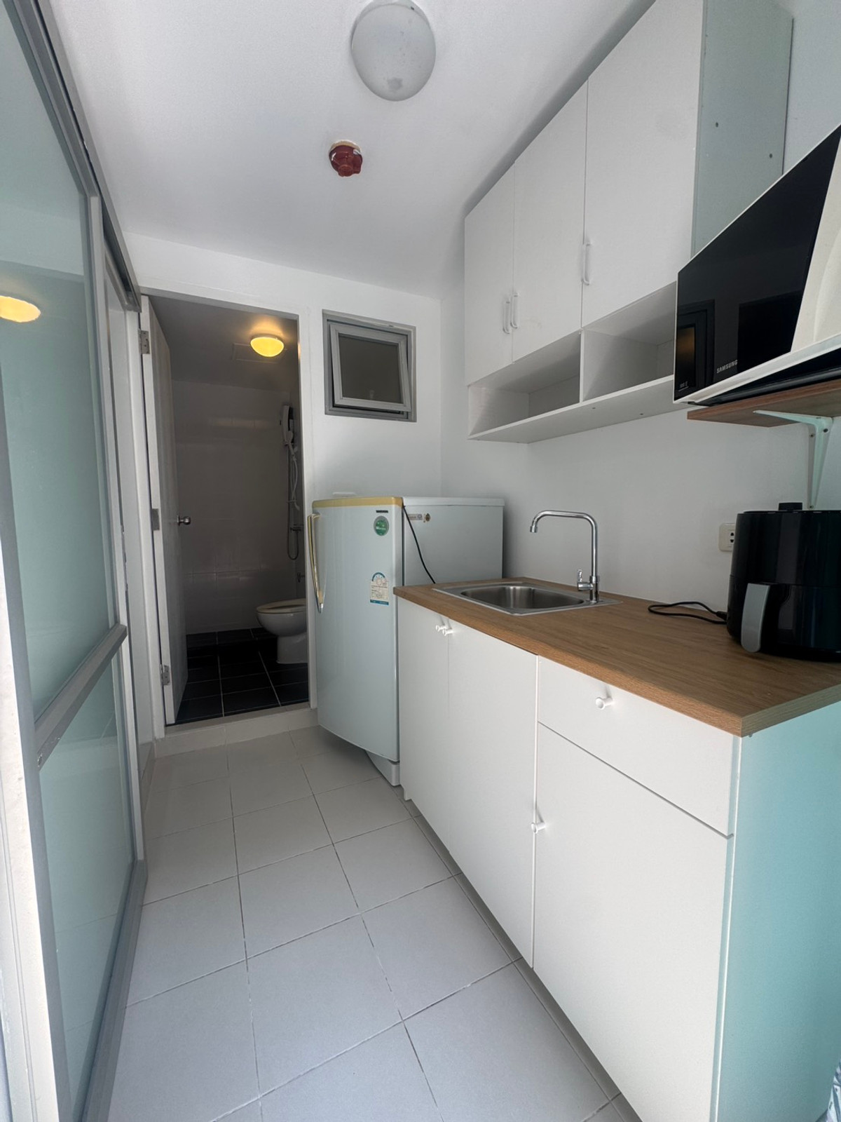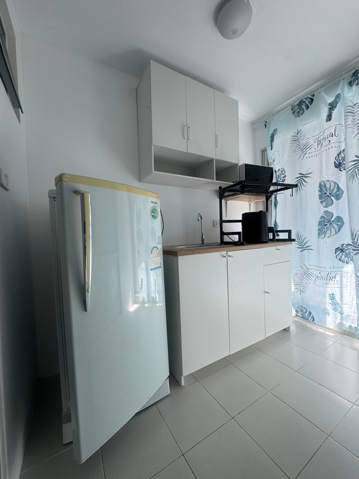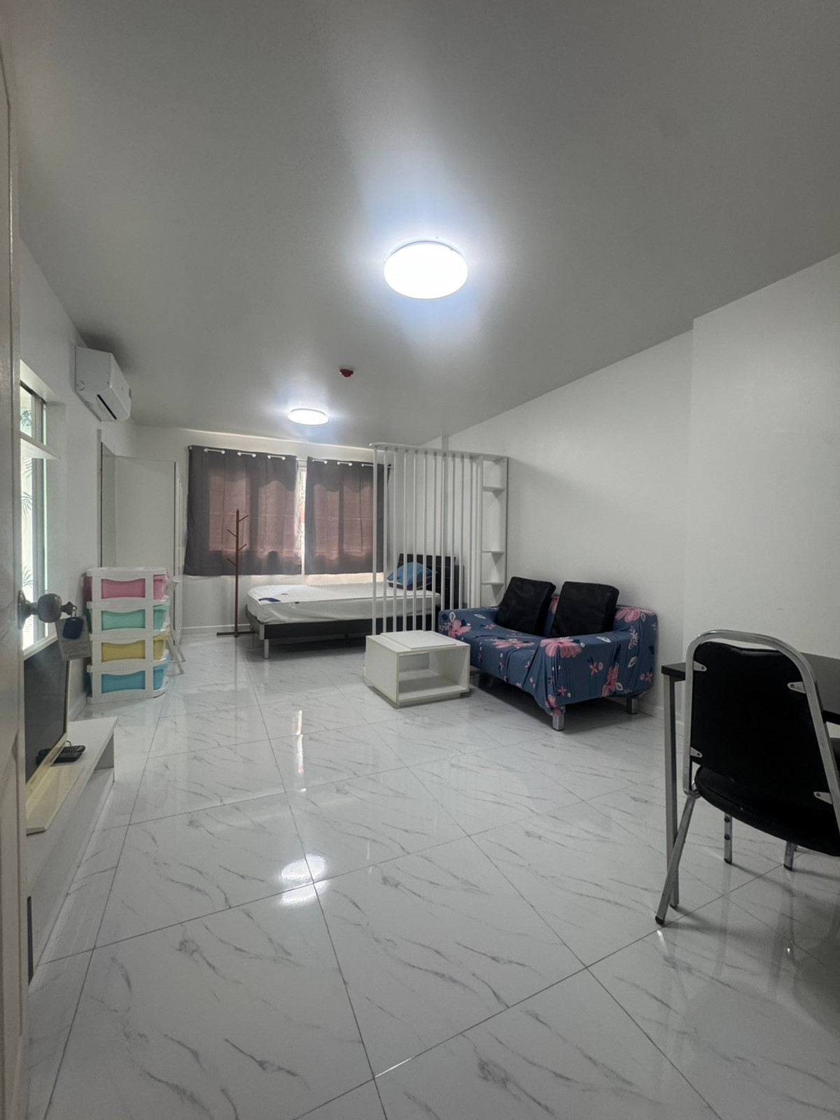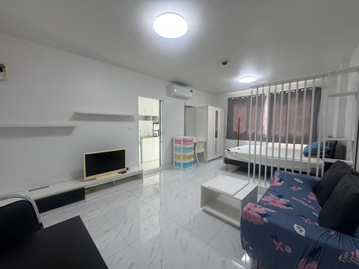 For rent, D Condo Ram Intra, Dcondo Ram Intra, Ram Intra 47, next to the road , spacious room, separated kitchen, new air conditioner, new water heater. New granite flooring Renovated, new paint Price: 7,000 baht/month Area: 30 sq m Building: B Floor: 2 1 month advance rent / 2 month security deposit Contact Pee Jeng: Contact number id: jeng7010 **Furniture and electrical appliances** - 1 air conditioner, newly installed - new water heater - refrigerator - TV - microwave - bed with 5 foot mattress - wardrobe - dressing table + mirror - bedside table - dining table + chair - living room sofa + 2 cushions + Center table - TV shelf - New kitchen sink + new kitchen wall cabinet #Jeng Condo Condo for rent in the way it is. "You" #provide rental services with sincerity. #Take care and attention throughout the contract #Provide a complete service for renting. Because we understand the needs of customers very well