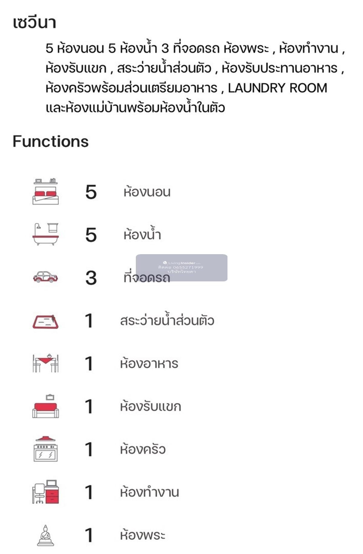 House details: SAVENA house model • Usable area 320 square meters • 4 bedrooms, 5 bathrooms • 3 parking spaces, 1 tea lounge (Can be converted into a bedroom) • 1 living room, 1 dining room Separate Thai kitchen and 1 laundry room. • There is a private swimming pool. • 1 living room upstairs • 1 Buddha room and 1 maid's room with attached bathroom. • Selling price 23,000,000 baht Free service ❤️ - Happy to give advice and complete loan application services. - Ready to take care of every step until the day of ownership transfer. Make an appointment to see the house / ask for more information Call: Contact number Line: sales.thaida / https://line.me/ti/p/DeMngbREyZ #Single house #Grandio #Vibhavadi #Rangsit #Ready-to-move-in house #New house, never lived in #Single house for sale #Phahon Yothin #Near Future Park #Red line electric train #quality project #single house Rangsit Zone
