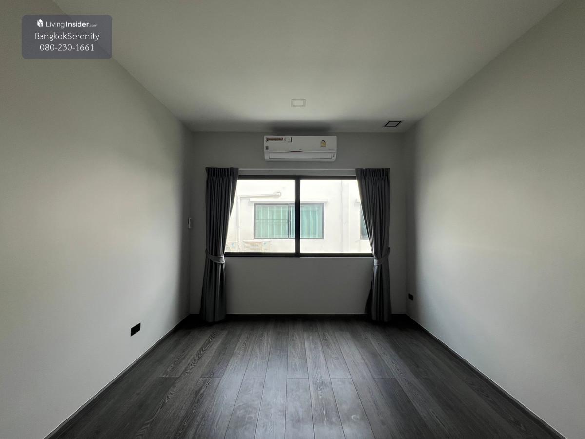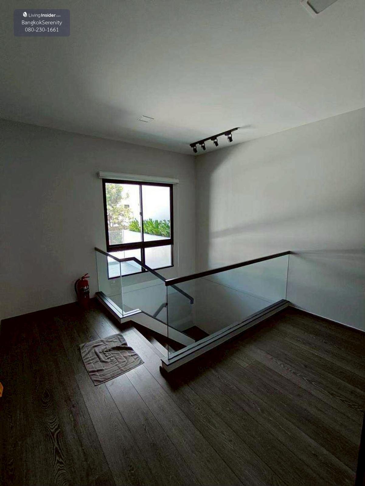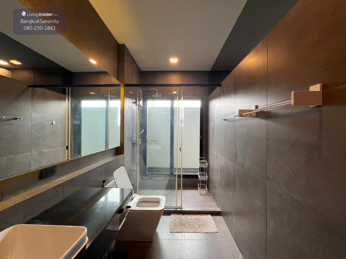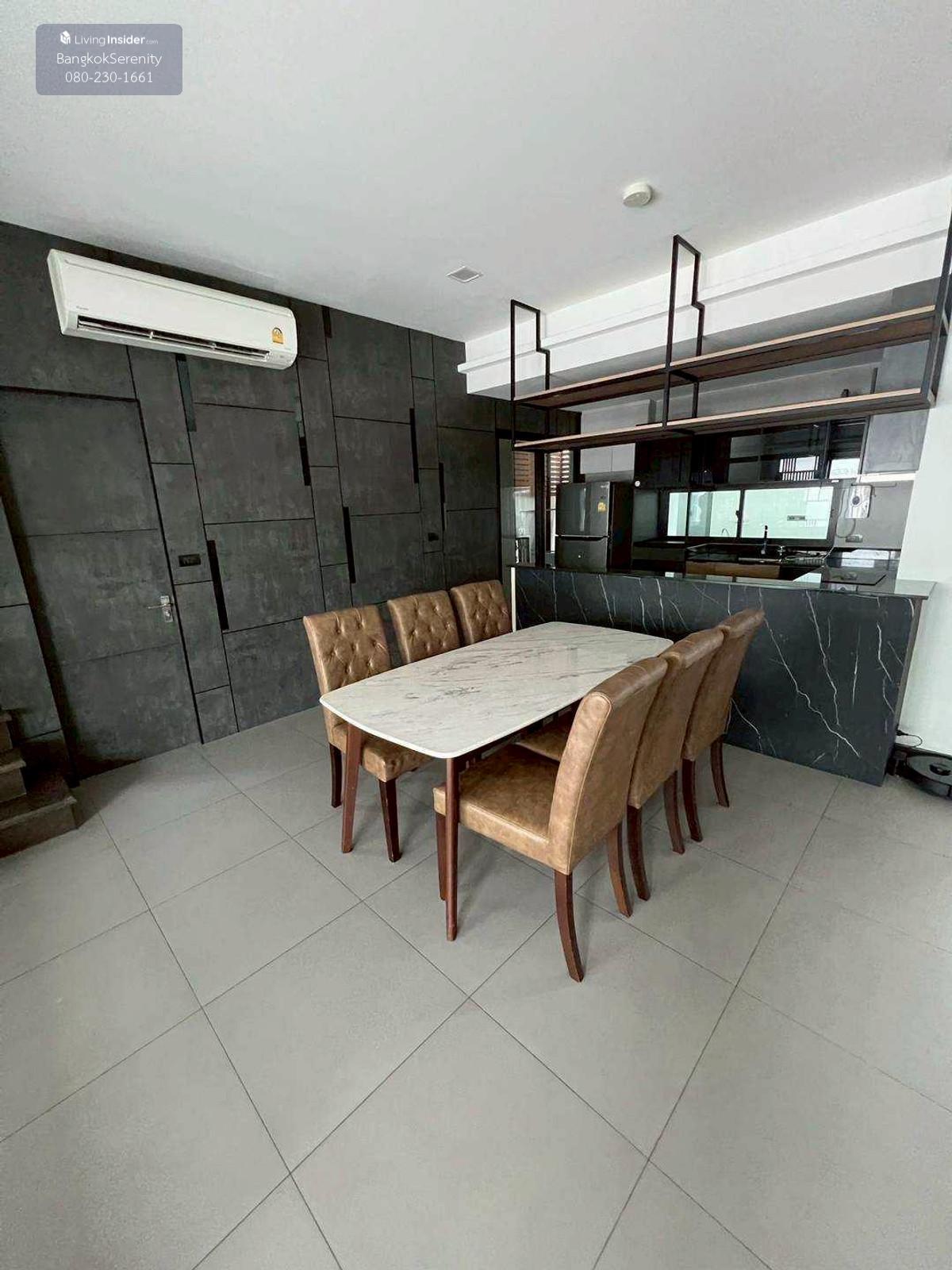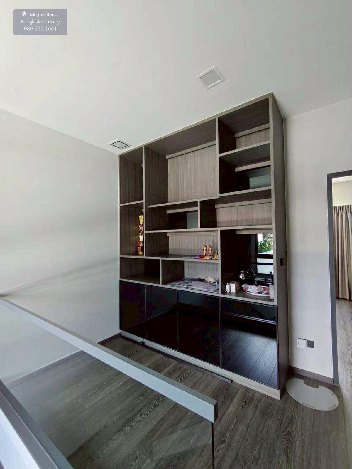 For sale and rent Vive Bangna Km. 7 - Central house facing south - Land size 40 square wah - Usable area 240 sq m - Addition of Thai kitchen in back with gas stove, hood and kitchen counter - Built-in TV shelf, bedroom and kitchen - Rent 75,000 baht per month - Sell for 14.5 million baht (Price negotiable)