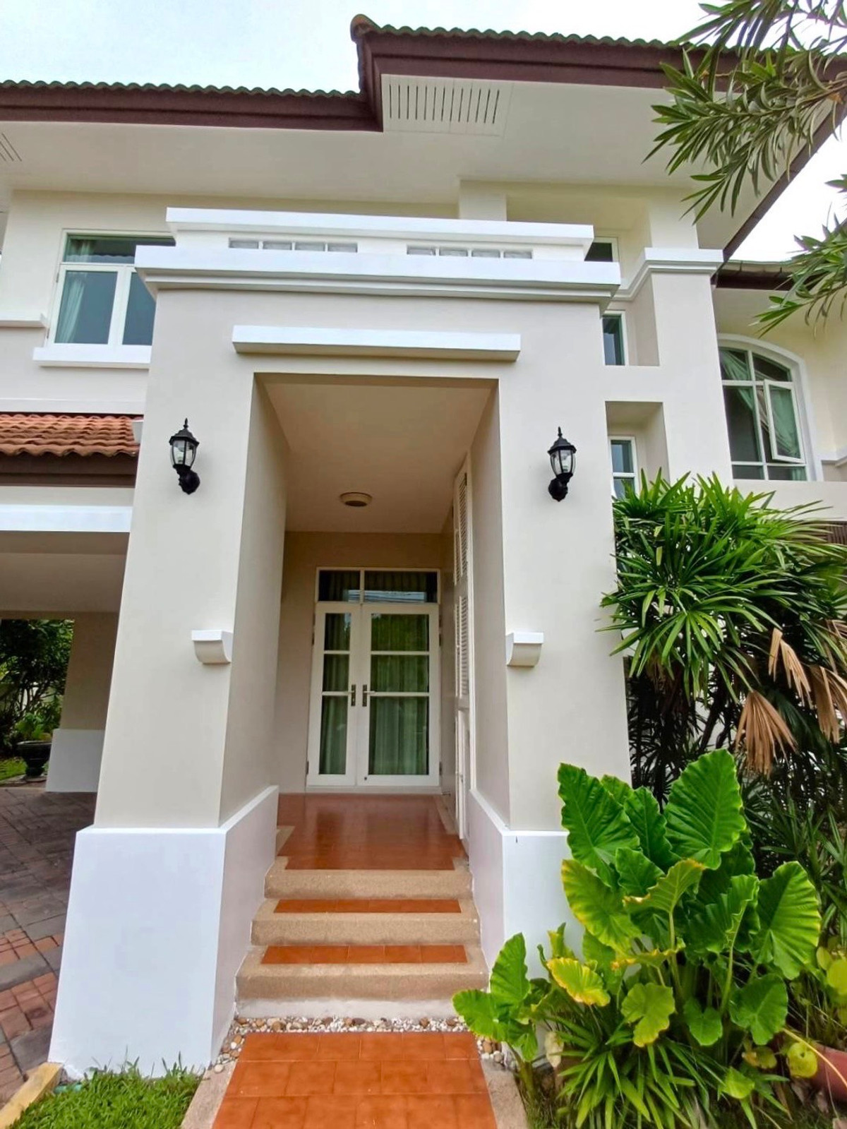 2-storey luxury detached house for sale, Living Lagoon Village. Soi Phraya Suren 39, large corner house, waterfront, 161 sq m., suitable for Feng Shui principles.