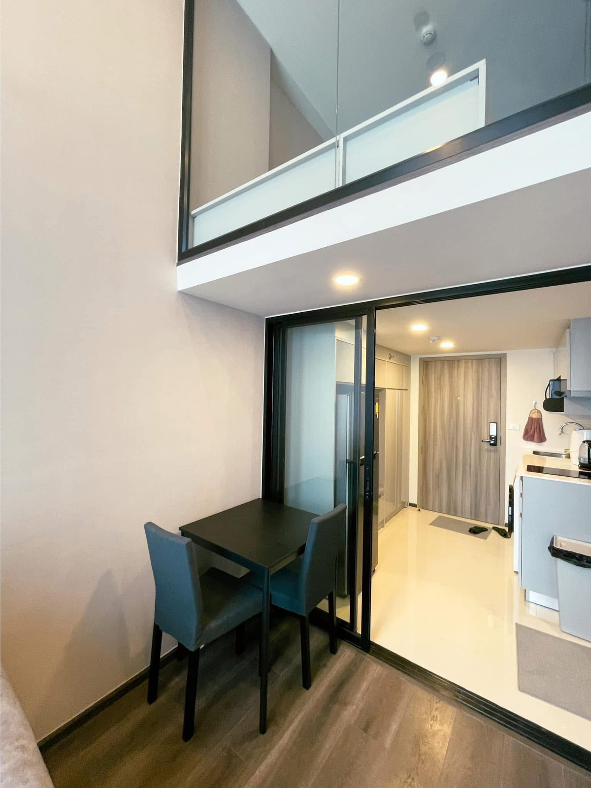KnightsBridge Space Ratchayothin Only 20 steps from Phahon Yothin 24 BTS station Room on the 30th floor, size 37 sq m. - Ground floor area 27 sq m. - Mezzanine area 10 sq m. with double volume sky com