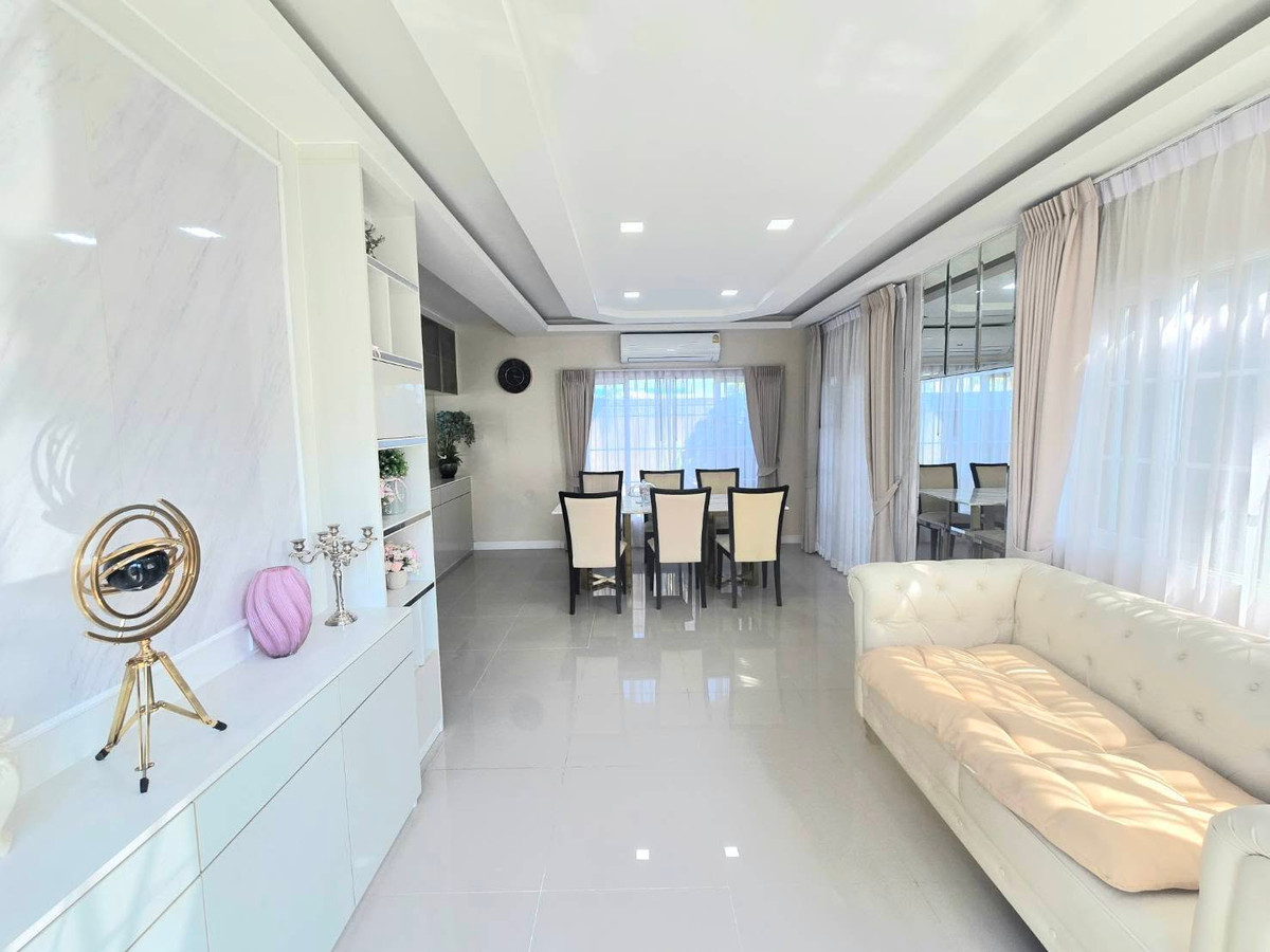Golden Neo Bangna-Suan Luang (For Rent / For Sale) Ref.no : M723 Semi-detached house in the Golden Neo Bangna–Suan Luang project, Bangna–Suan Luang location, convenient travel, near Mega Bangna and Suvarnabhumi Airport. Suitable for families or foreigners. Ready to move in ⭐ House information Land size 40.8 sq m Usable area 151 sq m 3 bedrooms | 3 bathrooms 1 living room 1 Dressing room 1 Thai kitchen 1 washing room (clear glass, bright) 2 parking spaces 💡 Complete electrical appliances and furniture 5 air conditioners 2 TVs refrigerator microwave water heater washing machine fully furnished 🌟 Project facilities Swimming pool Fitness Garden 24-hour security system CCTV camera Entry-exit with Key Card system 📍 Location and transportation Near Mega Bangna and IKEA Near Suvarnabhumi Airport Near Burapha Withi Expressway and Kanchanaphisek Ring Road , convenient travel to Bangna, Srinakarin, Sukhumvit 💰 Selling price: 6.8 million baht (reduced from 7.5 million baht) 💰 Rental price: 50,000 baht/month (Fully Serviced) ✨ Internet included ✨ Maid cleans every week ✨ Someone to take care of the garden every month (Promotion from 55,000 baht down to 50,000 baht) Conditions: 2 months deposit + 1 month in advance Welcome foreigners 📞 Interested in making an appointment to see / request additional details Inform Ref.no : M723 Tel : Contact number (Mild) Line@ : @mfirst Add Line : https://lin.ee/SaaVHhA