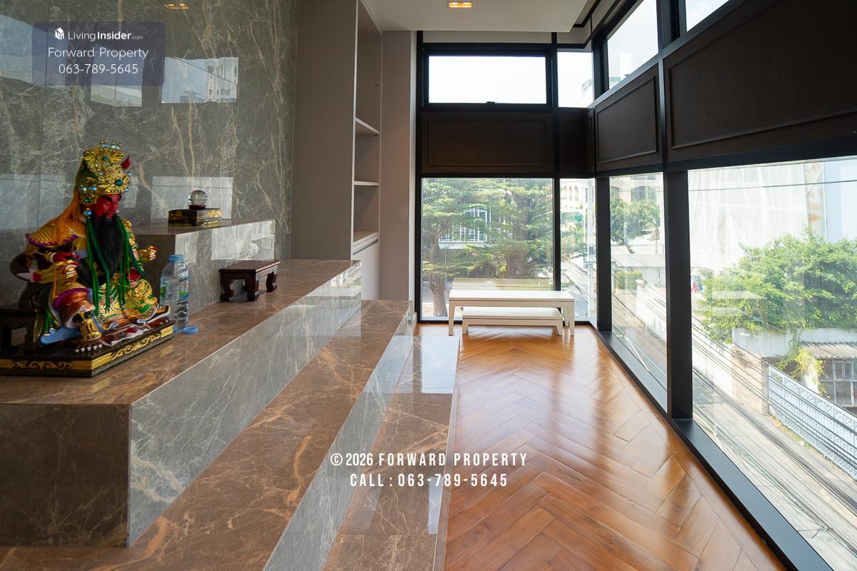 5-story building for rent, Thonglor location Suitable for living or making a home office. Spacious area The design is proportional. With private elevator * Usable area: 900 sq.m. * Building style: 5 floors with 1 elevator (5-Story with 1 Private Elevator) * Parking: 5 cars (5 Parking spaces) * Perfectly divided into proportions. Answers to every use: * 1st floor: 5 parking spaces + guardhouse + maids bedroom + storage room * 2nd floor: living room / common area / long dining table (Long Table) * 3rd floor: 3 bedrooms + 3 bathrooms + Buddha room + living room * 4th floor: living room + dining zone + kitchen + maids room + washing zone * Floor 5: Main bedroom, private entire floor 💰 Rent: 350,000 baht / month If interested, ask for more details. Or make an appointment to see the place, Inbox me Tel: Contact number Lineid: forward property