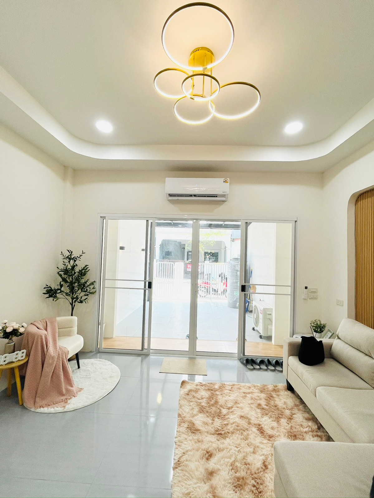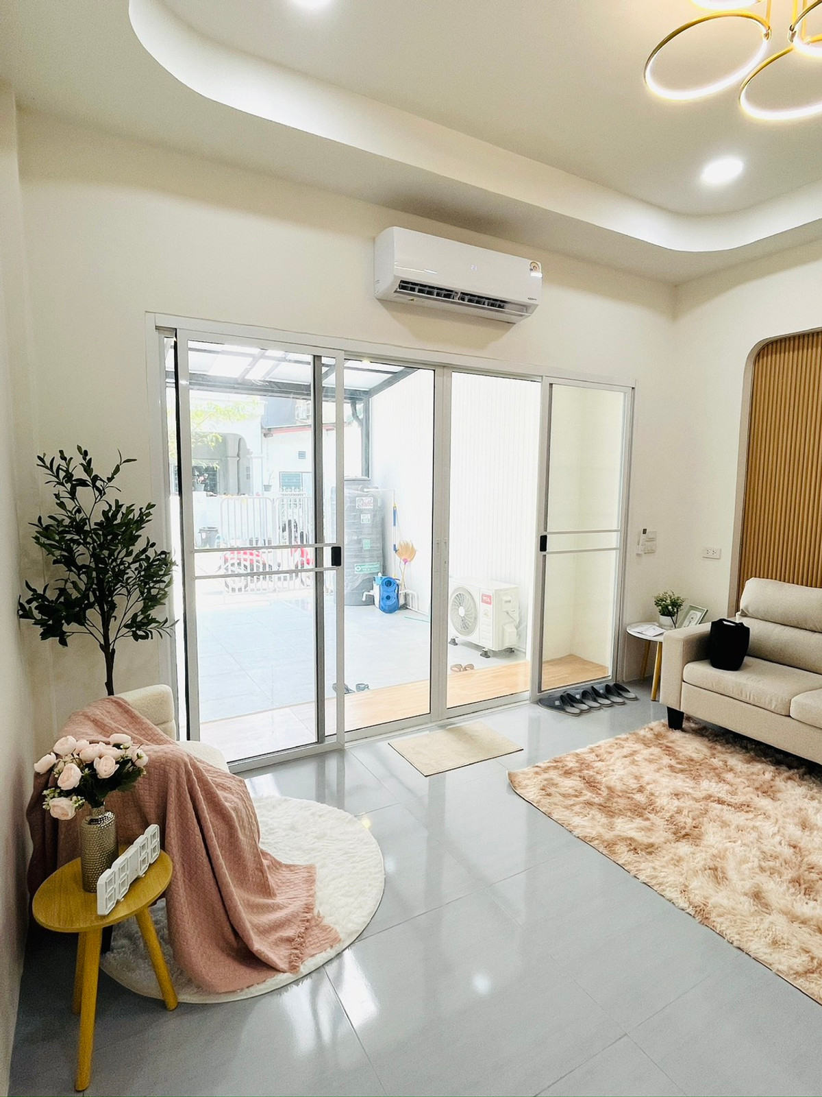 Sometimes we dont choose the house. But it is the house that is waiting for its owner. Chaengwattana-Pak Kret Townhouse with high ceilings, 16 sq m, 2 bedrooms, 2 bathrooms, minimalist Muji. Newly ren