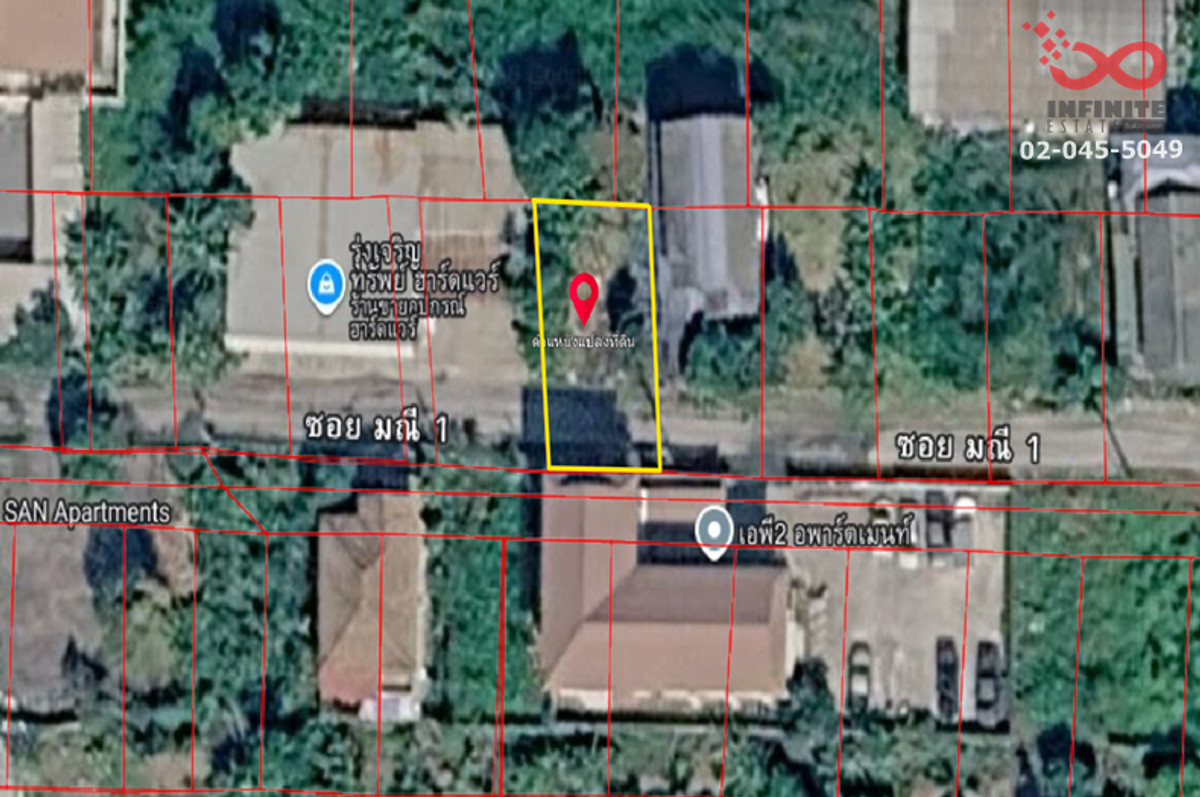 Contact: Ms. May Contact number office: Contact number Location: Krungthep Kreetha Road Khlong Song Ton Nun Subdistrict, Lat Krabang District, Bangkok 10520 Area: 49 square wah Review: Land filled in, good location, only 100 meters into the alley, Phatthana Chonburi Road 3, Intersection 2, only 200 meters from the motorway road, suitable for building a house or building storage, water and electricity, ready to access, convenient travel, can enter and exit in many directions Property faces direction: South Nearby places : Shopping and lifestyle places - Robinson Lat Krabang - The Paseo Mall, Latkrabang Educational institutions - Sarasas Romklao School - Supakorn Wittaya School - Bangkok Suvarnabhumi University Hospital - Sirindhorn Hospital - Kasemrad Ramkhamhaeng Hospital - Lat Krabang Hospital Travel - BTS Ban Thap Chang Station - Motorway Expressway (Kanchanaphisek Road) - Suvarnabhumi Airport