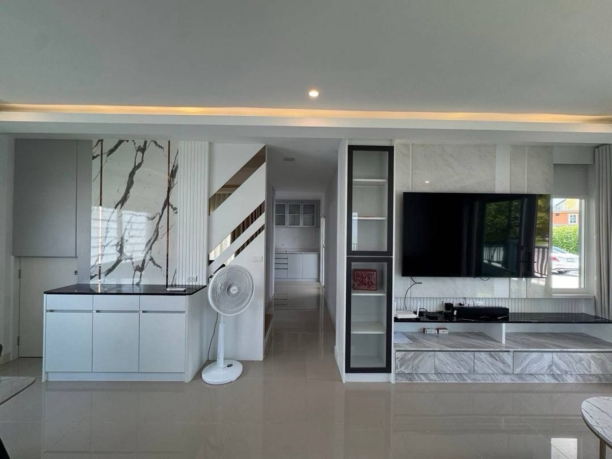 💕🌸For rent 55,000 baht, 2-story detached house. Grande Pleno Mega Bangna Project Grande Pleno Mega Bangna behind Mega Bangna Department Store Travel approximately 5 minutes, near Concordian International School / D-PREP International. Scho Rent includes common fees and internet ***Minimum 1 year rental contract***Built-in throughout the house 3 bedrooms / 3 bathrooms Land size: 40.3 sq m. Usable area: 145 sq m. - 4 air conditioners - Curtains throughout the house - There is furniture in all 3 bedrooms - Water heater - Washing machine - Built-in kitchen - Refrigerator - Smart TV 75 inches - Digital Door Lock - CCTV - Awning roof - There is a very wide garden next to the house. -Water filter -dishwasher entire furniture Ready to move in ☎️ Contact number ( Agent ) 🆔 buapit1982 https://line.me/ti/p/OTzAhIm3id