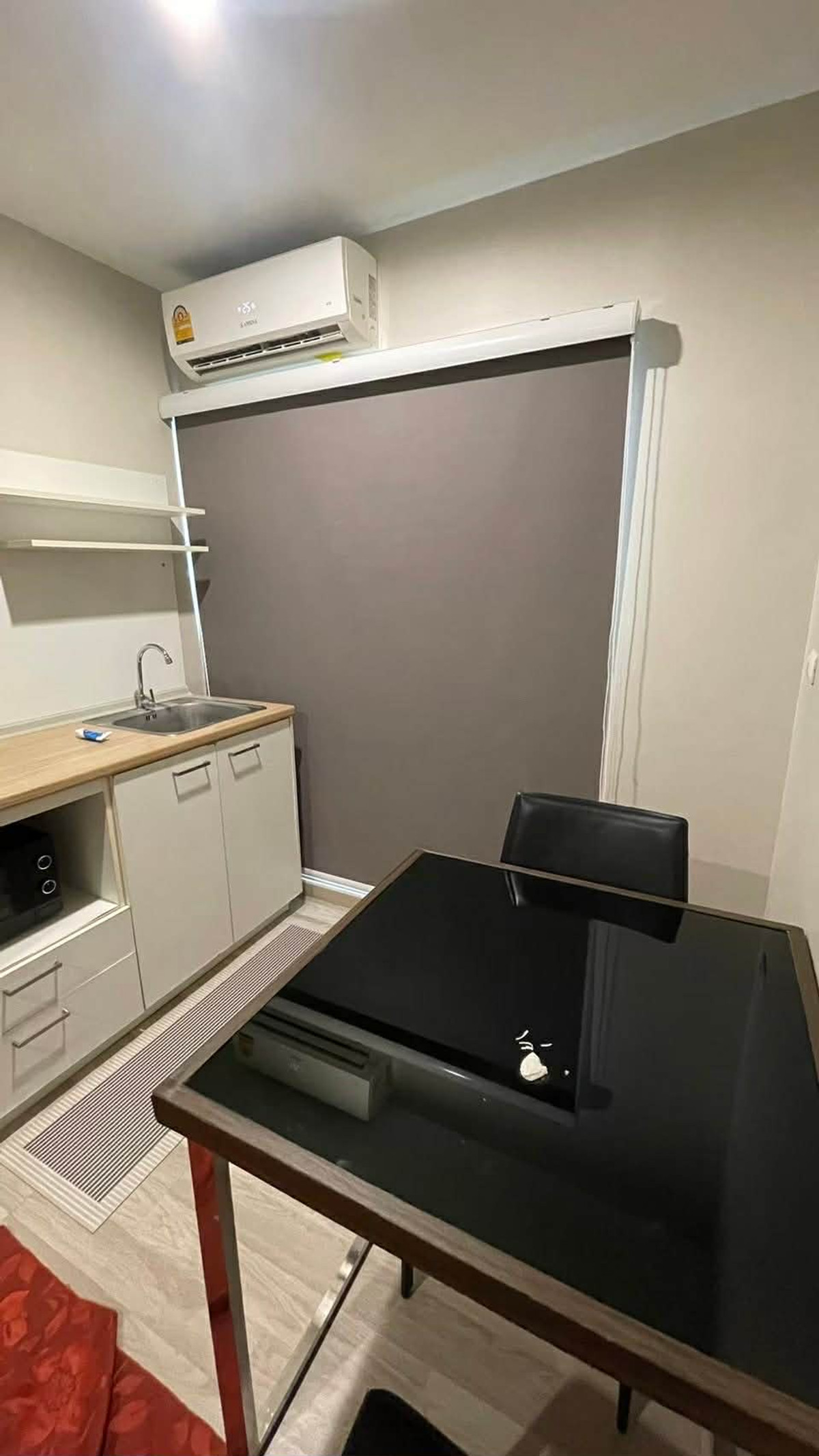**Room for sale with tenant, rental contract until August 2026** Room details Room size 26 sq m. 6th floor (room next to fire escape staircase) - There is a living room zone - Kitchen - There is a balcony - The bathroom has a glass door to separate dry and wet areas - Good ventilation, always blowing wind - Balcony facing north - The room is not exposed to the afternoon sun. And without noise from the market next to the condo ======================== Furniture and electrical appliances:- **2 air conditioners (12000,9,000 BTU) **43 inch TV **1 door refrigerator **Microwave **Water heater **5 foot bed with mattress **Bedside table **Wardrobe **TV cabinet) With shelves above the TV ** 2-seat sofa **Writing table/dressing table **Eating table For 2 people **Built-in kitchen counter **UV protection curtains ====================================================== Location Condo is on the road. Lat Phrao Wang Hin Beside Soi Lat Phrao Wang Hin 43 travel connecting main roads There are many lines including Lat Phrao, Ratchadaphisek, Ekkamai-Ramintra, Kaset-Nawamin. And Phahon Yothin there are minibuses, pickup trucks, motorcycles for hire. Next one more alley (Motorcycles for hire are at the entrance of Soi 45, 50 meters from the condo) Near the MRT Lat Phrao Station - 2.6 km. There is an evening market, a 7-11 convenience store in front of the condo, many nearby restaurants Nearby places: *Tesco Lotus Wang Hin : 1.6 km. *Big C Lat Phrao : 3.6 km. *HomePro Lat Phrao : 3.8 km. *Union Mall : 4.5 km. *Central Lat Phrao : 5.5 km. *Tesco Lotus Lat Phrao : 5.7 km. *Major Ratchayothin : 5.5 km. *Chandrakasem Rajabhat University: 3.0 km. *Paolo Chokchai 4 Hospital: 1.5 km. ====================================================== Facilities: *The Roof Garden, sky garden *The Ground Garden, a relaxing garden in the middle of the garden. Under the shade of trees *Swimming pool with overflowing salt water system *The Library *The Lobby *The Shop shop in the project*The Gym, fitness center, swimming pool view *The Sauna, separate male-female sauna *CCTV *Access Card Control *Security guard. 24 hrs.