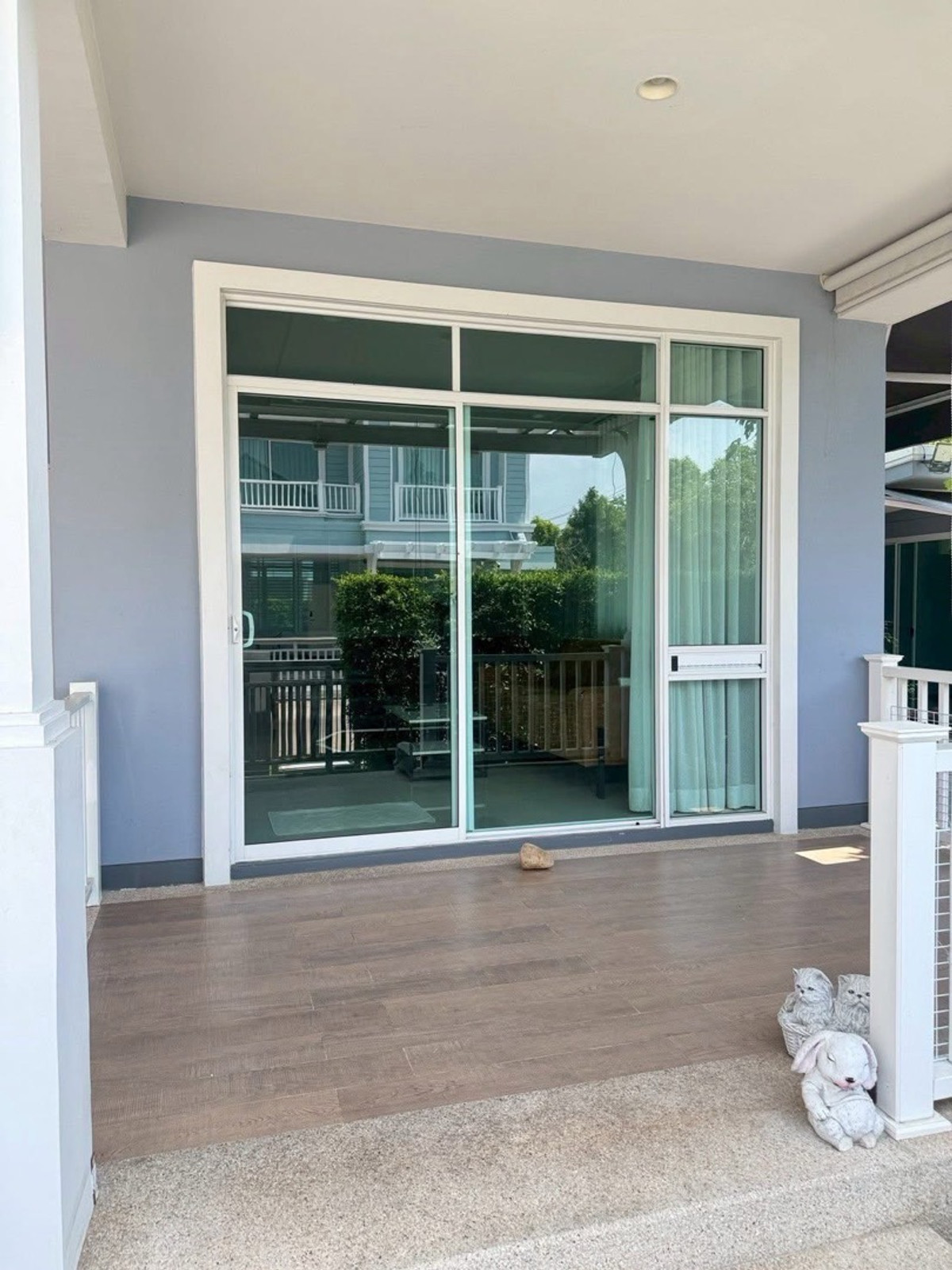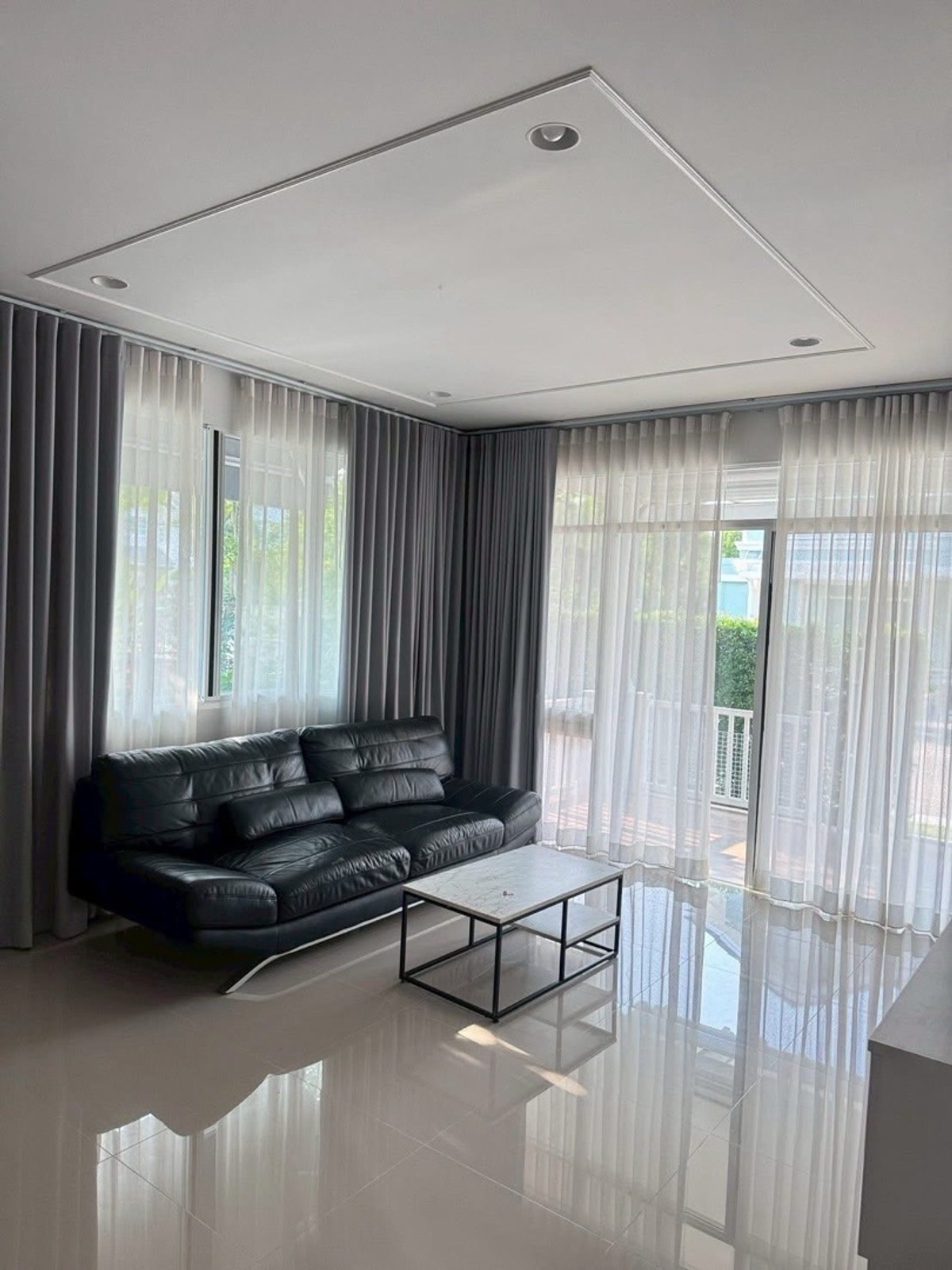 R182-1 Baan Burasiri Panya Indra, house with 4 bedrooms, 3 bathrooms -and 1 garden room for working or relaxing. - Storage room downstairs Liap Khlong Song Road, Bang Chan, Khlong Sam Wa, Bangkok Ready to move in Just carry your bags and ready to move in Near Fashion Island, Promenade, Safari World, near Chatuchok Expressway 2-story house, area 72 sq m, usable area 200 sq m Rental price 42,000 per month with common area, swimming pool, fitness, 2 year contract 4 bedrooms 3 bathrooms There is a storage room in the garage There is a storage room behind the house Parking for 2 cars in the house Thai kitchen in the back 7 air conditioners, 4 bedrooms, 1 living room All curtains Beds, mattresses, 2 bedrooms Water heater Wardrobe, washing machine , display cabinet, refrigerator, sofa , mosquito screen , good location. Near important places: •Fashion Island •Jas Khubon Here the security guards take good care of you. Theres a lot of food around here. Its safe. Tel : Contact number Line : https://lin.ee/gtlezb1 What app : Contact number