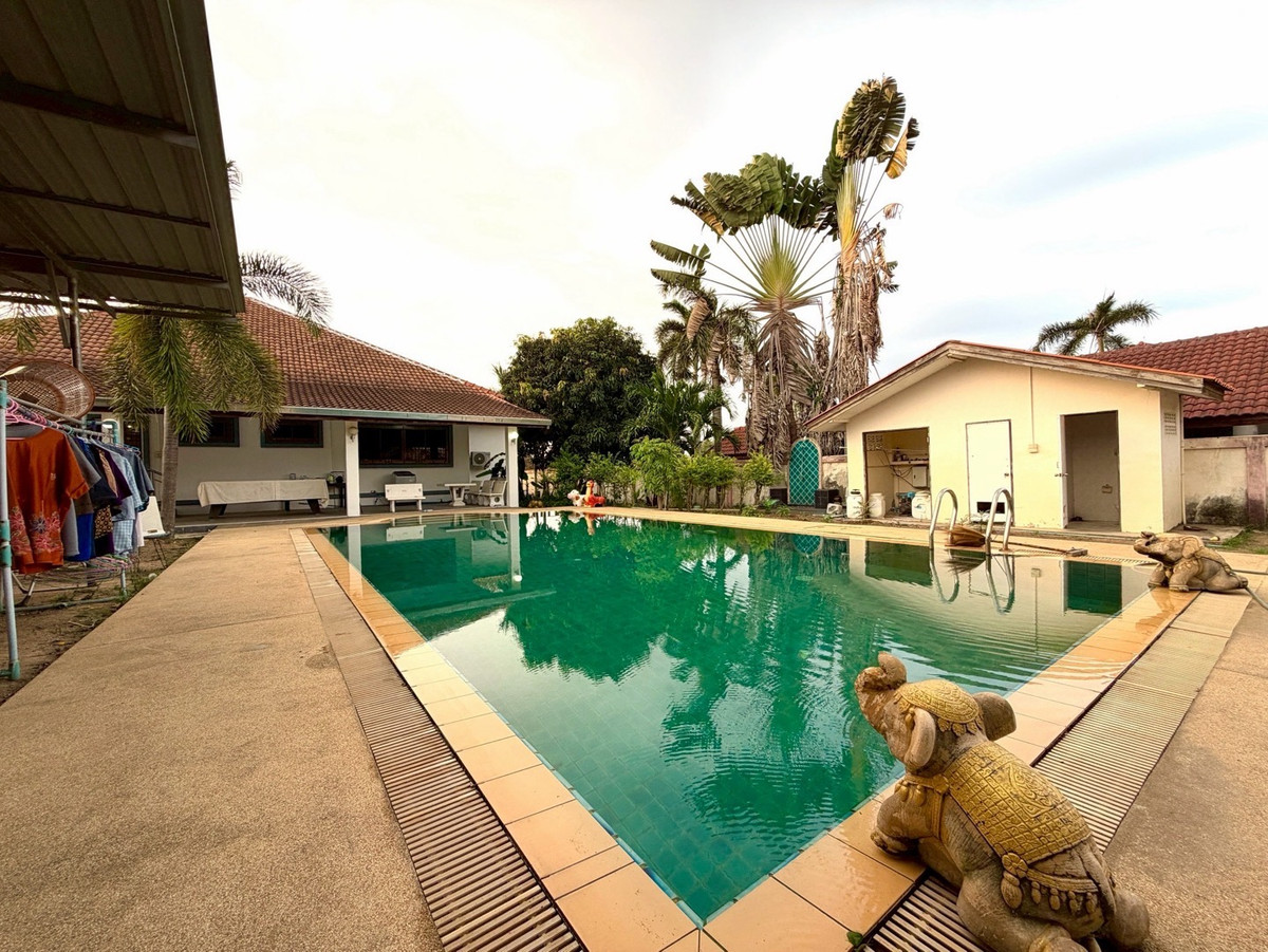 #Owner selling it himself #OwnerPost #Get an agent #welcomeagency 🏡 Pool Villa Huai Yai Pattaya Pool villa with land Huai Yai country house zone Near the motorway, convenient travel. 📐 Large land 2 rai 54 square wa (854 sq.wa) ❗️The house is lived in by itself. Take pictures according to the condition Suitable for renovating a residence / vacation home / pool villa. If you agree to buy, the owner will move out and clear out the entire area. • Main house 4 bedrooms, 5 bathrooms. • Great hall • Built-in European kitchen • Separate Thai kitchen + multi-purpose room • 2 maid's rooms with en-suite bathrooms • Private swimming pool • Fenced land next to luxury village, Baan Pattaya 7. 📄 Burden-free title deed | Thai name | Ready to transfer 💰 Price 22,000,000 baht 👉 Those who are truly interested, price negotiable. 📩 If interested, ask for details or request to see the house, you can chat with us. Add Line or call Contact number (Jeff).