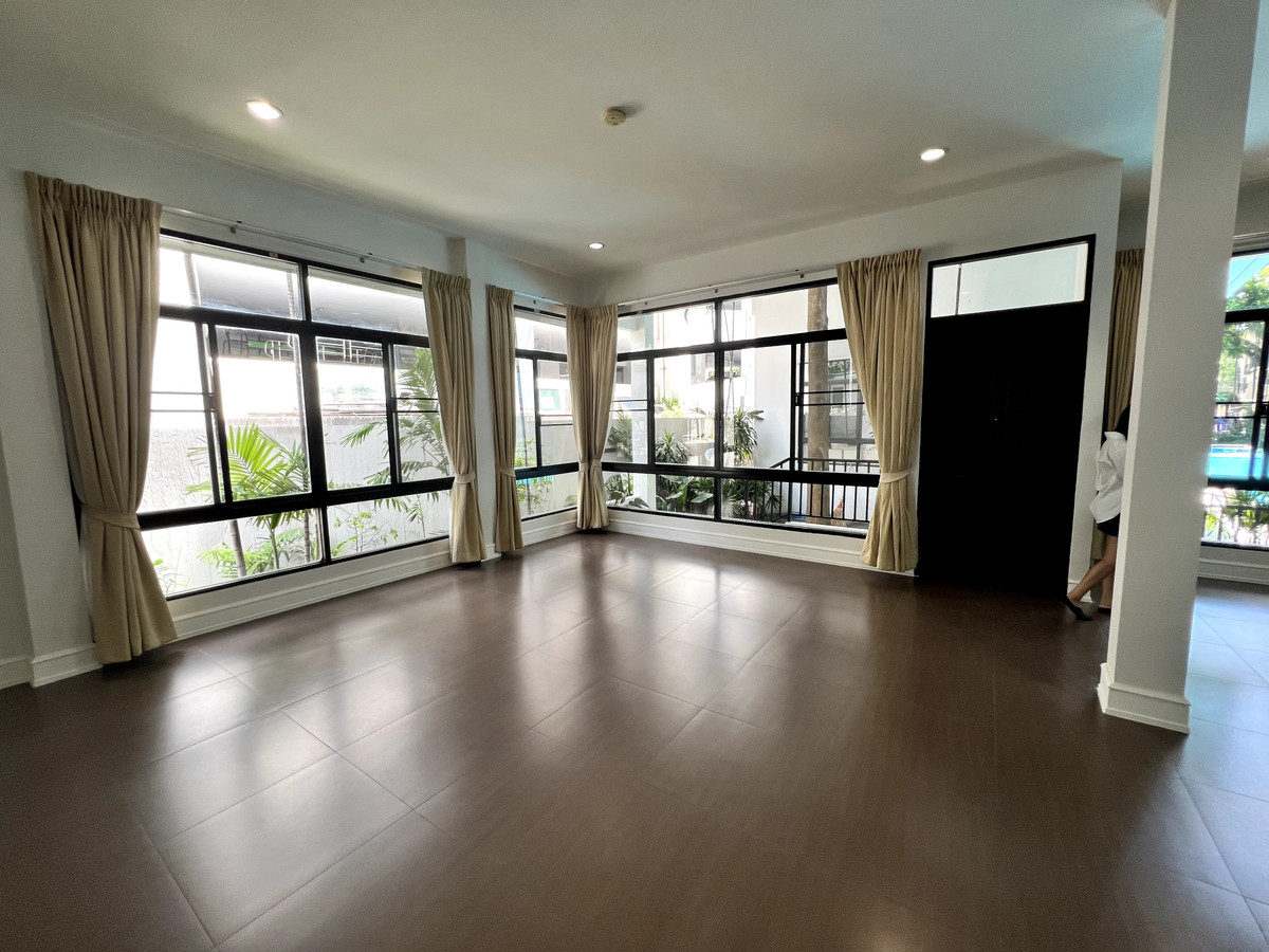 🏡 Townhouse for Rent (Unfurnished)- Thonglor area (Sukhumvit 38) 900 meters from BTS Thonglor 🐶 Pet friendly (under 10 kg) 📐 350 sq.m. 🛏 3 Bedrooms | 🚿 5 Bathrooms 🧹 Includes maid's quarters 🔨 Currently under renovation (new paint and new flooring) 🏊‍♀️ Shared facilities: • Swimming pool • Kids' playground 💰 Rent: 120,000 THB/month 📄 Minimum lease: 1 month 📅 Available for viewing now 🏡 Townhouse for rent (no furniture) Thonglor 900 meters from BTS Thonglor 🐶 You can raise animals. (Weight not exceeding 10 kg.) 📐 Usable area 350 sq m. 🛏 3 bedrooms | 🚿 5 bathrooms 🧹 There is a maid's room 🔨 Currently being renovated (New paint and new flooring) 🏊‍♀️ Common facilities: • Swimming pool • Playground 💰 Rent 120,000 baht/month 📄 Minimum contract 1 month. 📅 You can make an appointment to visit now. For more details or viewing, contact: WhatsApp/Call/LINE: Contact number (Ticha- agent)