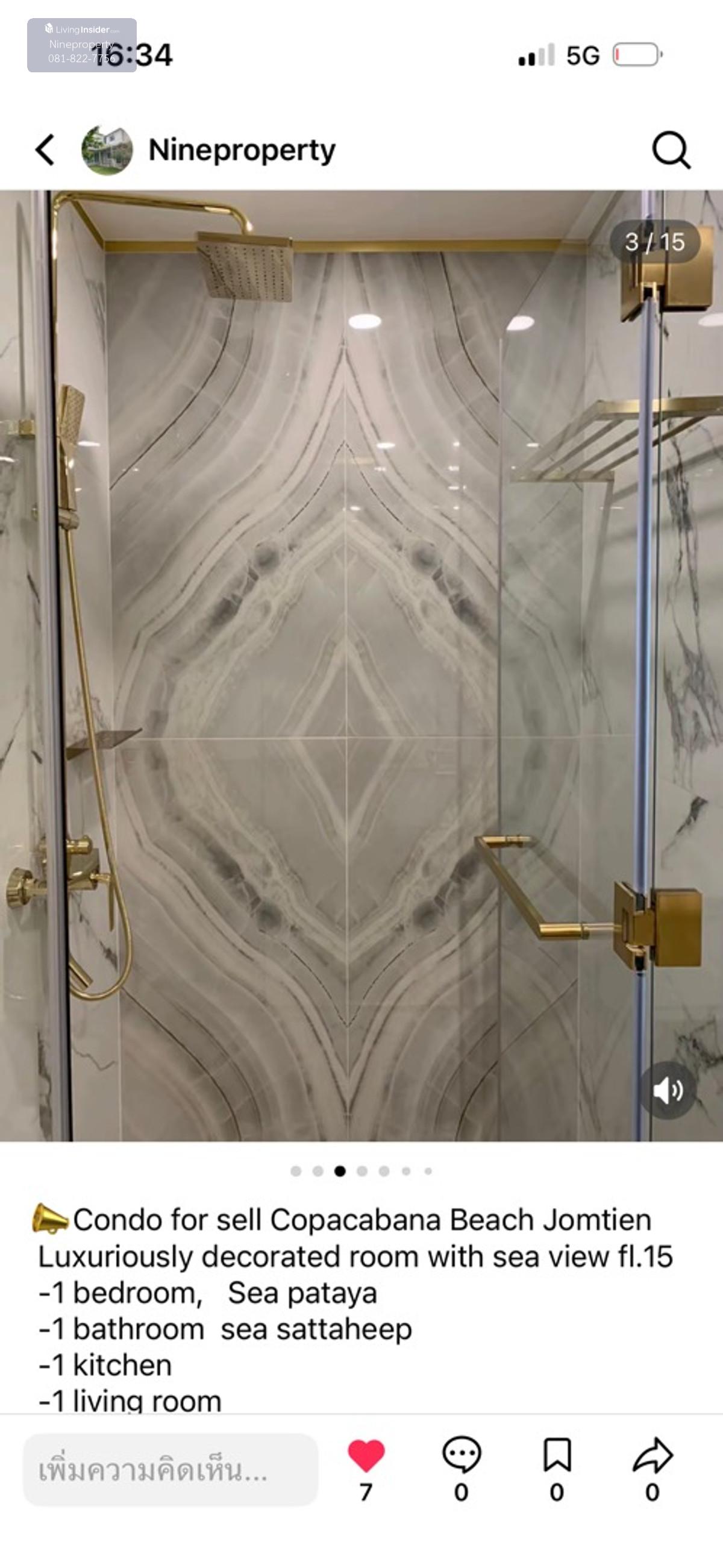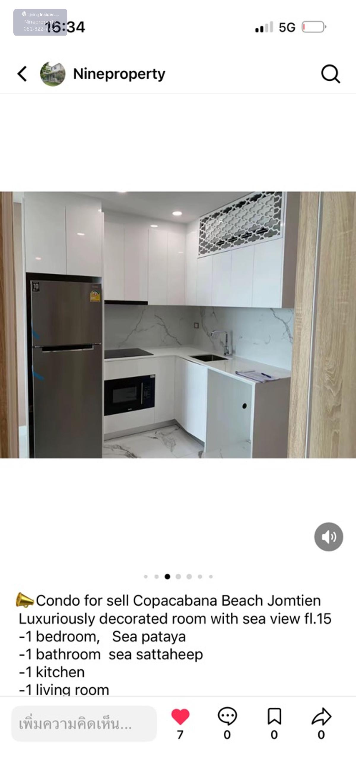 Condo for sell Copacabana Beach Jomtien Luxuriously decorated room with sea view fl.15 • 1 bedroom, Sea pataya • 1 bathroom sea sattaheep • 1 kitchen • 1 living room • Fully furnished Size 65 sqm. 15 Fl. 🔥 13.5 ml. (Special price) 📍 Common area of condo ✅ Rooftop swimming pool, 59th floor ✅ Infinity Pool, 40th floor ✅ Swimming pool, sea view 180 degrees, 30th fl. • Beach Club Beach Club, size 2,000 sqm., in front of the project along the beach. • Sunker Bar, a sunken bar serving drinks in the beach club area. • Fitness Double Volume fitness, sea view, 3rd floor • Sport Court, multi-purpose sports field, 6th floor • 24 hour security system Please contact Tel. Contact number agent