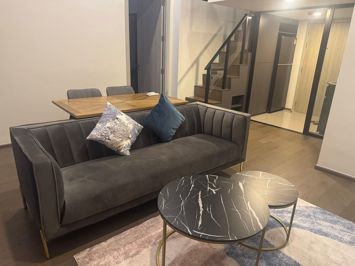 2 bedrooms, 2 bathrooms (Duplex) Usable area 64 square meters Floor 34 Tall building view Southeast Rent 55,000/month (minimum 1 year lease) 2 months deposit, 1 month advance rent Furniture, electrica