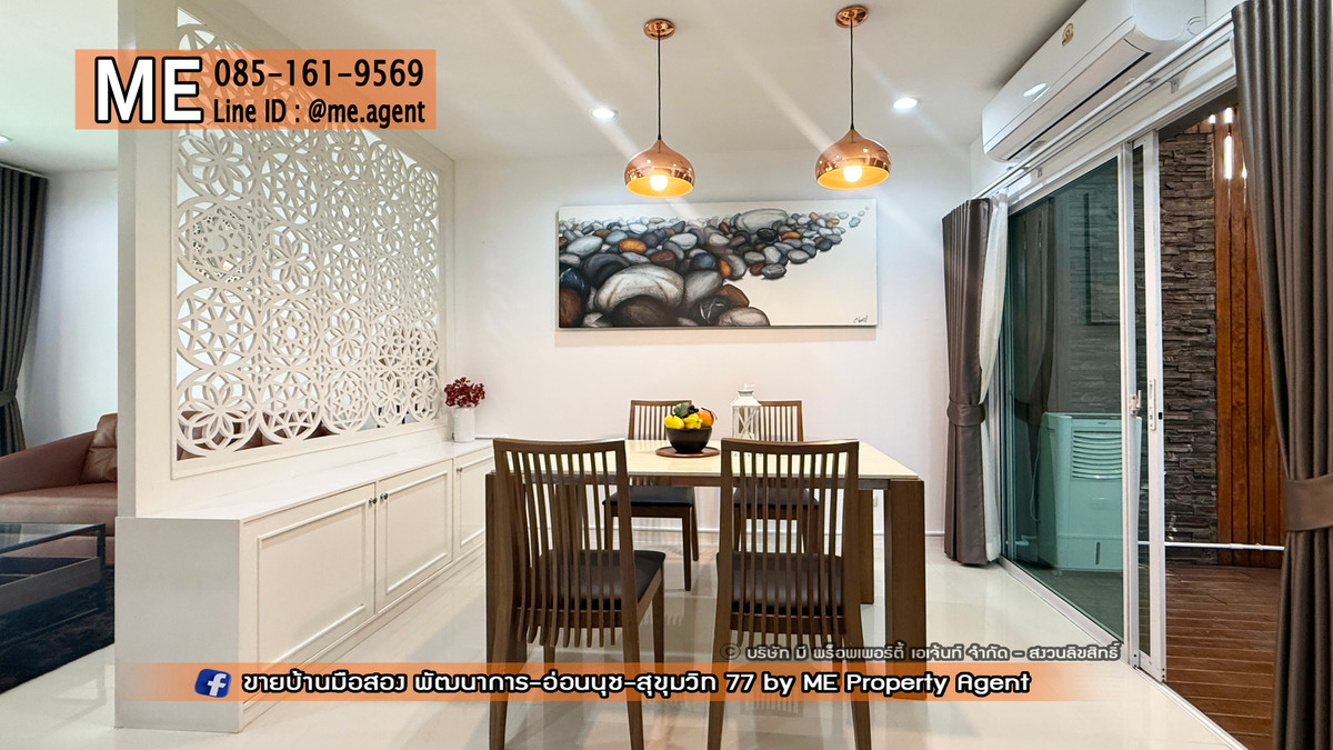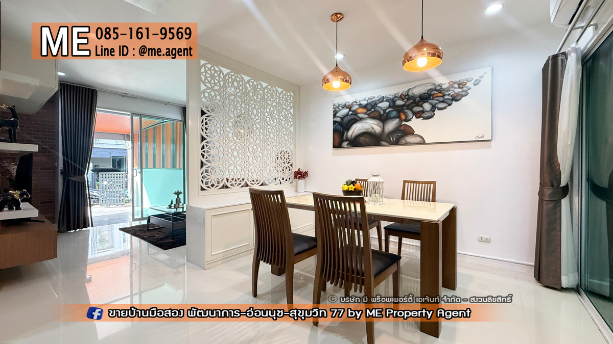 Townhome for sale, Patio Pattanakarn 38, project beginning, near the central area, newly decorated, ready to move in immediately. Near Ekkamai-Thonglor-Sukhumvit, call Contact number (TI24-20) .Can enter and exit in many ways, including Soi On Nut 39, Srinakarin 24, Soi Phatthanakan 30,32,38,44 , near Airport Link-Hua Mak Station and near BTS-On Nut Station .-3-story townhome [located at the beginning of the project] - Area 20 sq m., usable area 155 sq m -2 bedrooms, 3 bathrooms -1 multi-purpose room- has an outside kitchen + inside kitchen -2 parking spaces -with a place to relax behind the house -fully furnished .Price 5.98 million baht [ transfer 50/50 ] . If interested, contact us at ME Property Agent Tel. Contact number K.Mook (TH/ENG/JP) LINE : @me.agentIG : mepropertyagent TIKTOK : meagent YouTube : @meagent5131 Follow and see beautiful houses on the ME page. Message via Inbox FB : Used house for sale Phatthanakan-On Nut-Sukhumvit 77 by ME Property Agent . Central area - CCTV -Security officer (Security)-Swimming pool / fitness room . Various nearby important places -Pharmacy - Pharma Sure ( ≈ 1.3 km.) - Pattanakarn Animal Hospital ( ≈ 1.4 km.) - Bank of Ayudhya Company Limited, Tesco Lotus Pattanakarn Branch ( ≈ 1.6 km.) -Nakarin Animal Hospital ( ≈ 1.6 km.)-Bangkok Bank Pattanakarn Road Branch ( ≈ 1.6 km.) -The Nine Rama 9 -Thanya Shopping Park-Seacon Square -Paradise Park -Tesco Lotus -Fresh Market -Samitivej Srinakarin Hospital -Triam Udom Suksa School, Pattanakarn. Nearby public transportation -MRT Yellow Line - Khlong Kelantan Station ( ≈ 1.3 km.) -MRT Yellow Line - Hua Mak Station ( ≈ 1.7 km.)-Airport Link - Hua Mak ( ≈ 2.2 km.) -MRT Yellow Line - Si Nuch Station ( ≈ 2.2 km.) -MRT Yellow Line - Srikritha Station ( ≈ 3.2 km.) - MRT Yellow Line - Srinakarin 38 Station ( ≈ 3.3 km.) #MEpropertyagent #ONEStopService #secondhand house #townhouse near me #Phatthanakan #cheap rent #Phatthanakan 38 #ForRent #nearBTS #nearAirporting #Patio38 #OldPatio #Avenue #Pruksaville #Patio38 #Pattanakarn38 #3-story townhome #Townhome #House for rent #For rent #Ready to move in #Old Patio #Avenue #Pruksa Ville #Townhouse near me #Phatthanakan #Cheap price #Phatthanakan 38 #Near the BTS #Near BTS #Near Air Conditioning