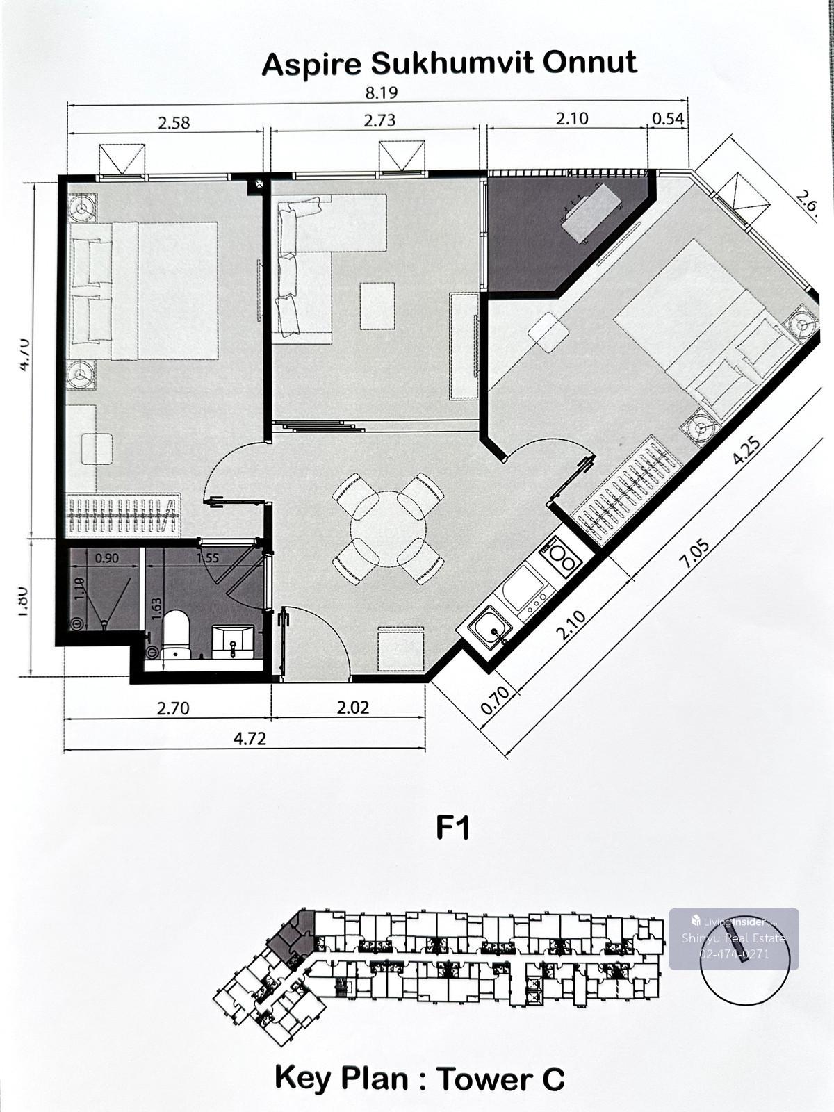 For Rent: Aspire Sukhumvit Onnut, 20,000 THB [MPr260212] Room Type: 2 Bedrooms, 1 Bathroom Size: 52 sq.m. Floor: 6 Rental Price: 20,000 THB Contact for viewing: Tel: Contact number Line: @shinyu Whats
