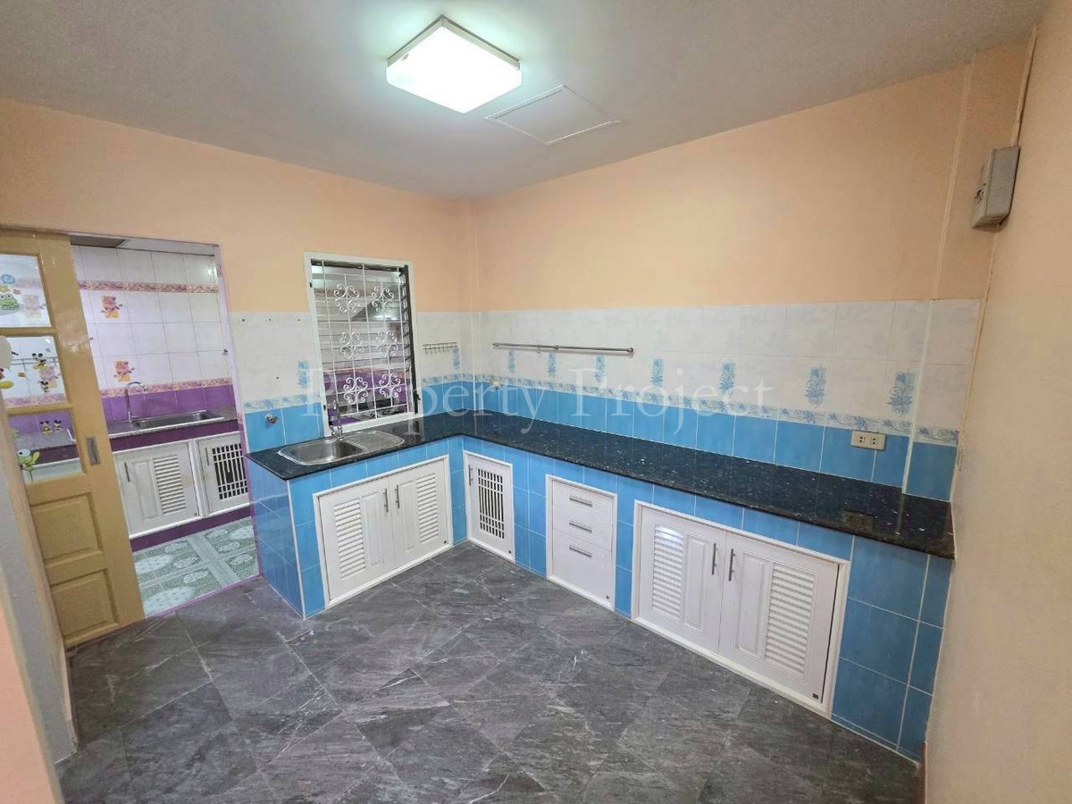 Townhouse for sale, Piamsuk Village, Pak Kret House type : Located in Soi Wat Ku, Soi Sukhaprachasan 2 : 3 bedrooms, 2 bathrooms, 1 parking space : Add a spacious kitchen. Kitchen counter, stove, exha