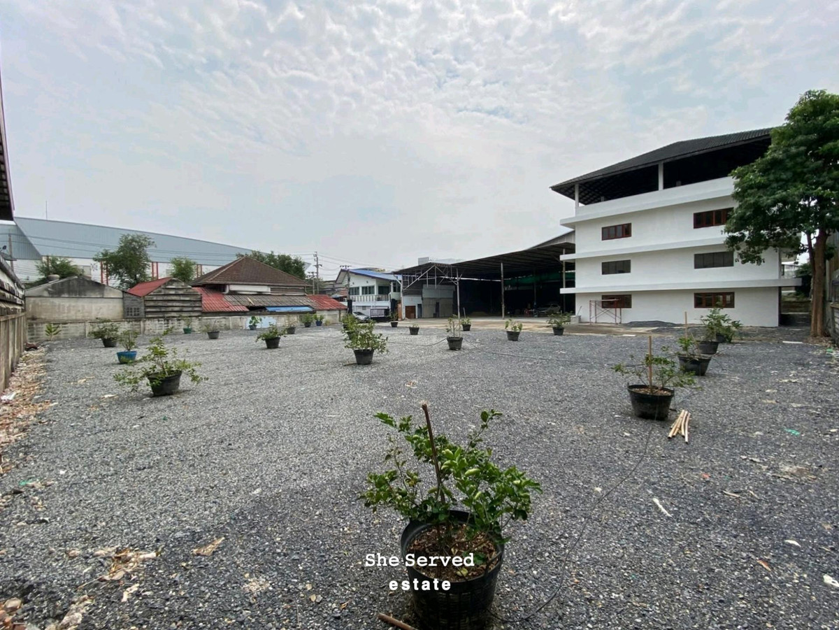 🔹Warehouse + office for rent Near Central Bangna 🔹 Newly renovated building Building area 700 sq m 3-story building 3 bathrooms Total rental area approximately 1 rai Area next to building with roof 10
