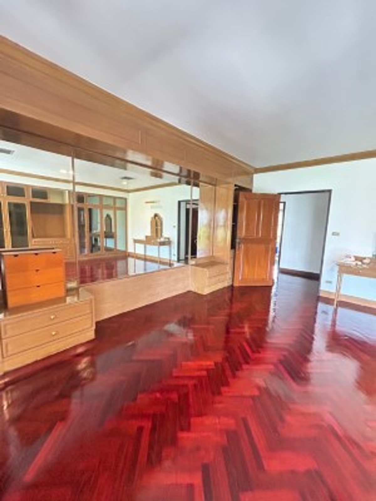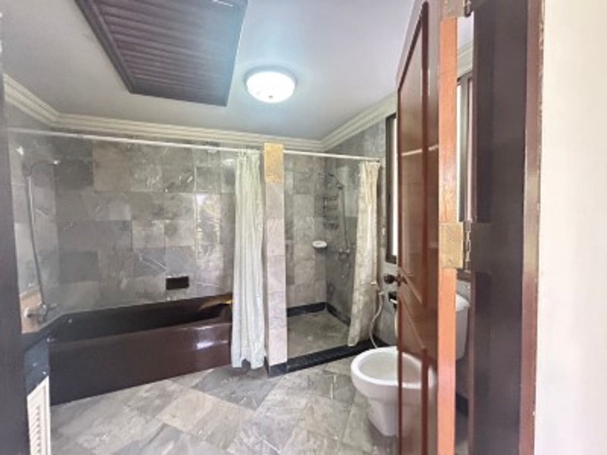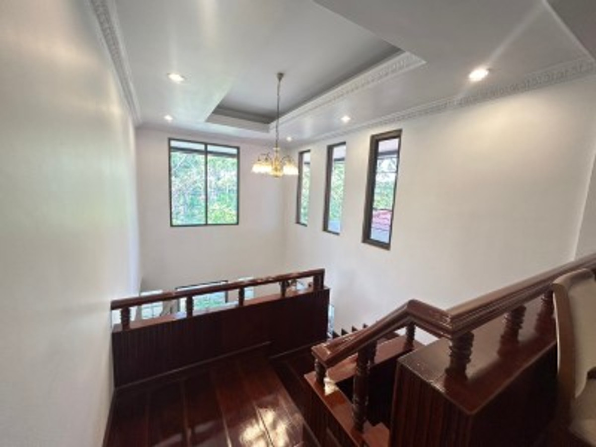 Two large detached houses for rent, connected together, beautifully decorated, lots of usable space, 5 bedrooms, 5 bathrooms, complete with air conditioning in every room. Built-in furniture, rental price 100,000 baht, Srinakarin Road.