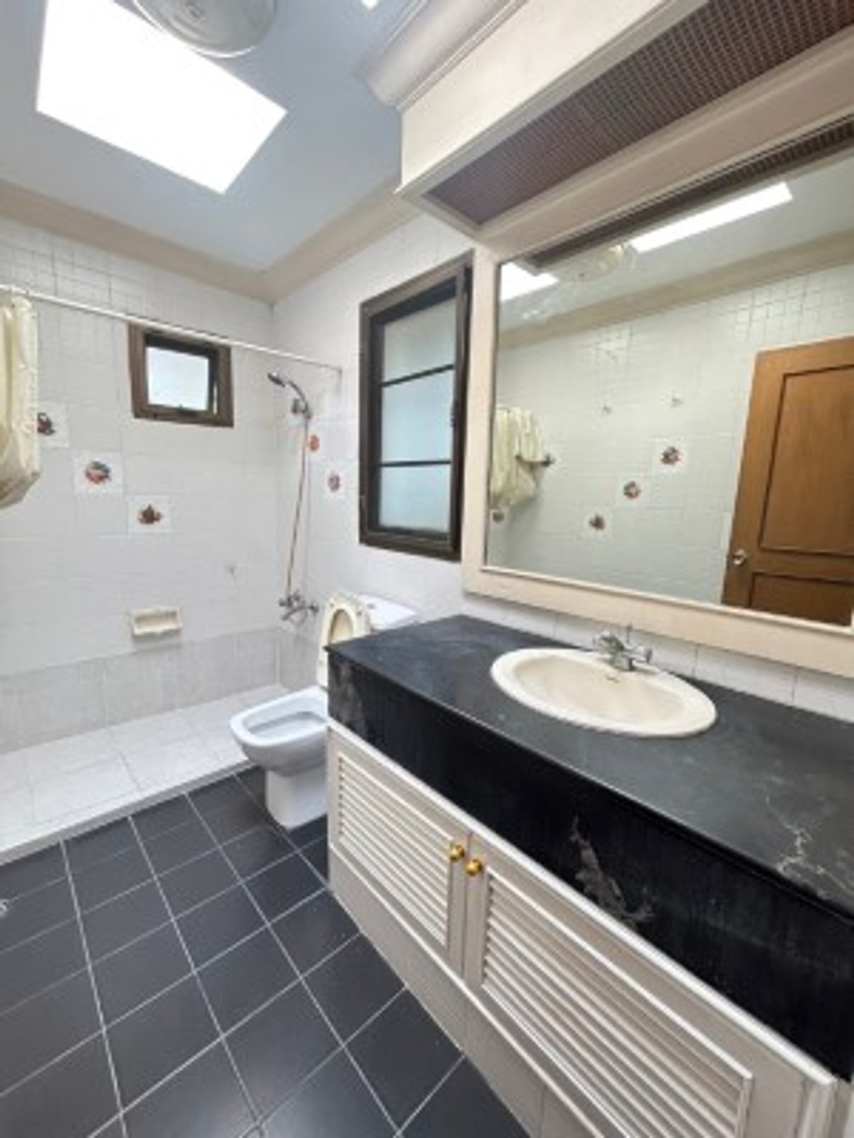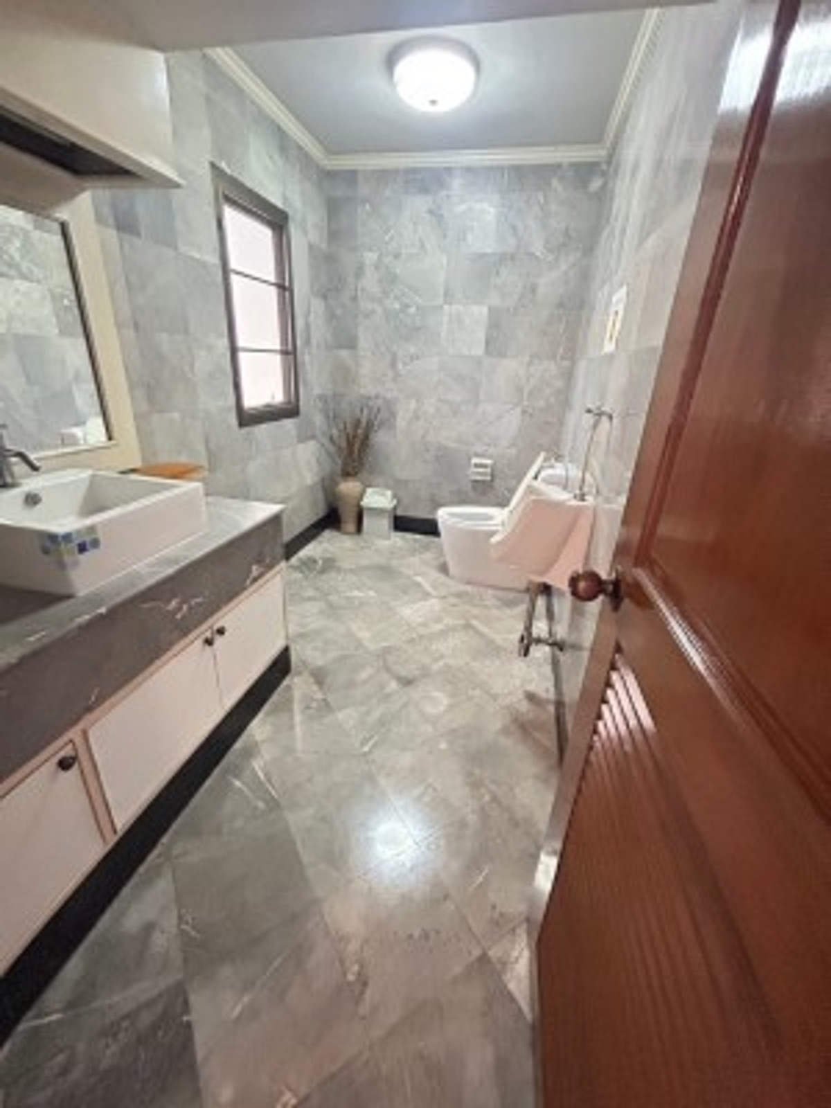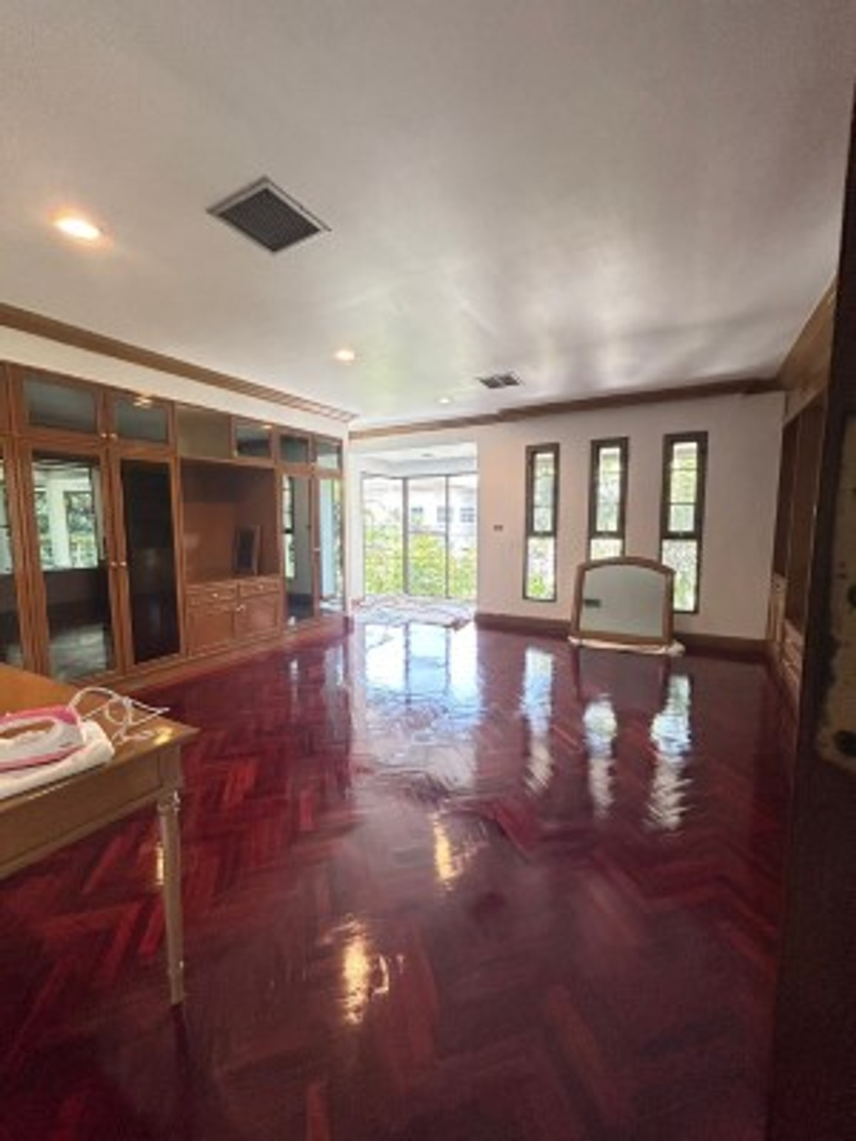 Two large detached houses for rent, connected together, beautifully decorated, lots of usable space, 5 bedrooms, 5 bathrooms, complete with air conditioning in every room. Built-in furniture, rental price 100,000 baht, Srinakarin Road.