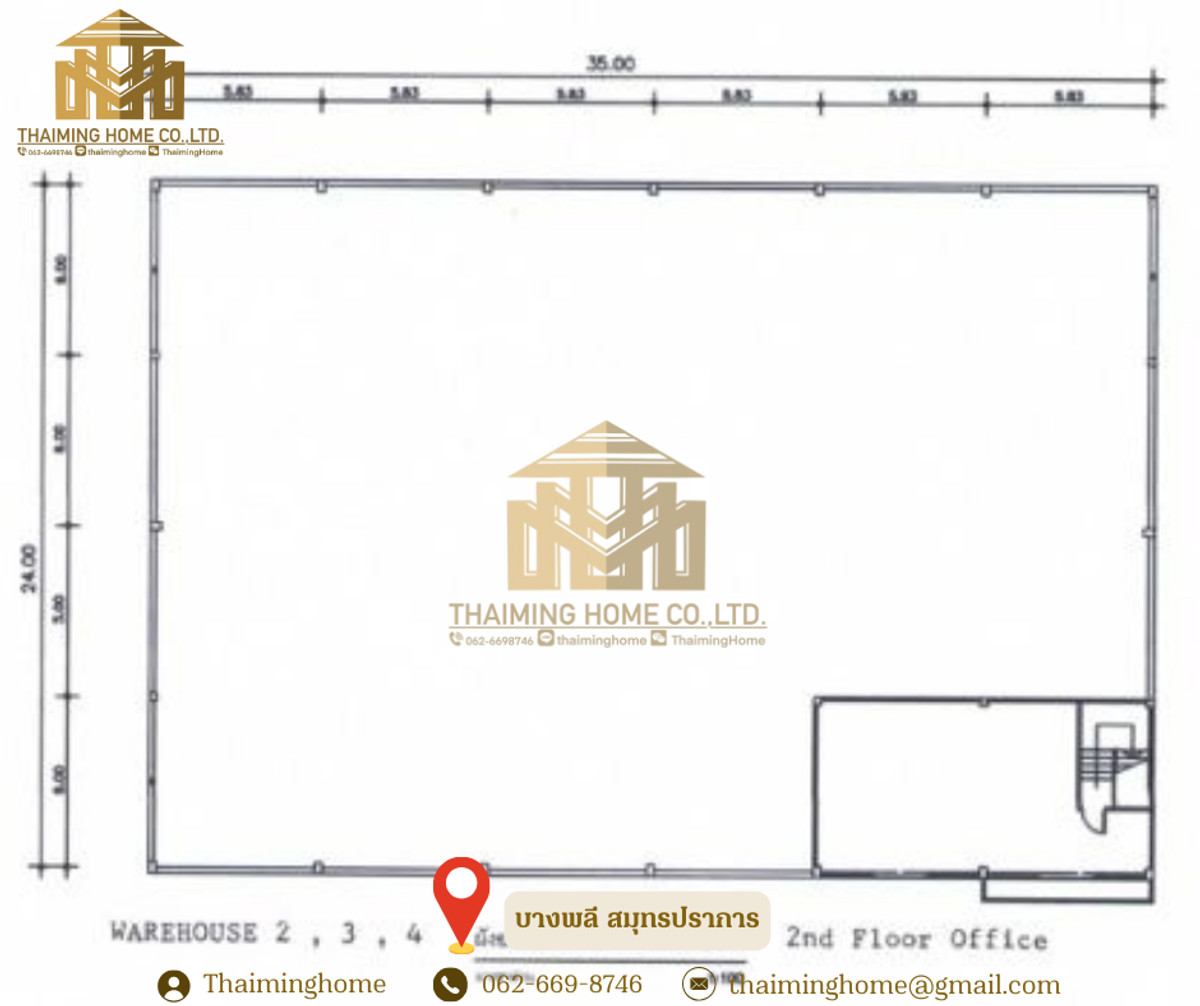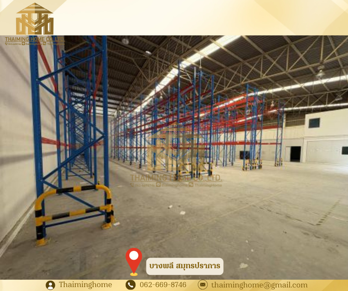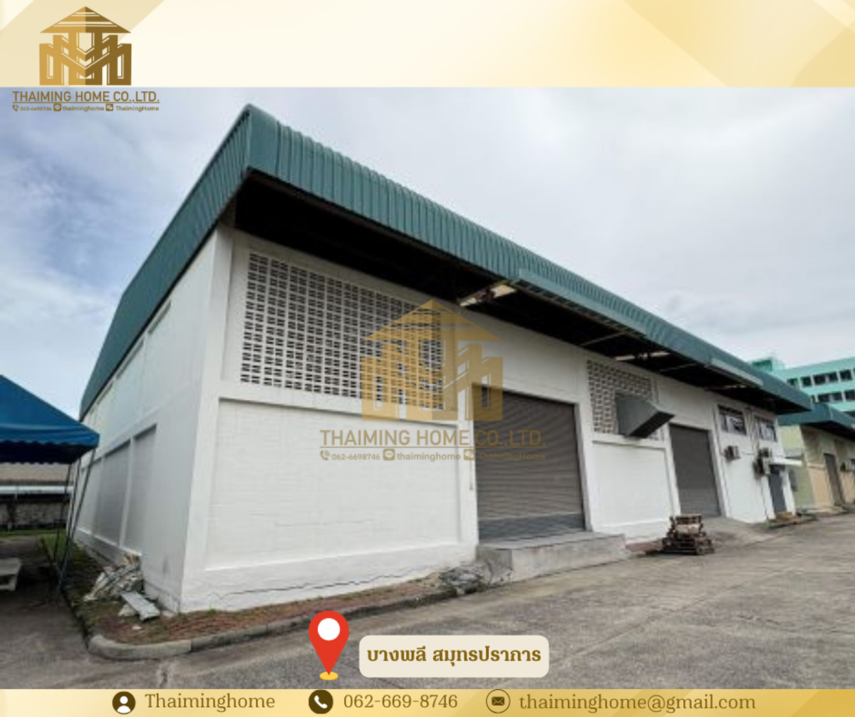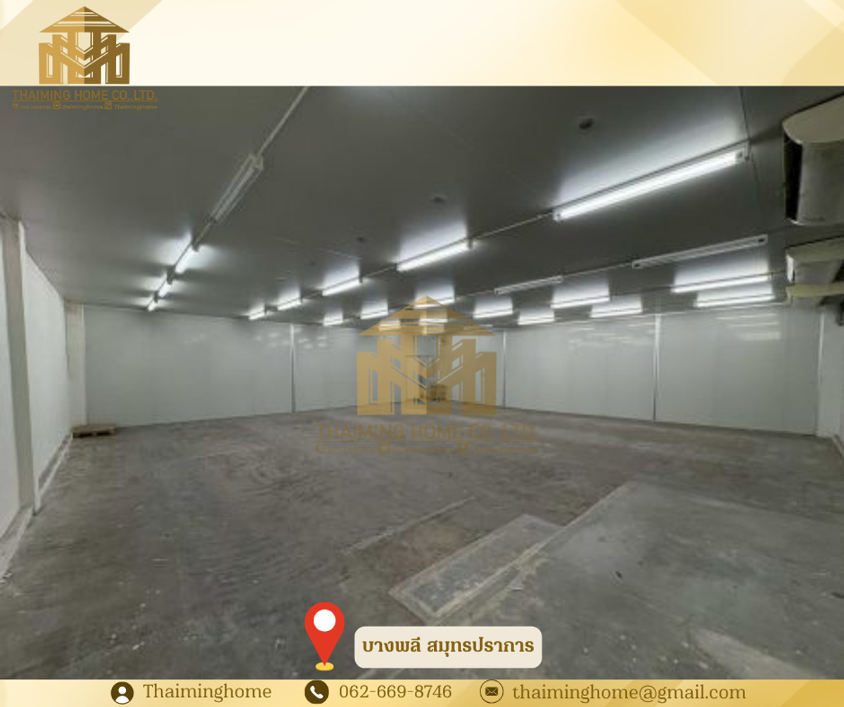 Warehouse with office 936 sq.m. Bang Phli Samut Prakan [TW5-250226] ✅ Details • Total area: 936 square. M. • Floor area 1: 24 x 36 meters (864 square). [ Footnote] • Floor area 2 (Office): 12 x 6 meters (72 square meters). [ Footnote] • Roof height: 8 meters • Lighting: Install Hi-Bay lamps throughout the depot. • Storage: Highly loadable, suitable for a forklift truck. • Warehouse door: Shutter Door with electric motor, easy to turn on and off 🧊 Storage Area • Explicitly split the active area: • Normal temperature area (Ambient): 576 square. M. • Air conditioning room temperature 25°C: 252 square meters. M. • Temperature control air chamber: • Use the Foam Sandwich Panel wall to keep the temperature well. • Install 7 42,000 BTU air conditioners (on/off separately by zone). • Install the 6m high Selective Rack with over 300+ Pallet Location. • Excellent ventilation: Farm Fan helps reduce heat in storage. • install a CCTV box covering the area 🏢 Office area (floor 2) • The total area is 60 square meters. M. • A workroom with a sliding glass door blocking the room can be opened as a large hall. • Air conditioning in all rooms. • The kitchen counter is available. • a built-in bathroom • separate water and electricity meters • install a water pump 🚇 Nearby Locations • Suvarnabhumi Airport - 11 km • Lat Krabang Container Station - 14 km • Khlong Toei Pier – 25 km • Mega Bangna Department Store - 7 km • Bangna-Tram Road - 1 km • Bangna Intersection - 16 km ☑️ Purchase/Rental Conditions • a one-year minimum contract • Two months' deposit, one month's advance. • Rent is 173,160 baht [185 baht/sq.] per month. [ Footnote] —————————————————————— บริษัท ไทยหมิง โฮม จำกัด Thaiming Home Co.,Ltd. 泰明房园 房产公司 ———————— Contact : Contact number คุณหมิง(中文) Line ID: thaiminghome Line ID: @thaiminghome https://lin.ee/PkkHwYv Wechat : ThaimingHome E-mail : Contact email ————————————————