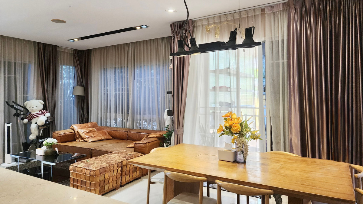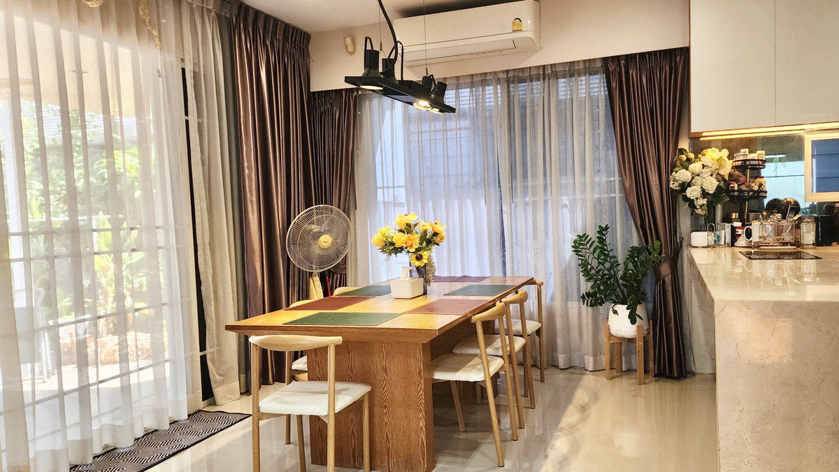 Habitia Vent Panya Indra project of Sansiri 2-storey detached house, decorated with built-in furniture. Perfectly proportioned Land 100 sq m, usable area 200 sq m 5 bedrooms, 4 bathrooms (1 bedroom downstairs with bathroom) Living area / dining area / kitchen Parking for 2 cars Wide garden around the house, peaceful atmosphere, privacy House facing north Convenient transportation. Suitable for living or working from home Location: Panya Inthra Road. Sam Wa Tawan Tok Subdistrict, Khlong Sam Wa District, Bangkok near Chatuchot Expressway Nearby places Fashion Island, The Promenade, Central Ramintra, Big C, Lotus, Chatuchot Market, Synphaet Hospital, Nopparat Hospital, Sathit Pattana School, Lertlah School Facilities Gym , swimming pool, playground, park security guard Security 24 hours ………………………………………… Rent 40,000 baht/month (2 months security deposit, pay 1 month in advance) Note**** House ready for rent, move in 1 April 2026 …………………………………………… If interested, contact Khun Nat. Contact number Line : lucky_nat