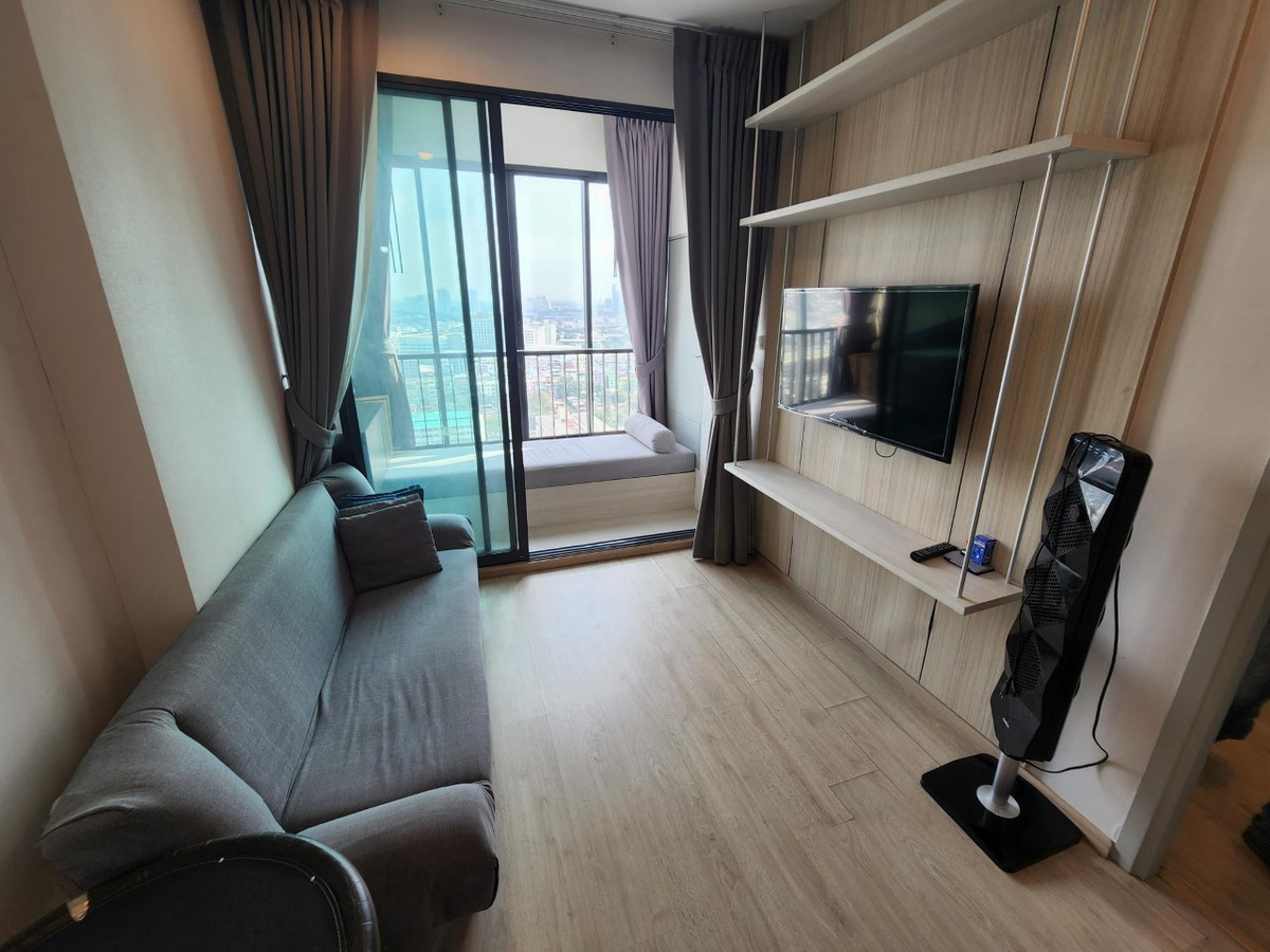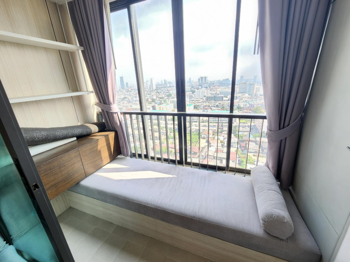For rent, beautiful room, Ideo Sathorn Thapra (Ideo Sathorn Thapra), next to BTS Pho Nimit, 300 meters, with fully furnished + washing machine +31 sq m., only 12,000 baht, 24th floor, size 31 sq m, be