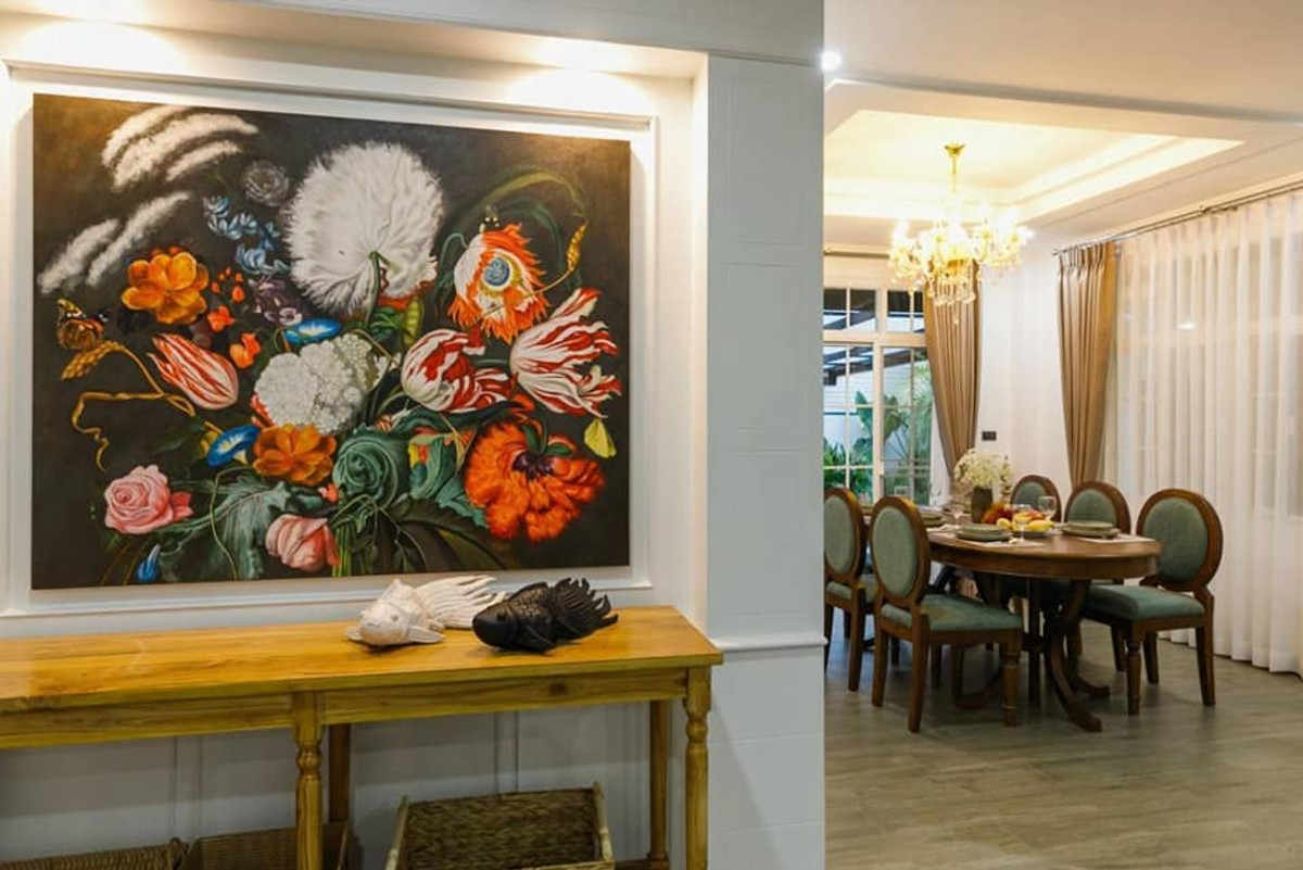 FOR SALE | THB 14.9 Million FOR RENT | THB 99,000 / month* POOL VILLA – Ban Fah Luang Ton Pao, San Kamphaeng, Chiang Mai Only 13 minutes to Central Festival Chiang Mai Ban Fah Luang Pool Villa (Main House + Guest House within the same compound) . Land size: 156 sq.wah Usable area: 450+ sq.m. Total: 6 Bedrooms | 7 Bathrooms Private saltwater swimming pool (4 x 10 meters) . Latest Updates Pool roof removed — open-air design with natural sunlight Added bathtubs + relaxation corners in 2 bedrooms Added dishwasher Fully refreshed & upgraded — move-in ready (Expected completion by the end of this month) . Main House • 5 Bedrooms | 5 Bathrooms • Dining area + bar counter • Built-in Western kitchen (stove, hood, oven, microwave) • Separate Thai kitchen • Living room • Storage room • All bathrooms with separate wet/dry zones + water heaters • Laundry area • 6 Daikin air conditioners • 55" TV • 3-phase electrical system • Parking for up to 6 cars + EV charger • Automatic remote gate . Guest House (Rental Unit / Private Studio) • Studio layout | 1 Bedroom | 2 Bathrooms • Over 70 sq.m. • Small kitchen with electric stove + hood • 55" TV • 2 Daikin air conditioners . Pricing Sale: THB 14.9 Million (Reduced from 15.9 Million) / Rent: THB 99,000 / month Gardening service included Pool maintenance included Termite control included Common area fees included . Prime Outer Ring Road 3 Location (4-lane road access) • 13 mins — Central Festival • 12 mins — Bangkok Hospital Chiang Mai • 11 mins — Payap University • 21 mins — Chiang Mai International Airport . Two houses on one plot — ideal for: Large or multi-generational families Home office + residence setup Long-term luxury rental Investors seeking strong rental yield . Contact Contact number Line ID: positive.ag Add Line friends automatically, click https://line.me/ti/p/gwGaSLICAC . NOX7790091