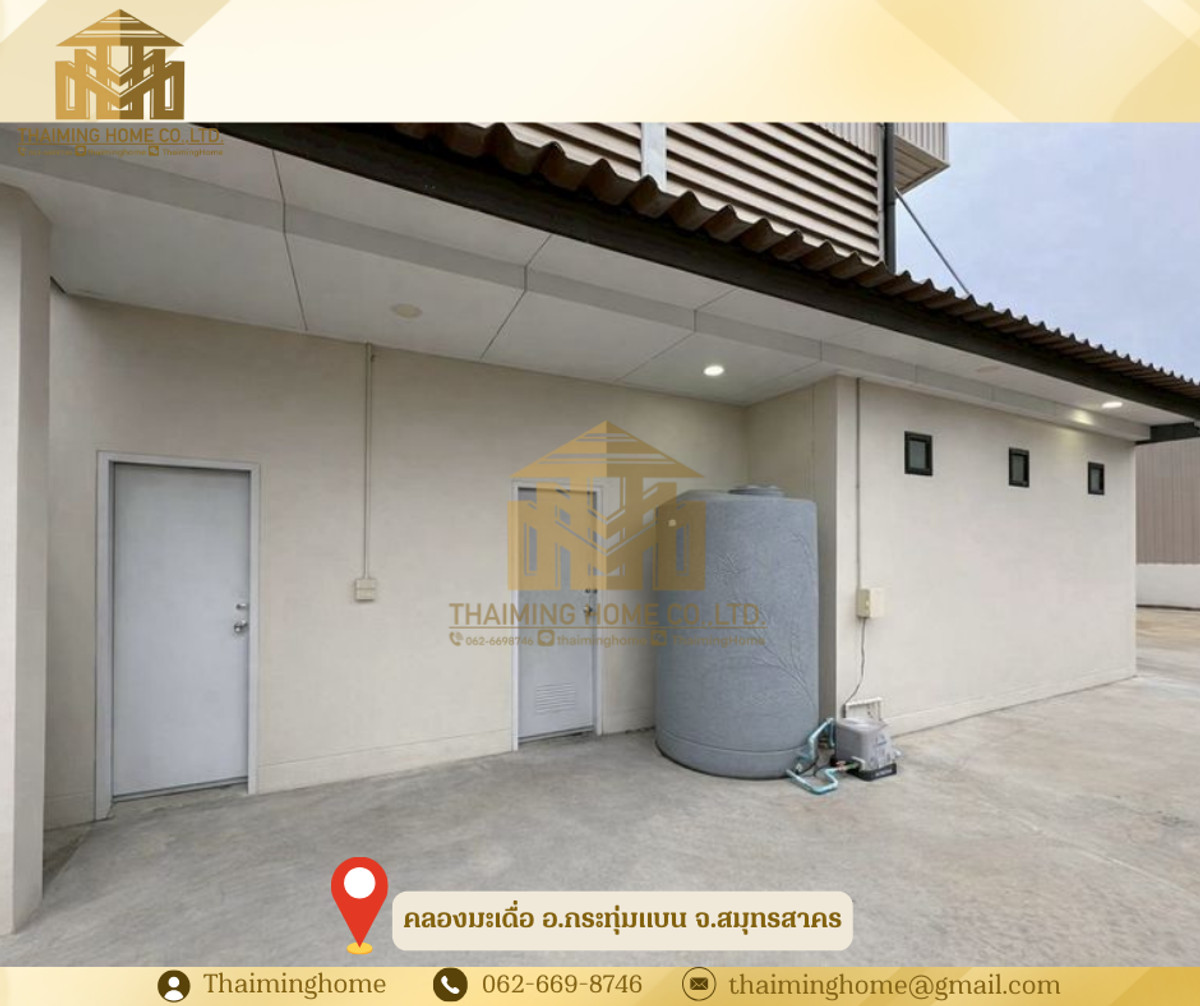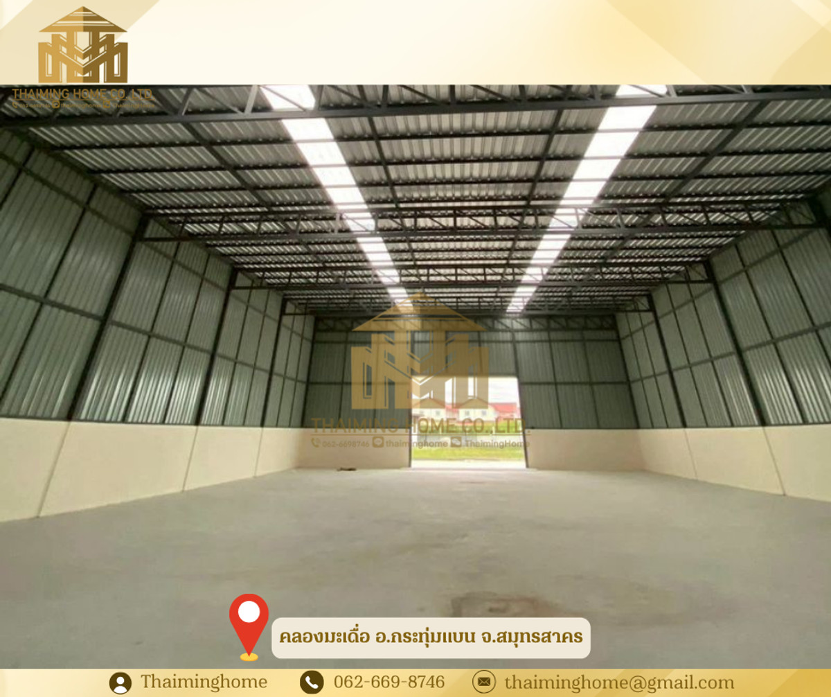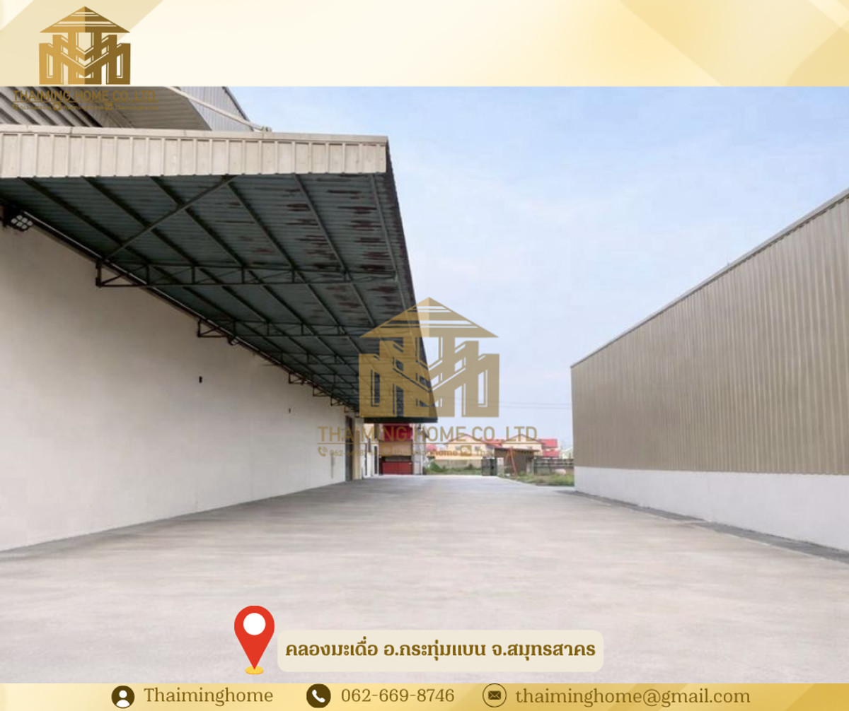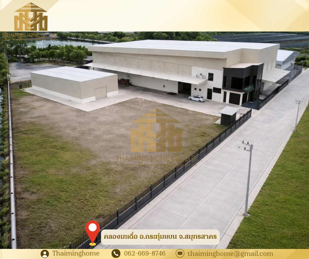 Factory/office warehouse for rent, total area 3,000 sq m, Khlong Maduea Subdistrict, Krathum Baen District, Samut Sakhon Province (Property Code TW4-1570226) Details - Total area for rent: 3,000 sq m. (in an area of 3 rai) - Total divided into 2 warehouses - Warehouse 1, large - Warehouse area 1,500 sq m. - Mezzanine area 550 sq m. - 2-story office space, total 300 sq m. - Warehouse 2, small - Warehouse area 400 sq m. - There is a standalone fence around the warehouse. - Usable area 4,000 square meters - There is a 2-story office, 300 sq m. - There is 1 VIP bathroom / 2 male/female bathrooms. - Office zone, 3 meters high - In the warehouse there are 3 bathrooms/showers. - Outside the warehouse there are 2 staff rooms (2 bathrooms). - Guardhouse (with 1 bathroom) - There is a 3-phase 50 kva electrical transformer. - 5 large air conditioners - 1 set of kitchen counter - 16 CCTV cameras - Project road width 8 meters - Electric gate (width 12 meters) - Warehouse doors (electric) on 2 sides (6 meters high, 5 meters wide) - Trailer is easy to access. - Suitable for a warehouse / factory / warehouse. - No common fees (private project road) Nearby places - Near Ekachai Road/Bang Bon - Near the main economic road Rental conditions - Minimum contract 3 years - 2 months deposit, 1 month advance - Rent 250,000 baht /month --------------------------------- บริษัท ไทยหมิง โฮม จำกัด Thaiming Home Co.,Ltd. 泰明房园 房产公司 ----------------------- Contact ติดต่อ : Contact number Contact : Contact number คุณหมิง(中文) Line ID: thaiminghome Line ID: @thaiminghome https://lin.ee/PkkHwYv Wechat : ThaimingHome E-mail : Contact email -----------------------