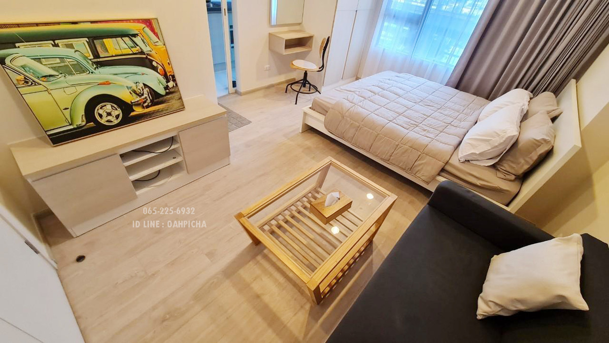 ***I have not yet accepted the AGENT***** -Studio room size 23.00 sq m, 1 bathroom (9th floor, Building A) - 1411/233 - Complete with furniture and electrical appliances -1st floor common garden and 27th floor sky garden -Swimming pool 5th floor -North facing balcony (VIEW swimming pool) -Exercise room 5th floor - Sold with tenant, contract ends October 2026 ** Selling cheap, only 1.57 million baht, price negotiable ** Transfer fee is half Electrical appliances - Panasonic refrigerator 10.7 cu. - Electrolux microwave - Samsung air conditioner - Water heater - Television Other items - King size bed + Bedside table - Two-seat sofa + coffee table - Built-in wardrobe and dressing table + 1 chair - UV blocking curtains (2-layer curtains, opaque-transparent, filtering light but providing privacy) - Good grade wallpaper - Shower room molded using technology from Japan. The shower zone divider is laminated glass