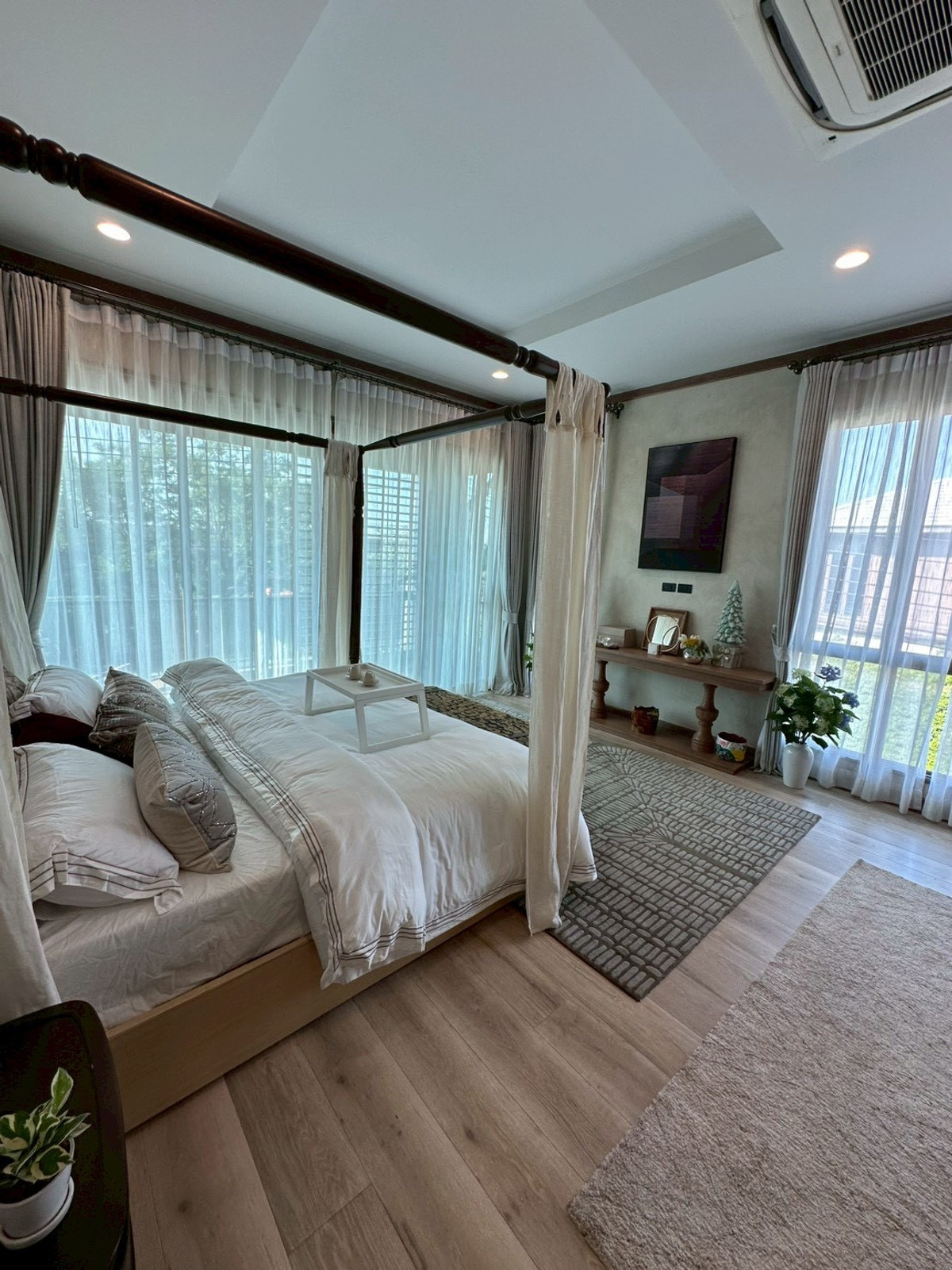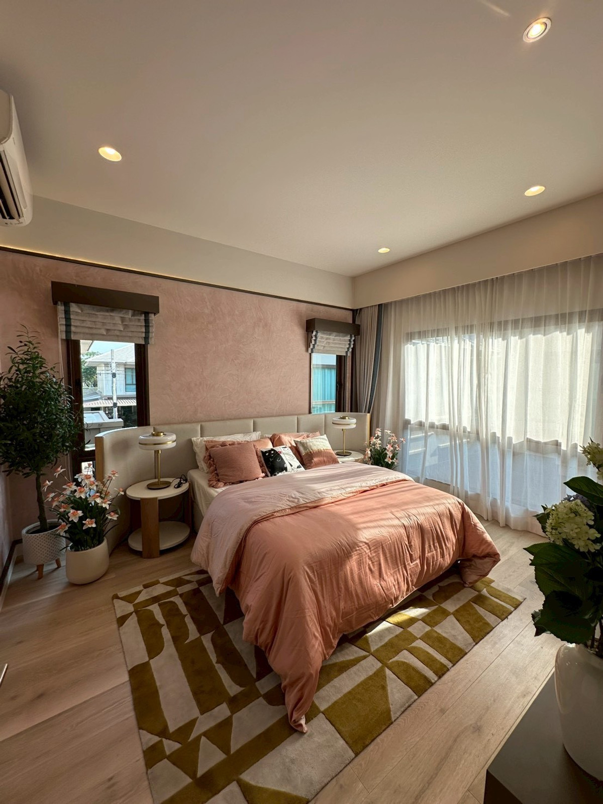 House for rent, detached house Burasiri Project Krungthep Kreetha 5 bedrooms, 6 bathrooms + maids room opposite the club house fully decorated, beautiful. Fully furnished with furniture and electrical appliances. Ready to move in immediately close Leading international schools such as Brighton College and Wellington College Conveniently located just a few minutes to the expressway and Suvarnabhumi Airport , close to Market Place shopping, Krungthep Kreetha and Samitivej Hospital Srinakarin rental price 285,000 baht/month If interested, contact Contact number sugarbrown_tarn
