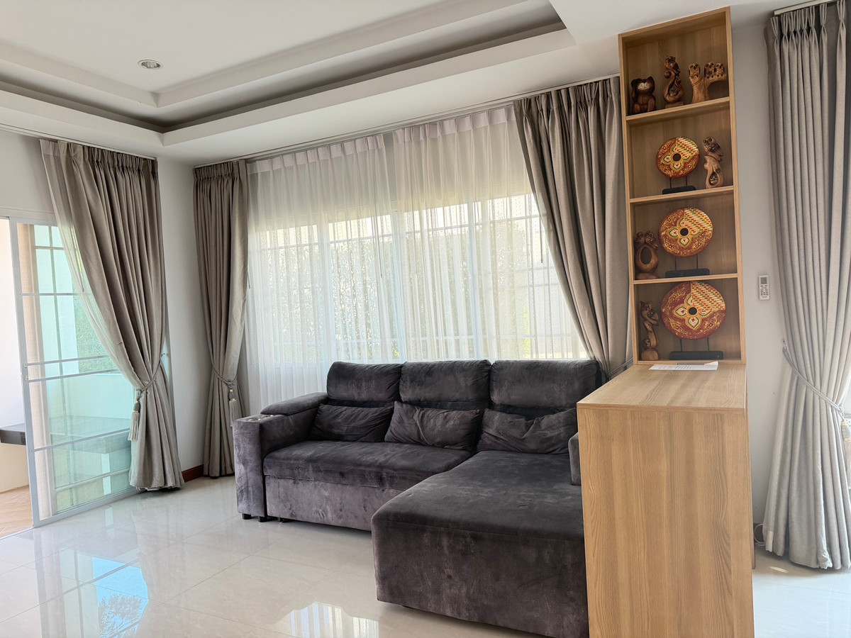 🏡 Prime Location: Beautiful 2-Story House for Sale/Rent at The Prominence (Near Promenada) Located on the 2nd Outer Ring Road, this property offers the perfect balance of convenience and serenity. With direct access from the main road (no deep alleys), it’s ideally situated near shopping malls, international schools, universities, and hospitals. ✨ Property Highlights: Land Size: 79.8 Sq.wah with a spacious private lawn and garden. Pet-Friendly: Plenty of outdoor space for your furry friends. Space: 2-Story House | 3 Bedrooms | 4 Bathrooms. Extra Room: External small room (perfect for a maid’s room or storage). Parking: 2 covered parking spaces. Convenience: Just steps away from 7-Eleven, local shops, and restaurants. 🛋 Fully Furnished & Equipped (Ready to move in!): Climate Control: AC in all 3 bedrooms + In-ceiling cassette AC in the living hall. Kitchen: Fully equipped with gas stove, hood, refrigerator, rice cooker, and complete kitchenware (pots, pans, dishes). Dining: Two dining sets (Kitchen area & Main hall). Comfort: Water heaters in all 4 bathrooms, mosquito nets, and premium curtains. Living: Comfortable sofa, TV, beds with mattresses, and high-quality built-in furniture. Utility: Back-of-house laundry area (gets great afternoon sun for drying), water tank, and pump. 🏆 Facilities & Security: Full access to Clubhouse: Swimming pool, Fitness center, and Playground. 24/7 Security with regular patrols throughout the village. 📍 Location & Nearby: Promenada Chiang Mai. Map: https://maps.app.goo.gl/jm7bcL2neAmpCPNB7 💰 Pricing & Terms: Monthly Rent: 35,000 THB/month (1-year contract) Daily Rent: 3,500 THB/day Sale Price: 7.9 Million THB 📞 Contact for Viewing: Phone: Contact number, Contact number Messenger: Inbox us directly for more information or to schedule a visit!