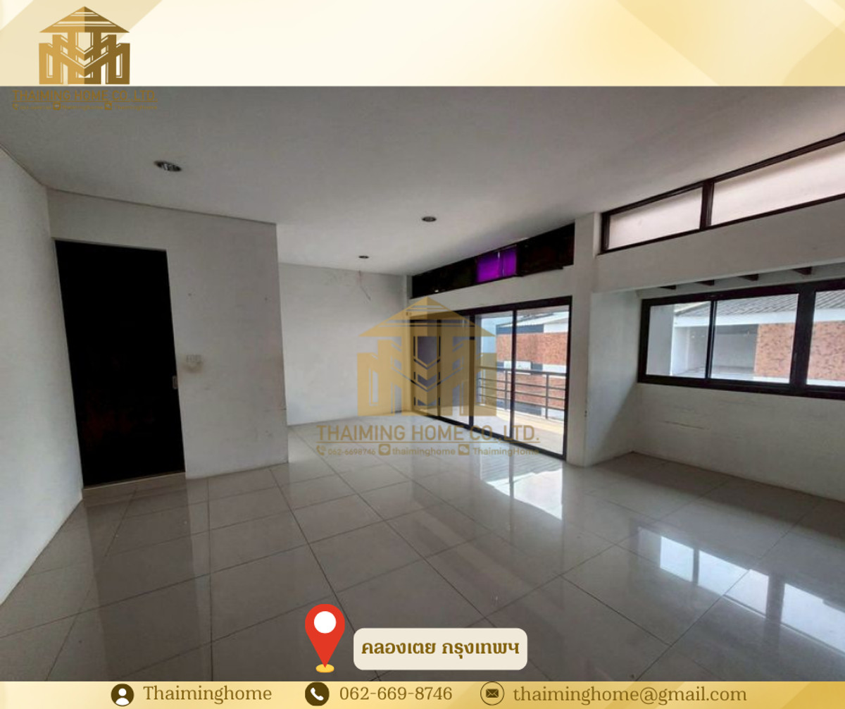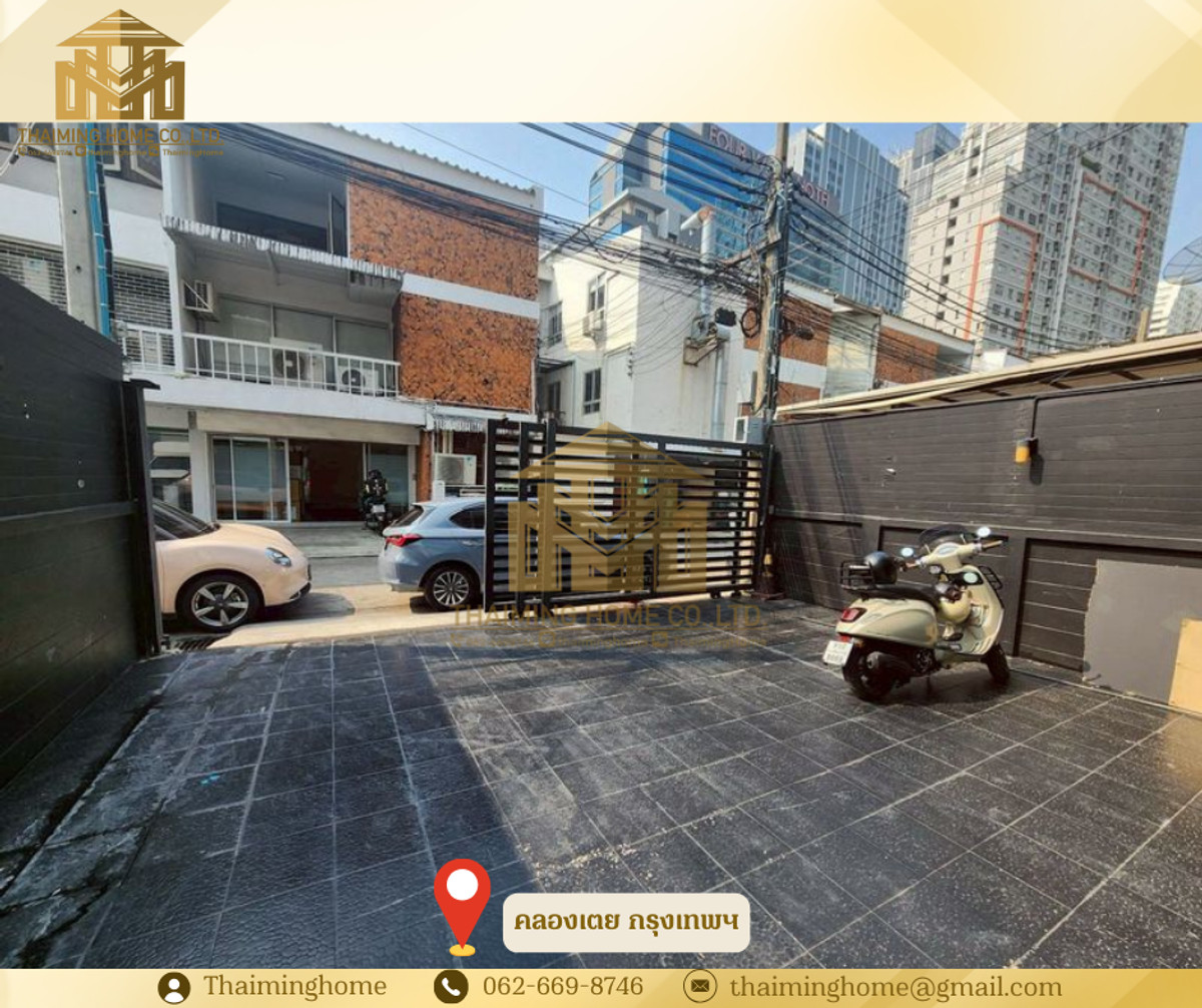 Home office for rent, 250 sq m, Khlong Tan Subdistrict, Bangkok (Property Code TT4-100226) Details - Land area 31 sq.wa. - Usable area approximately 250 sq m. - 4 bedrooms, 1 large living room, 3 bathrooms, 2 parking spaces - Suitable for residential use or office - 24/7 security within the project - Convenient access via Sukhumvit Road and Rama IV Road Nearby Places - Near BTS Phrom Phong - Near Villa Market - ​​Emporium - EmQuartier Rental Conditions - Minimum 1-year contract - 3 months security deposit - 1 month advance payment - Rental price 90,000 THB per month --------------------------------- บริษัท ไทยหมิง โฮม จำกัด Thaiming Home Co.,Ltd. 泰明房园 房产公司 ----------------------- Contact ติดต่อ : Contact number Contact : Contact number คุณหมิง(中文) Line ID: thaiminghome Line ID: @thaiminghome https://lin.ee/PkkHwYv Wechat : ThaimingHome E-mail : Contact email -----------------------