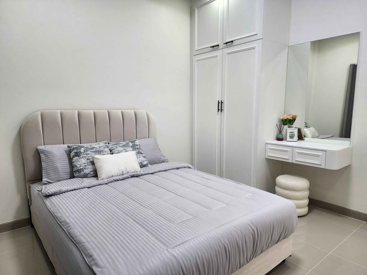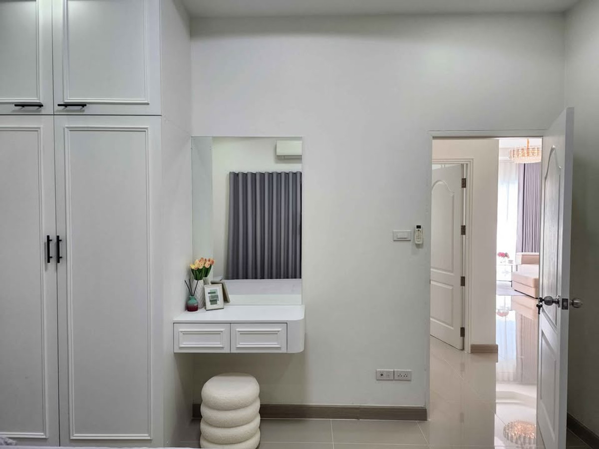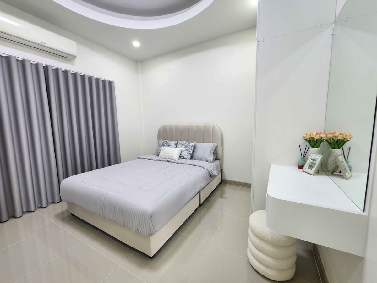 Modern style semi-detached house Ready to move in Nong Mai Kaen zone, Pattaya Price 3.59 million baht 📍 Rawiporn City Home project Nong Mai Kaen Details: • 3 bedrooms, 2 bathrooms • Wide, airy living room • Separate kitchen with stove + hood • Washing area • 1 parking space • Furniture + complete built-ins • 3 air conditioners The project has 24-hour security guard Wide road. Calm atmosphere reduced from 3.79 million to 3.59 million House ready for transfer. Ready to move in If interested, chat / make an appointment to see the house Tel/Line: Contact number